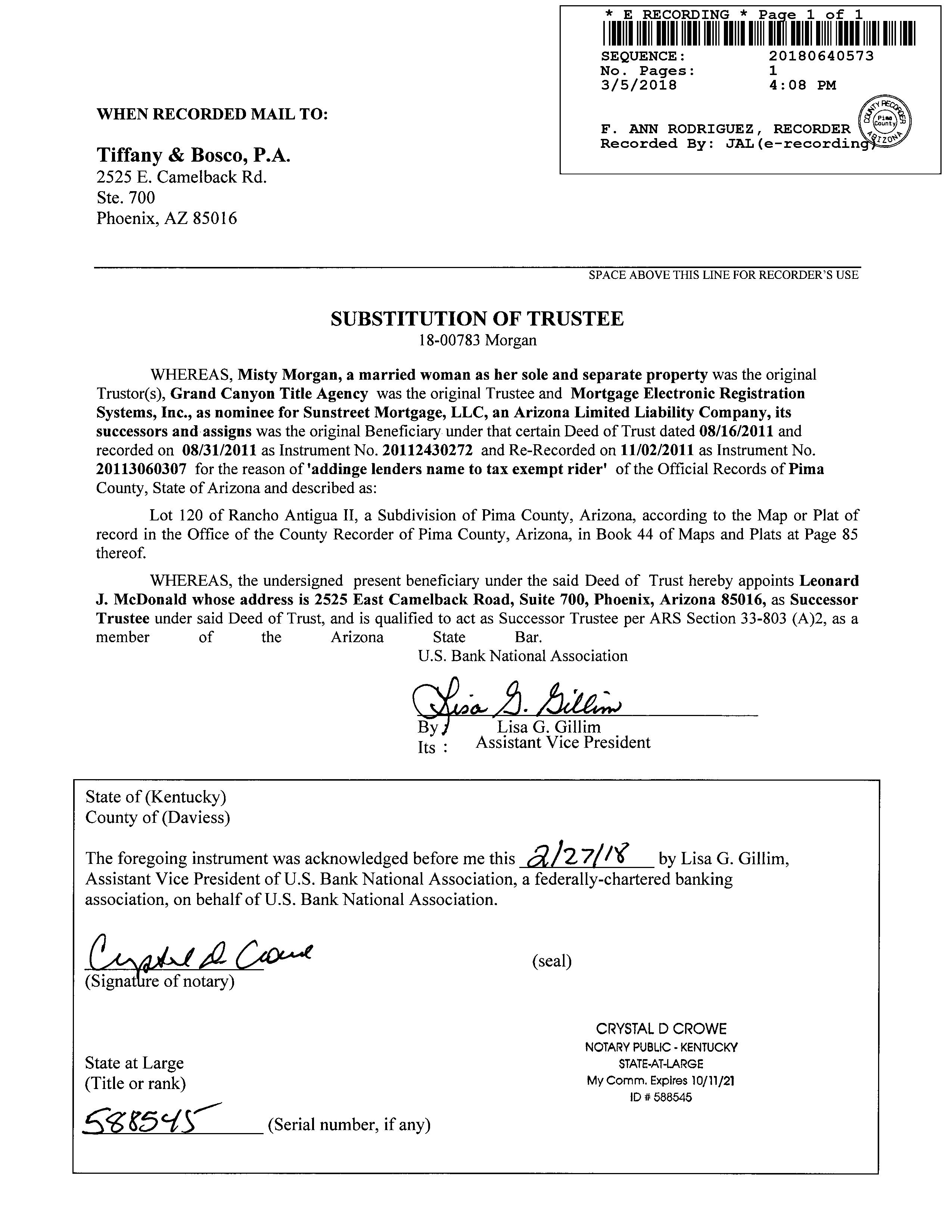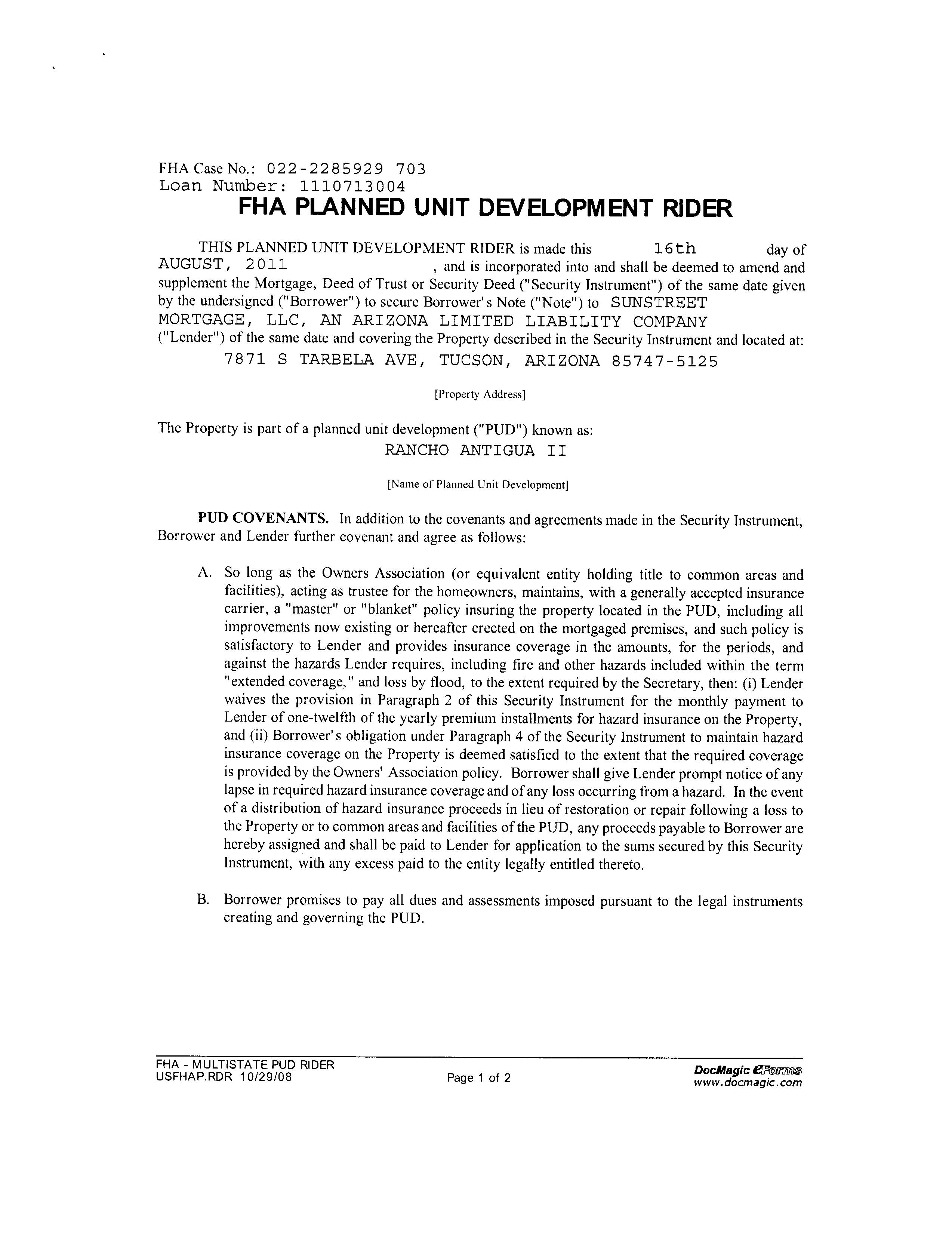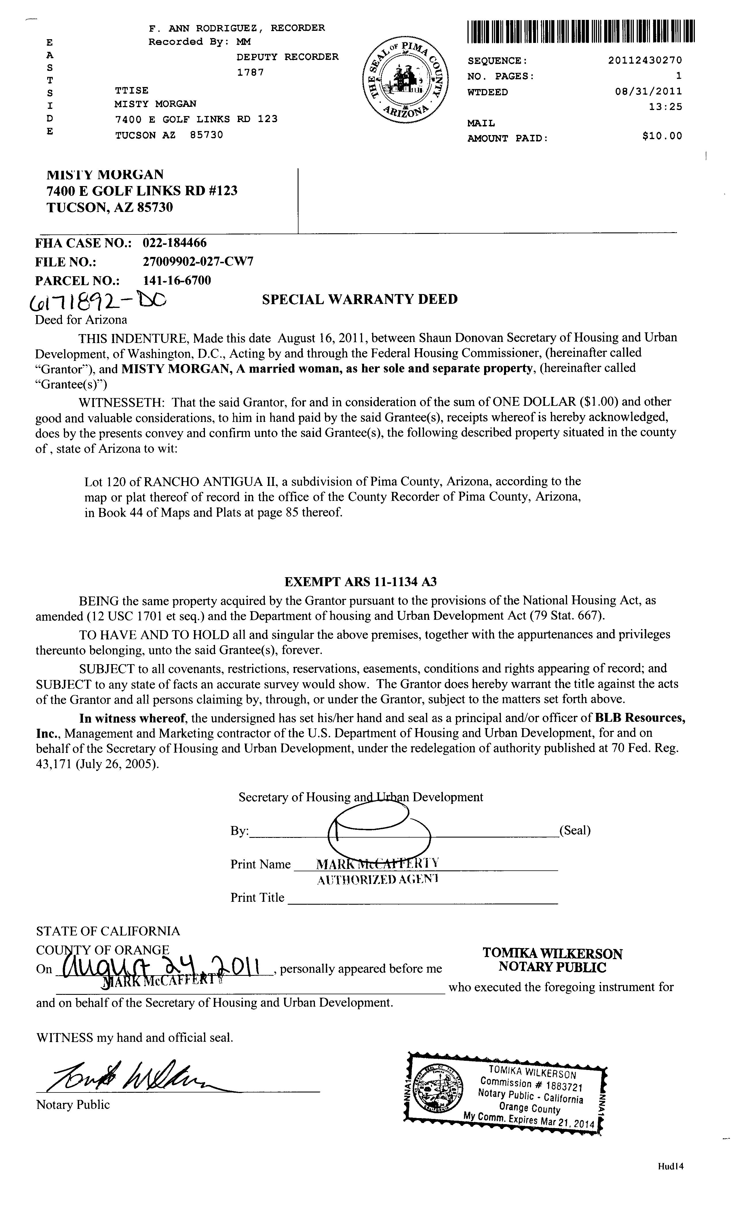 Mailing Address : 7400 E Golf Links Rd Apt 123, Tucson AZ 85730-1149 C053