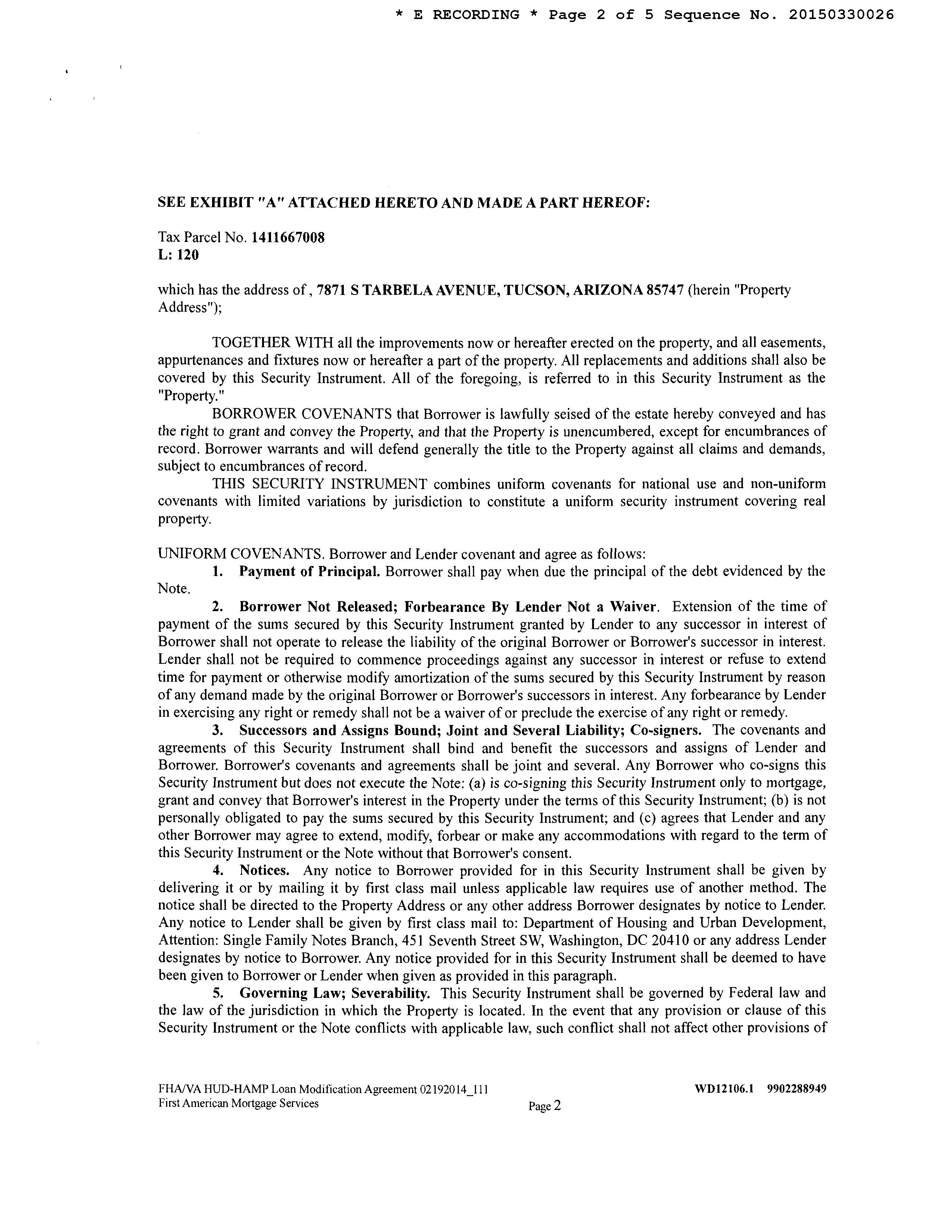 This information is furnished without fee and without benefit of a complete title search. No liability is assumed by First American Title. If it is desired that liability be assumed, you may apply for a policy of title insurance with First American Title Insurance Company.