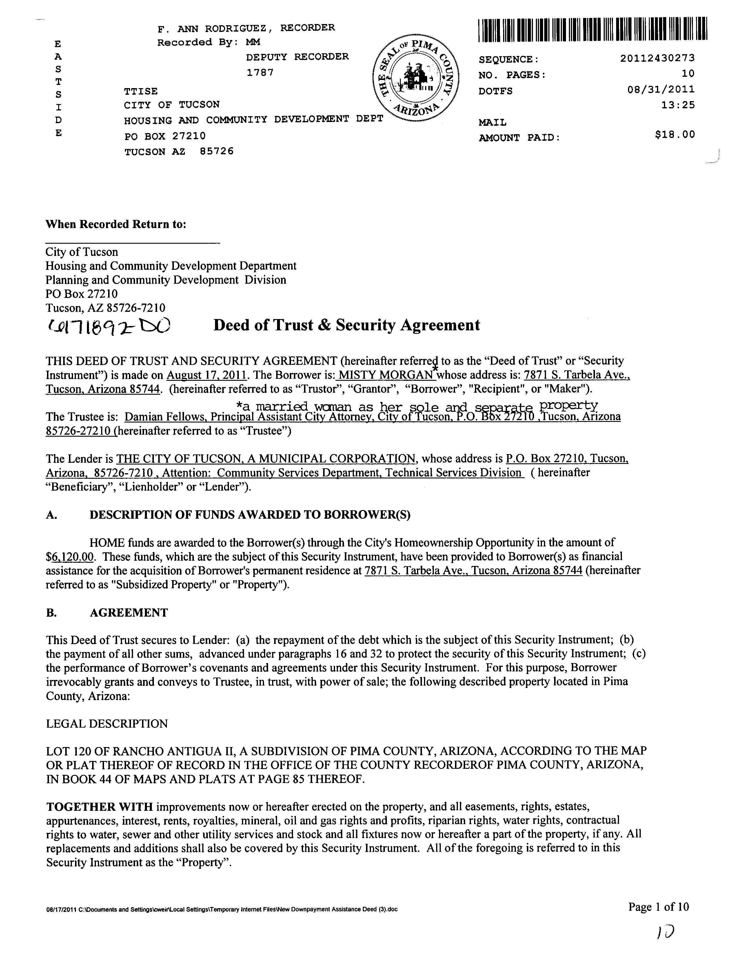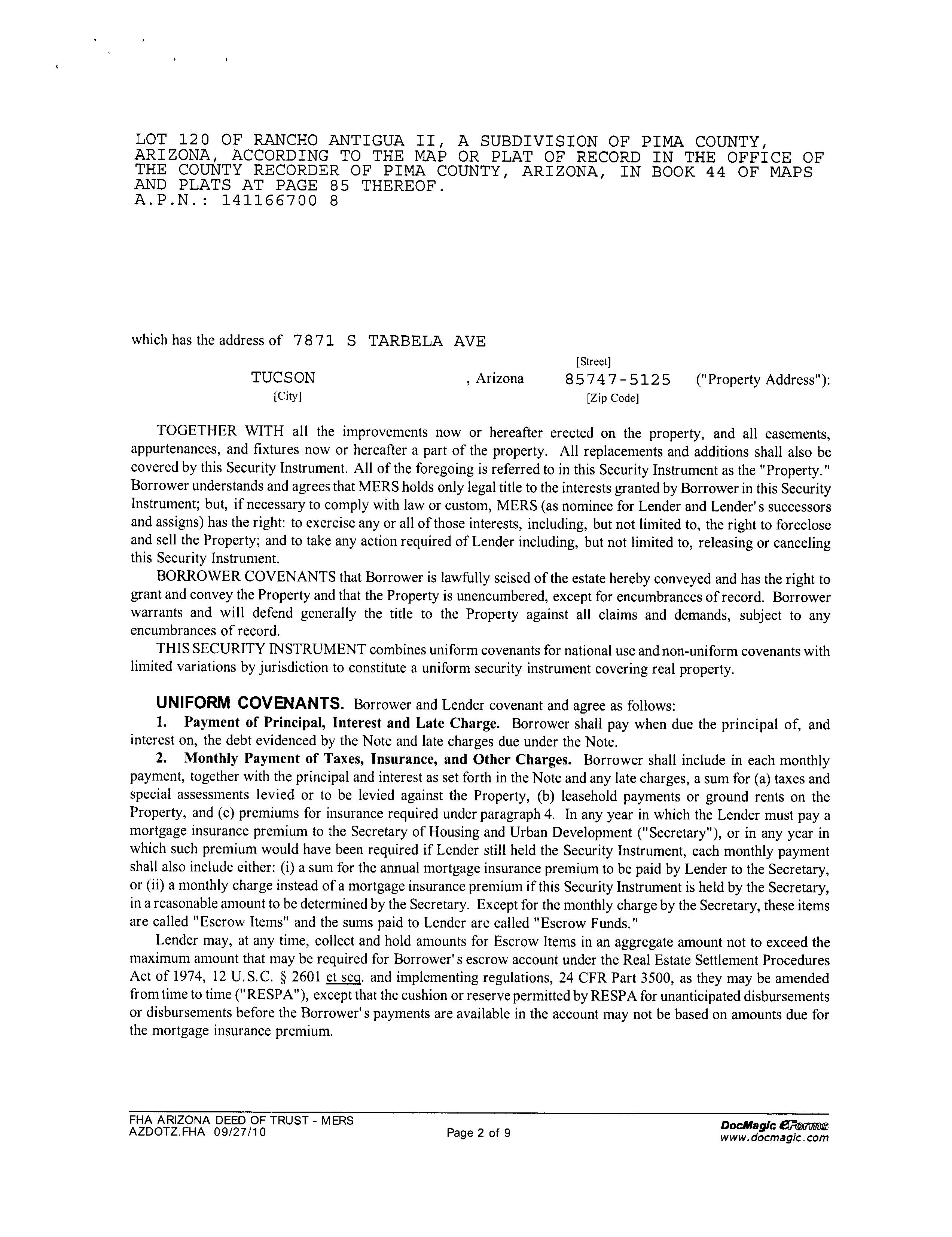 Subject Property : 7871 S Tarbela Ave Tucson AZ 85747