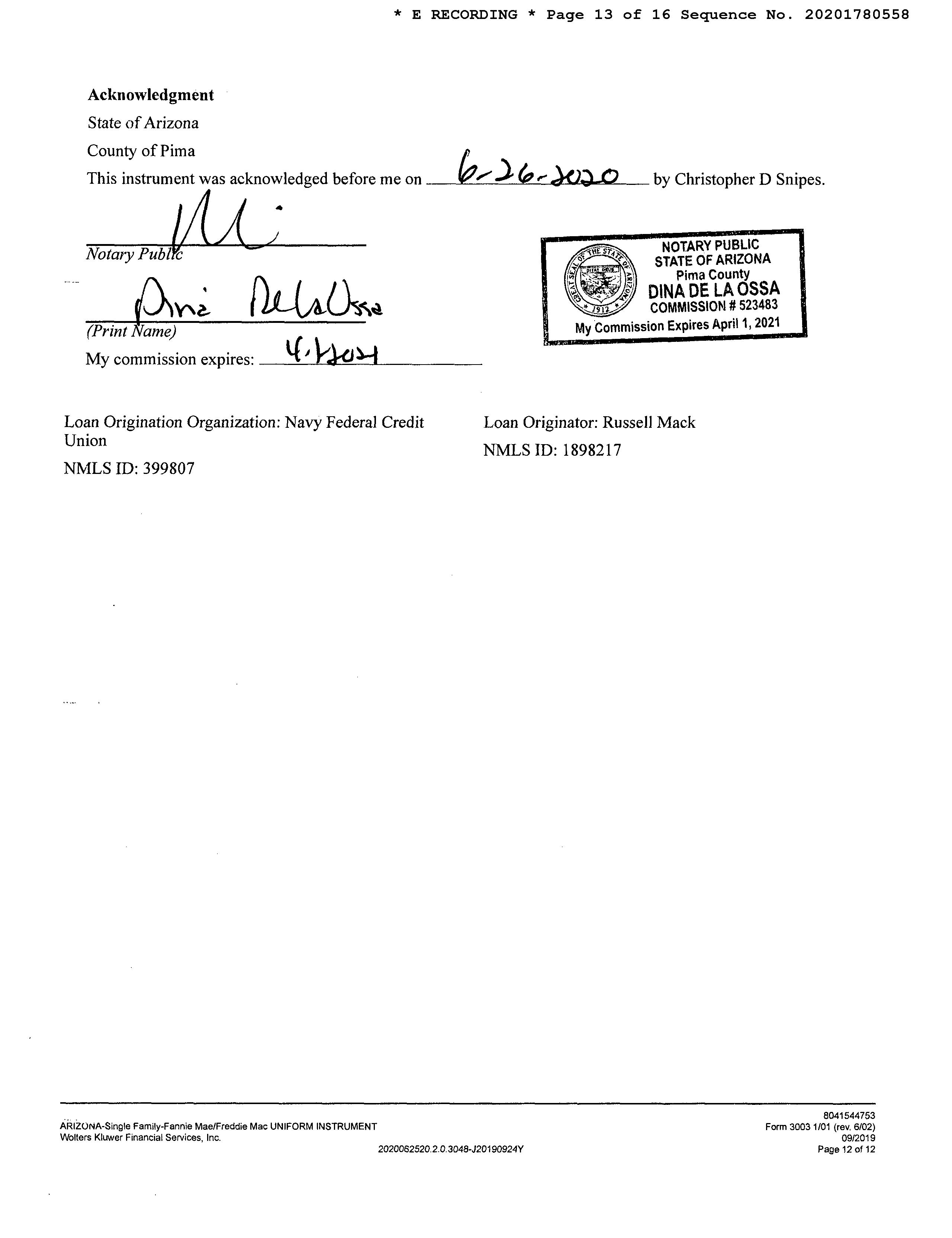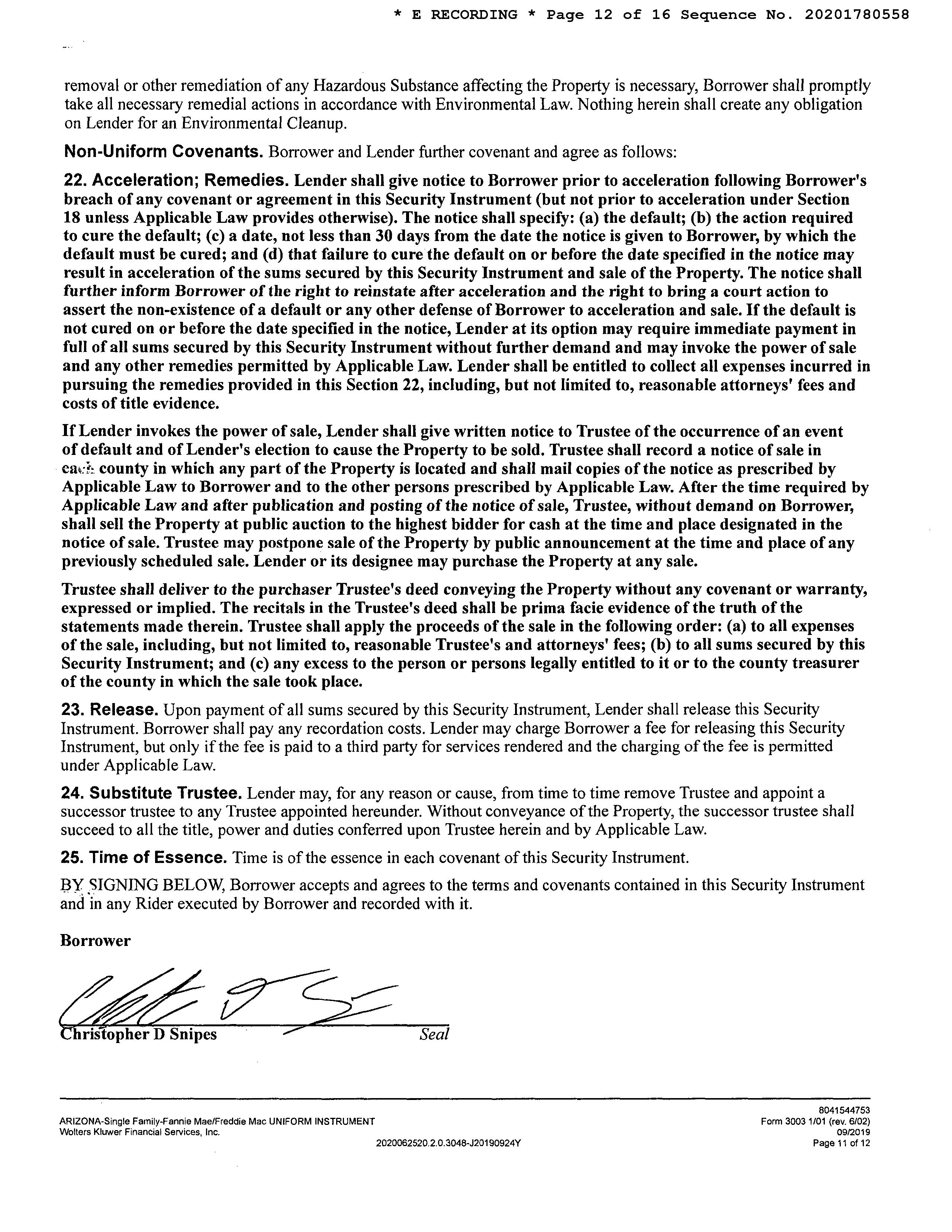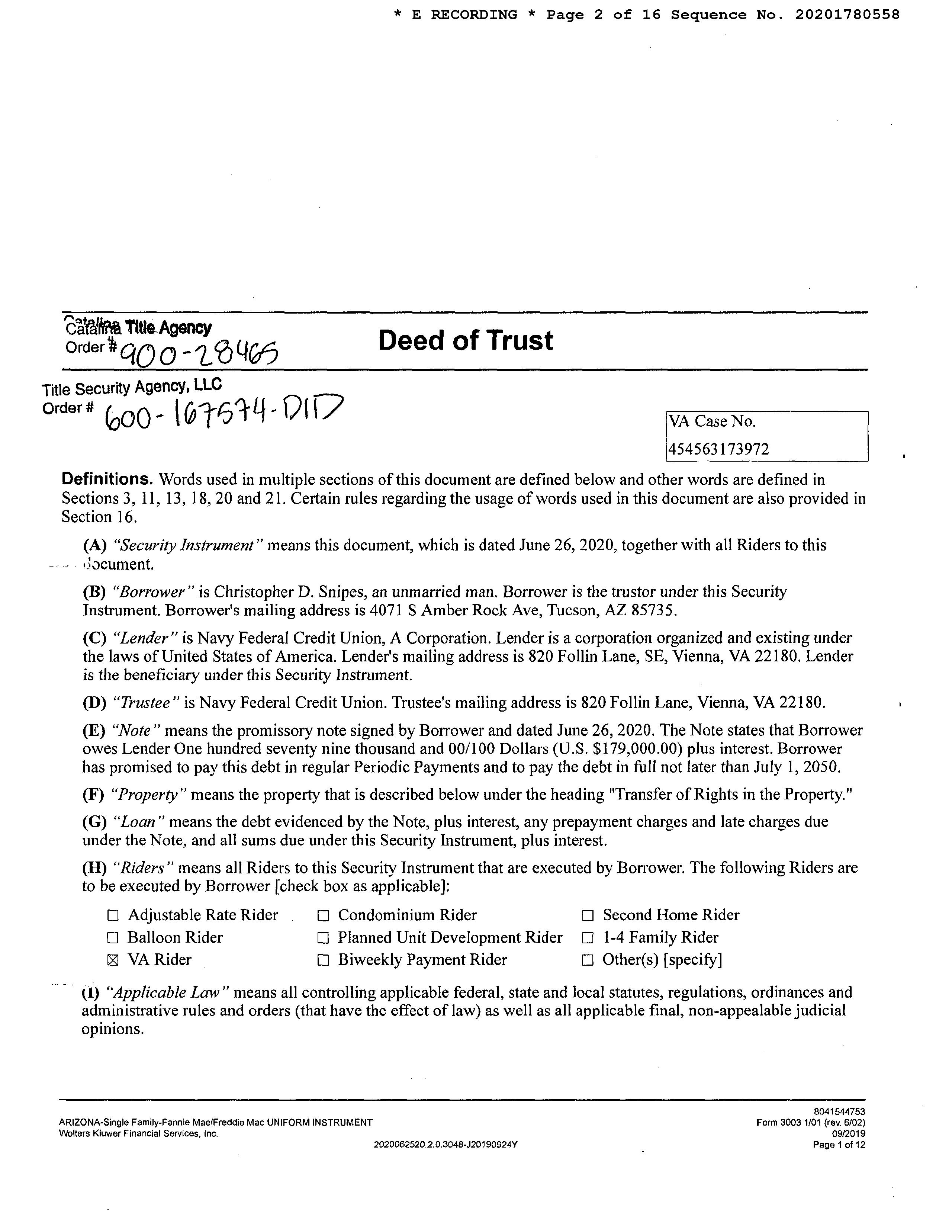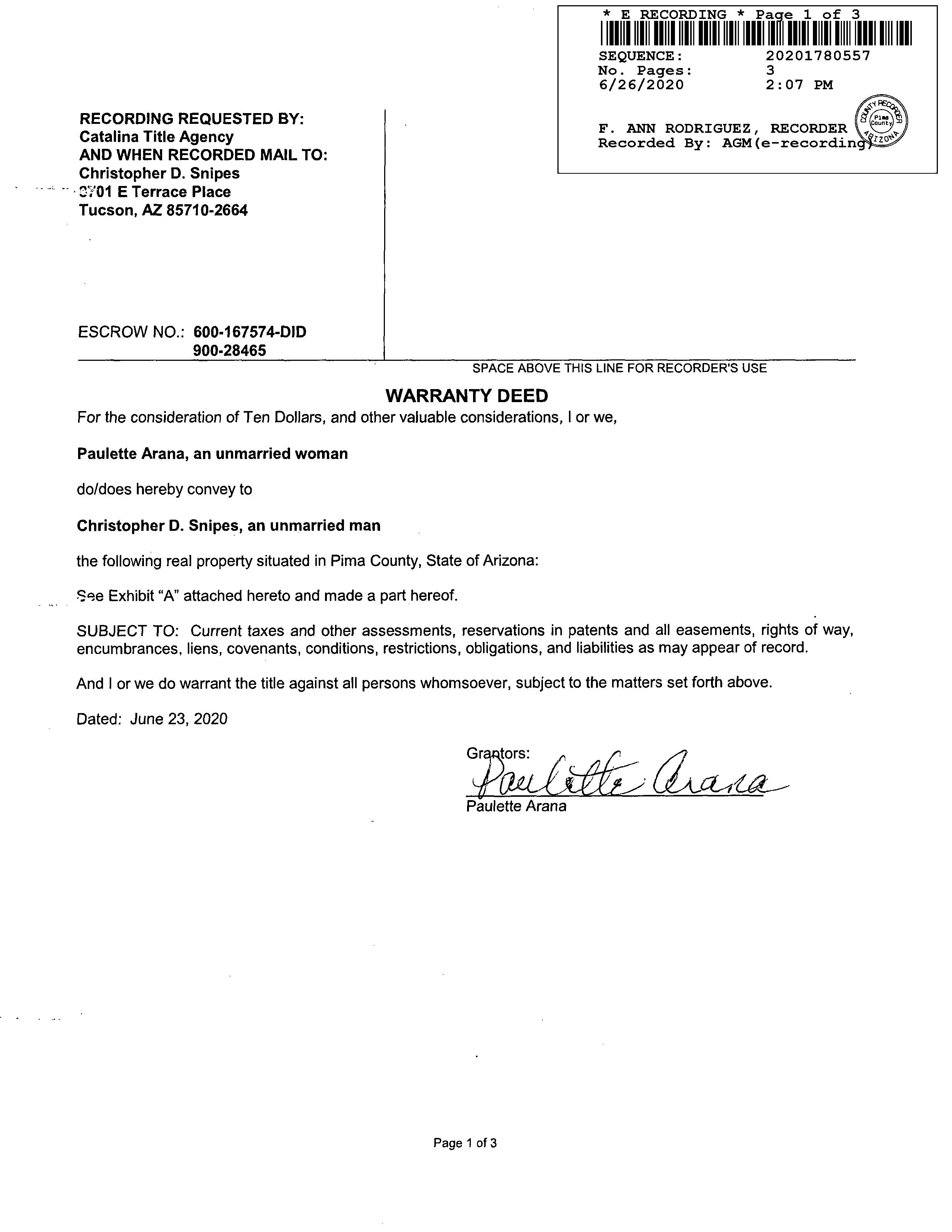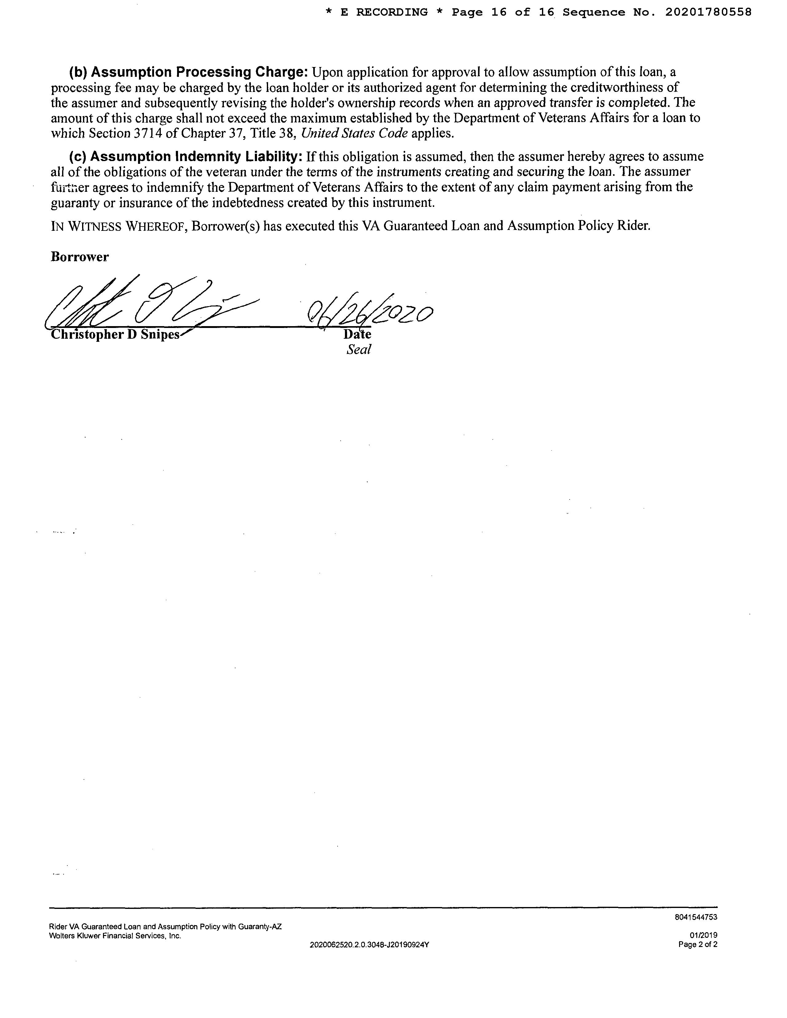 OWNER: SNIPES CHRISTOPHER D AFFIDAVIT 2020 1780557 06/26/2020