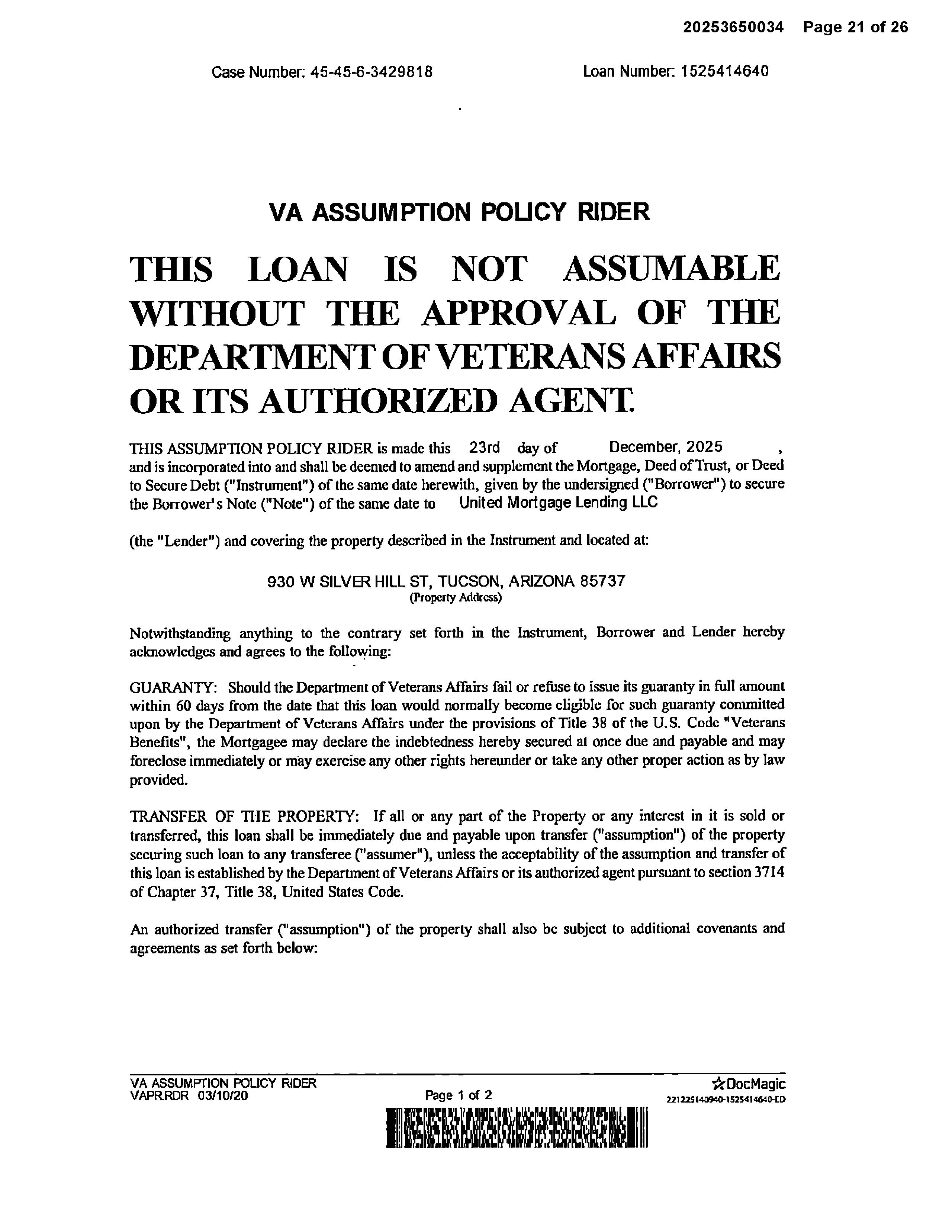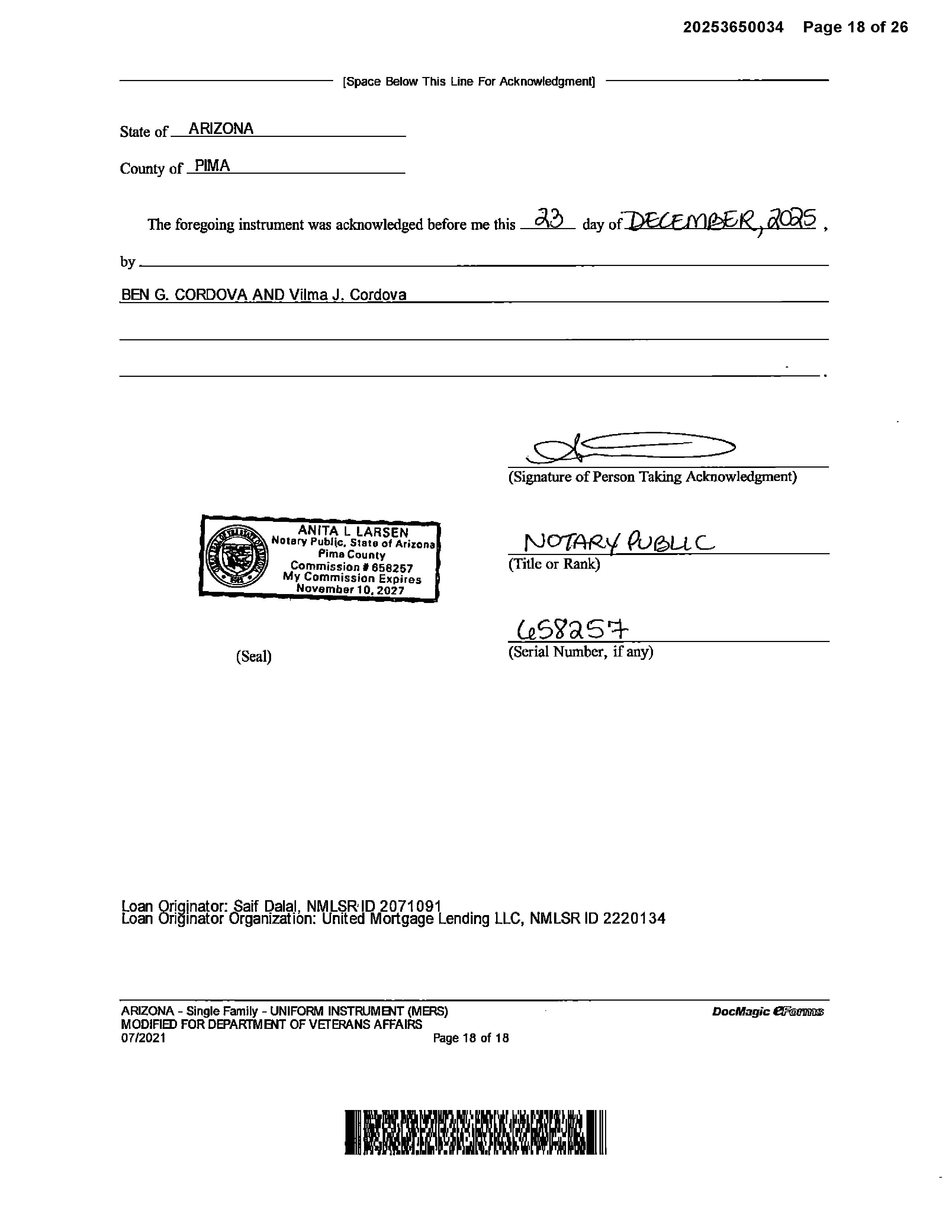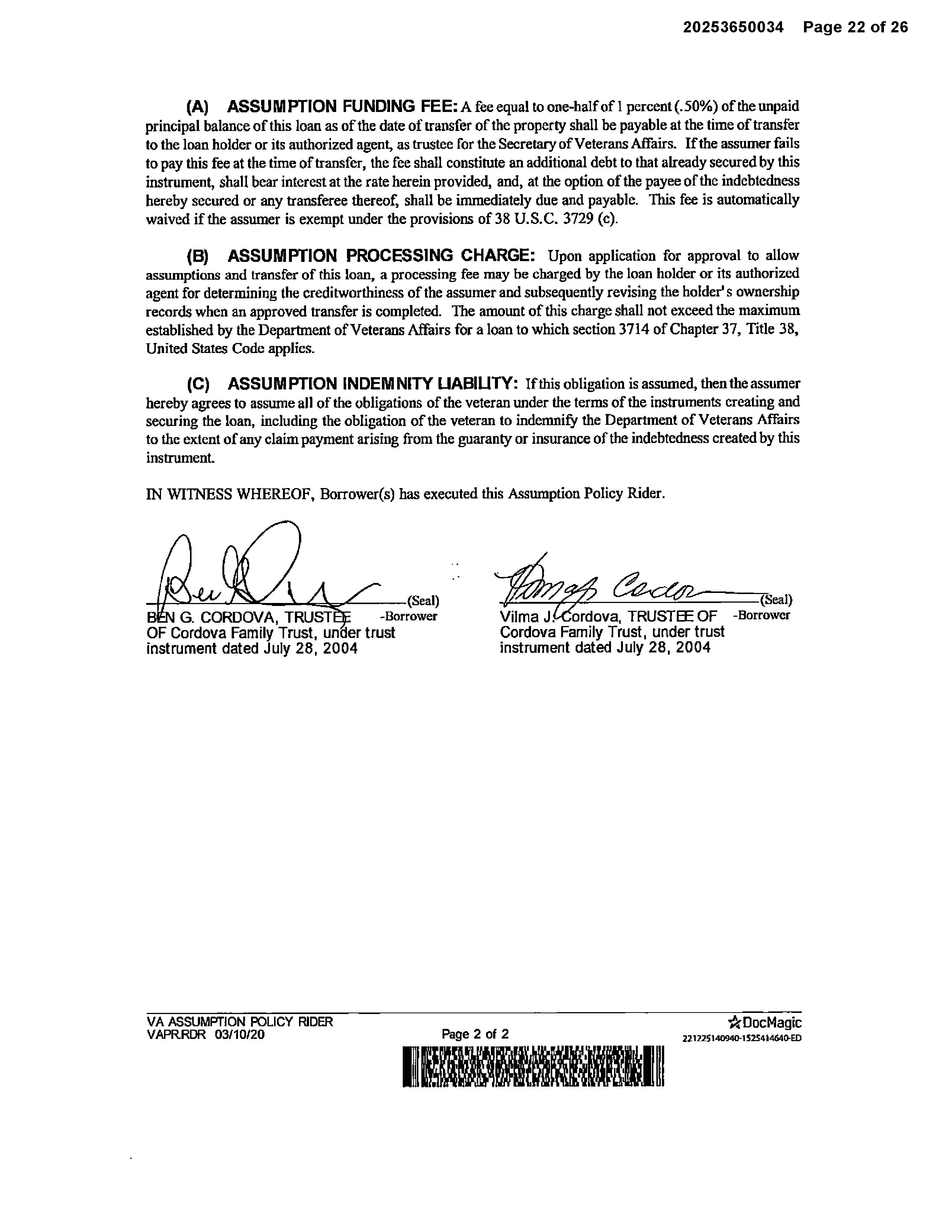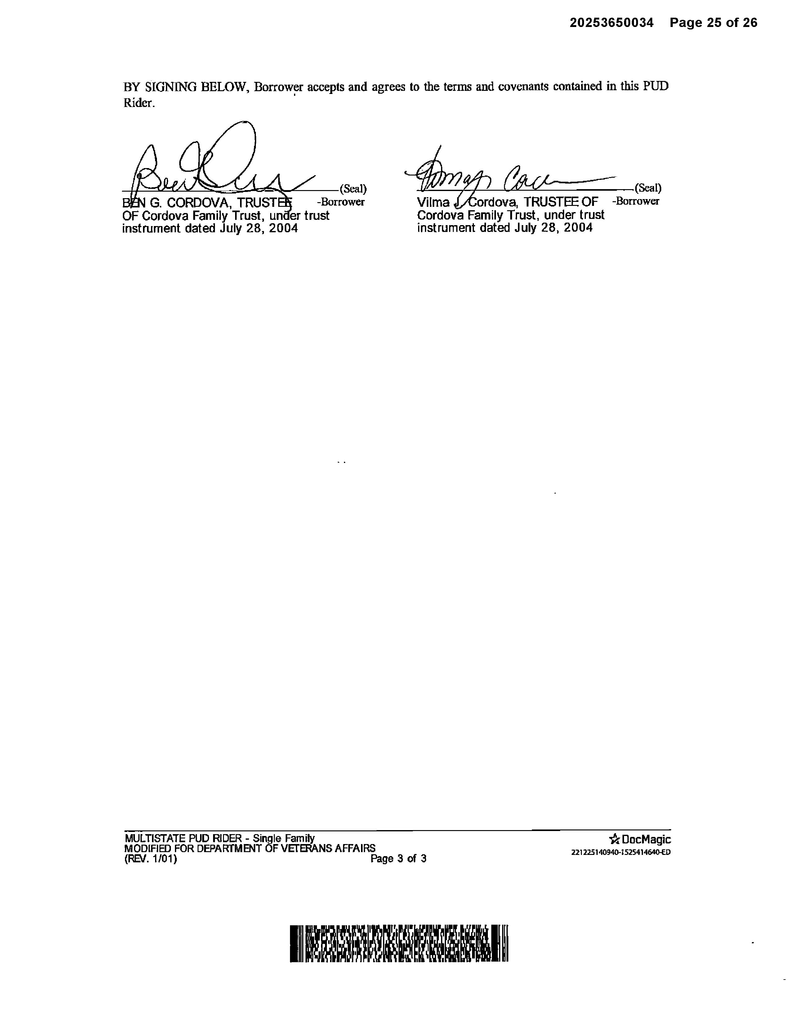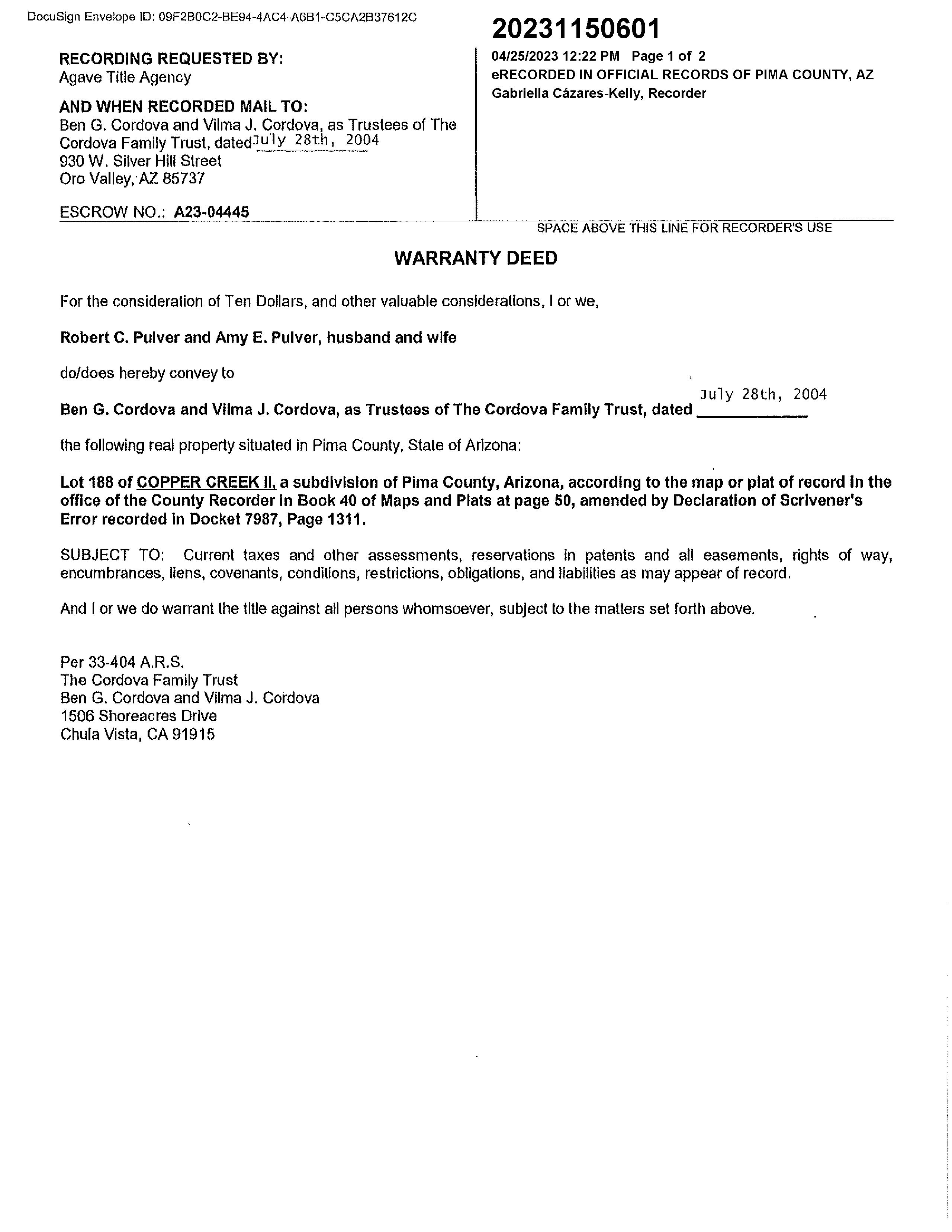 OWNER: CORDOVA FAMILY TRUST & CORD AFFIDAVIT 2023 1150601 04/25/2023