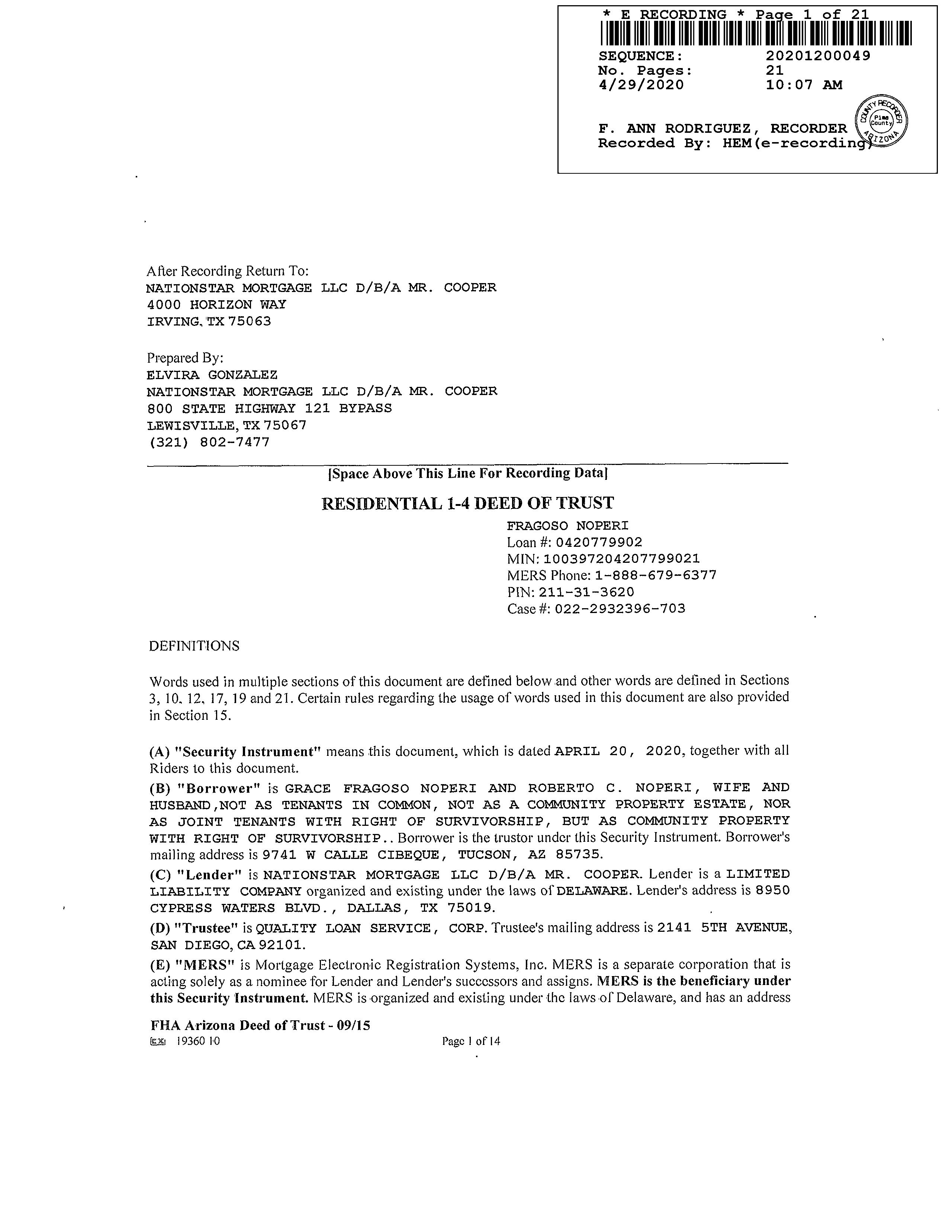 #1   2020 S Calle Pomo Tucson Az 85735 Owner Name: Soto Mayra /Garcia Samuel
