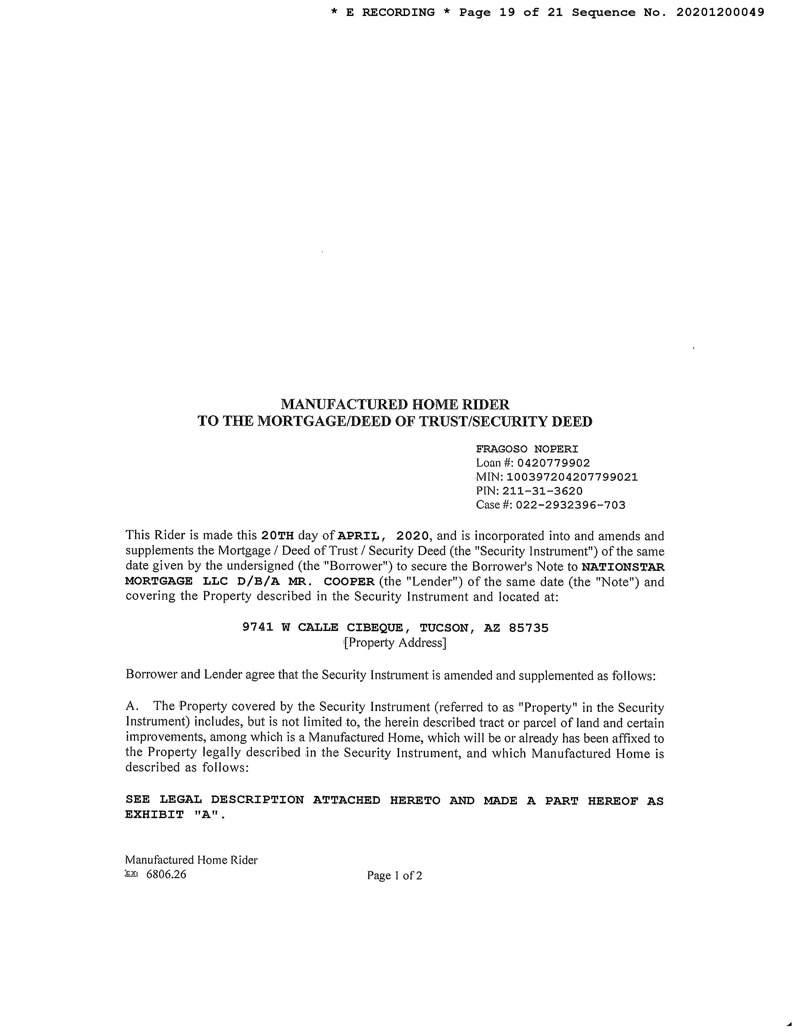 Deed Type: Warranty Deed Land Use: Mobile Home Subdivision / Tract: Tucson Saguaro Estates / Lot Size: 46,316 Year Built / Eff: 1986 /1986 Rec. Date / Price: 05/24/2019