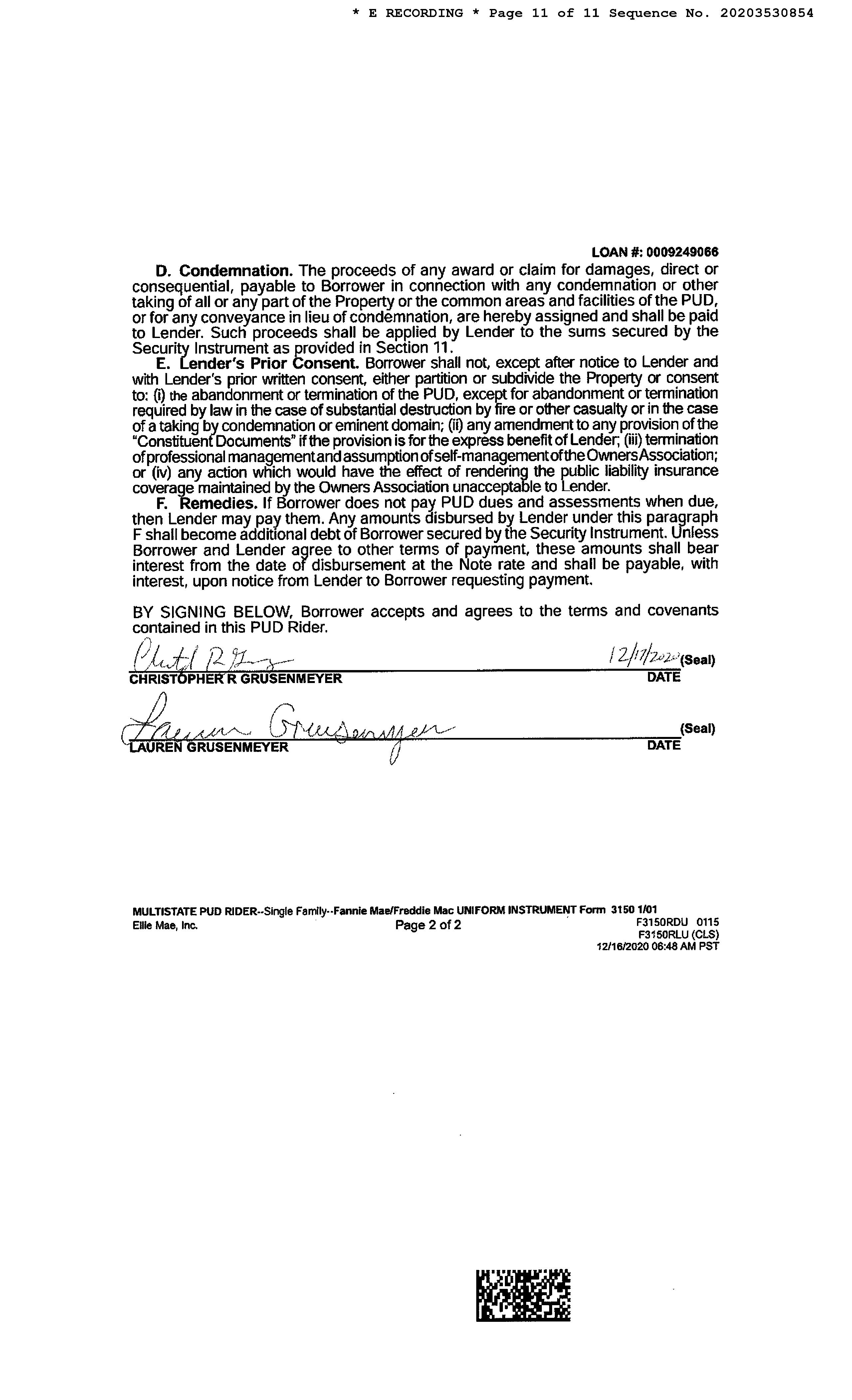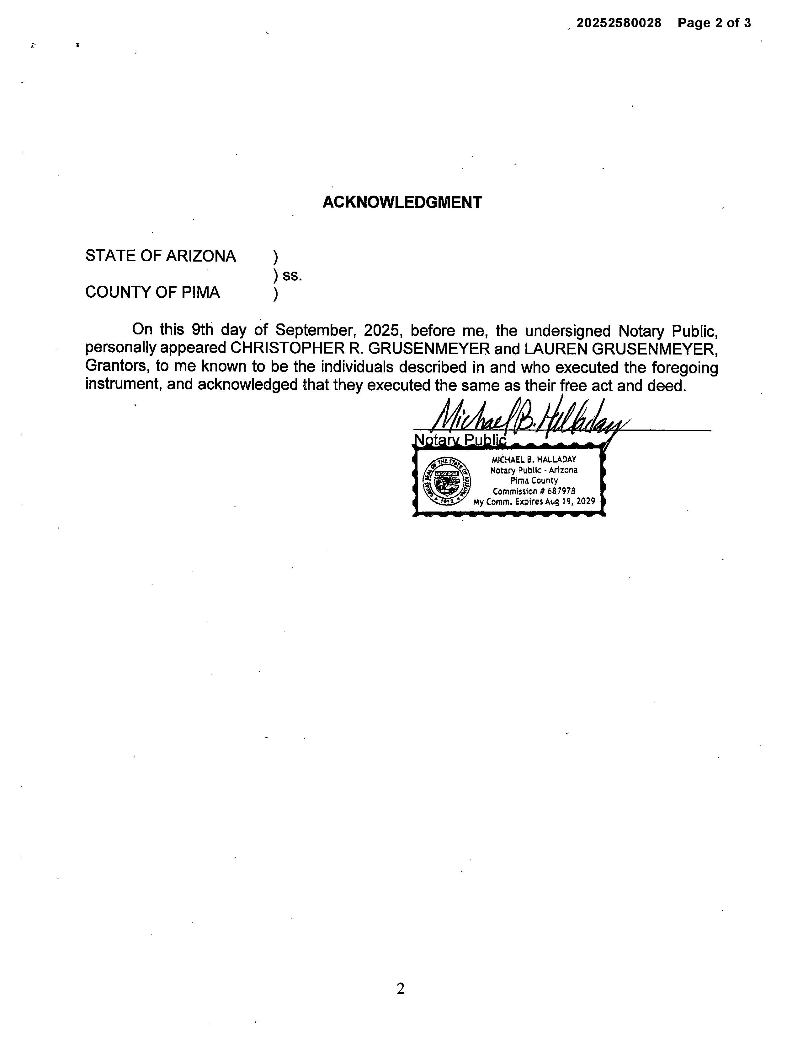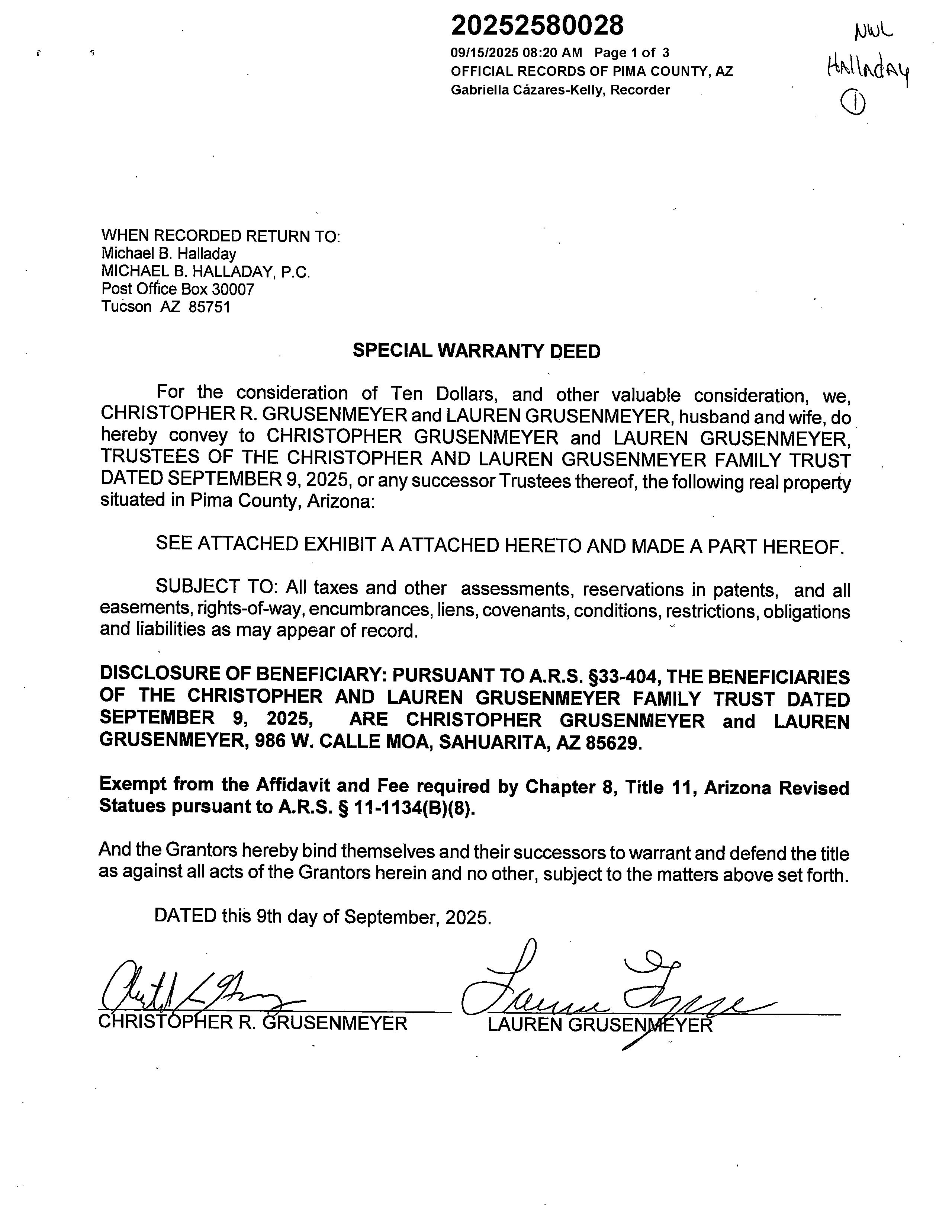 OWNER: CHRISTOPHER AND LAUREN GRUS AFFIDAVIT 2025 2580028 09/15/2025