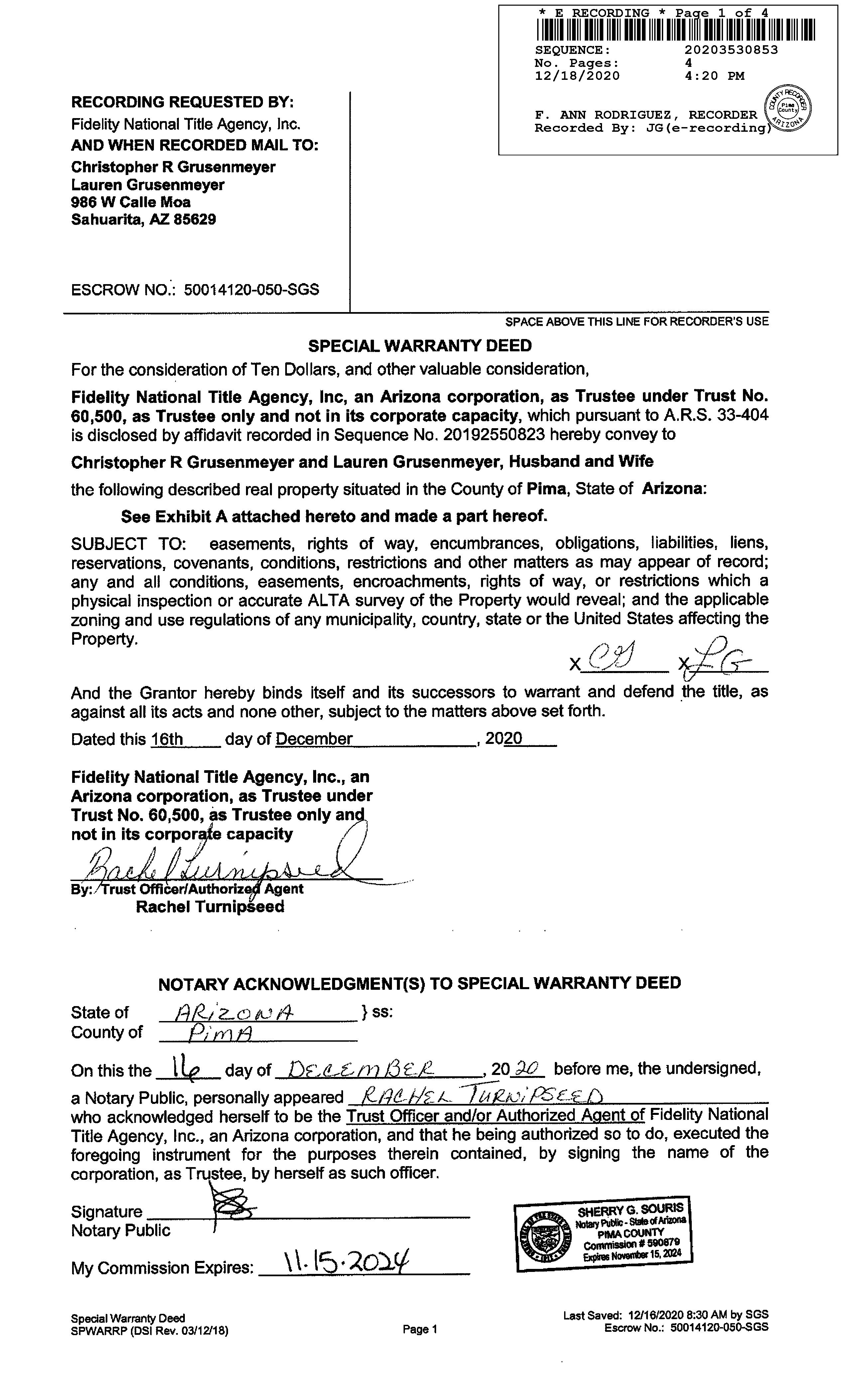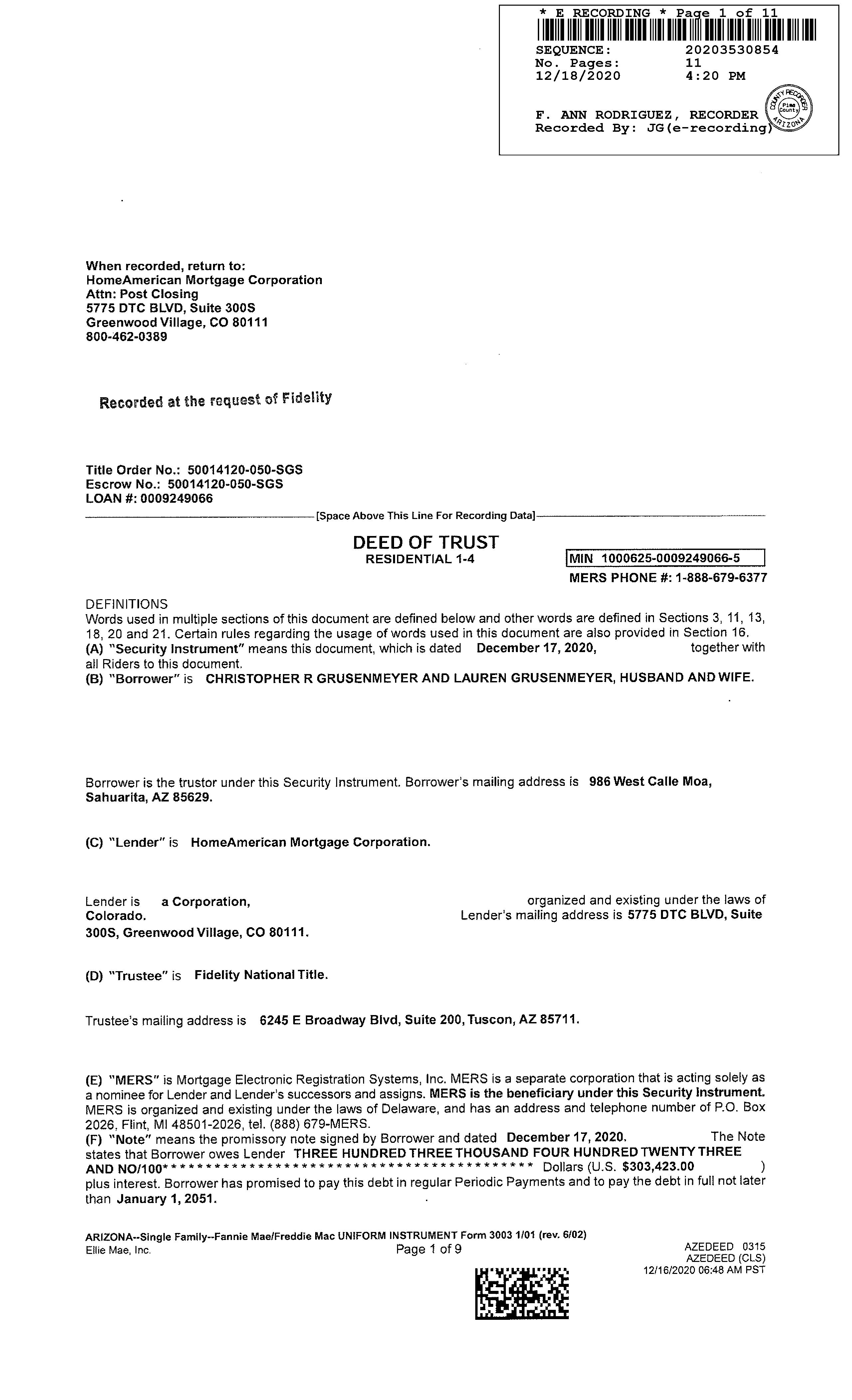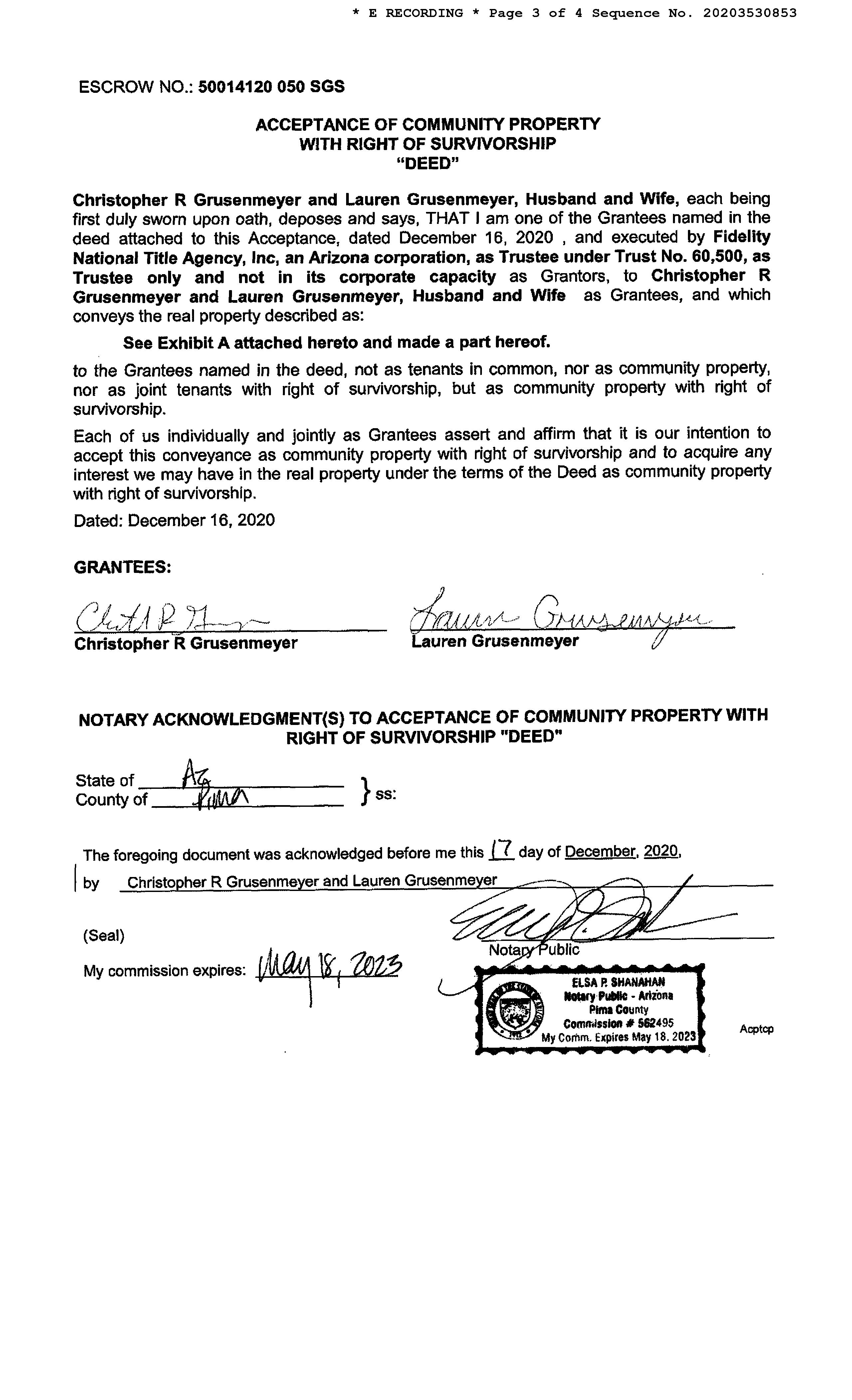 OWNER: CHRISTOPHER AND LAUREN GRUS AFFIDAVIT 2025 2580028 09/15/2025