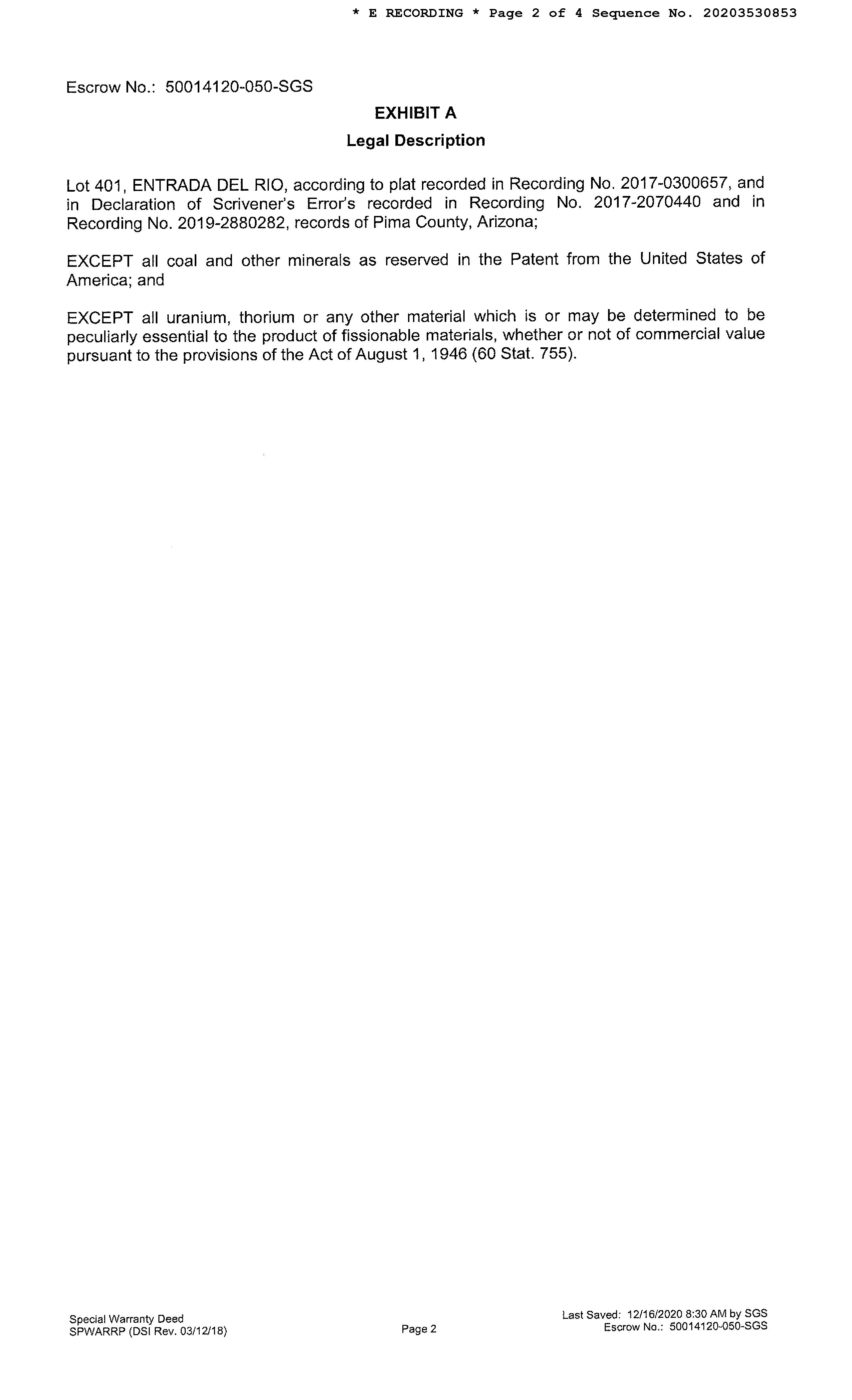 LEGAL: ENTRADA DEL RIO LOT 401 SQ20170300657