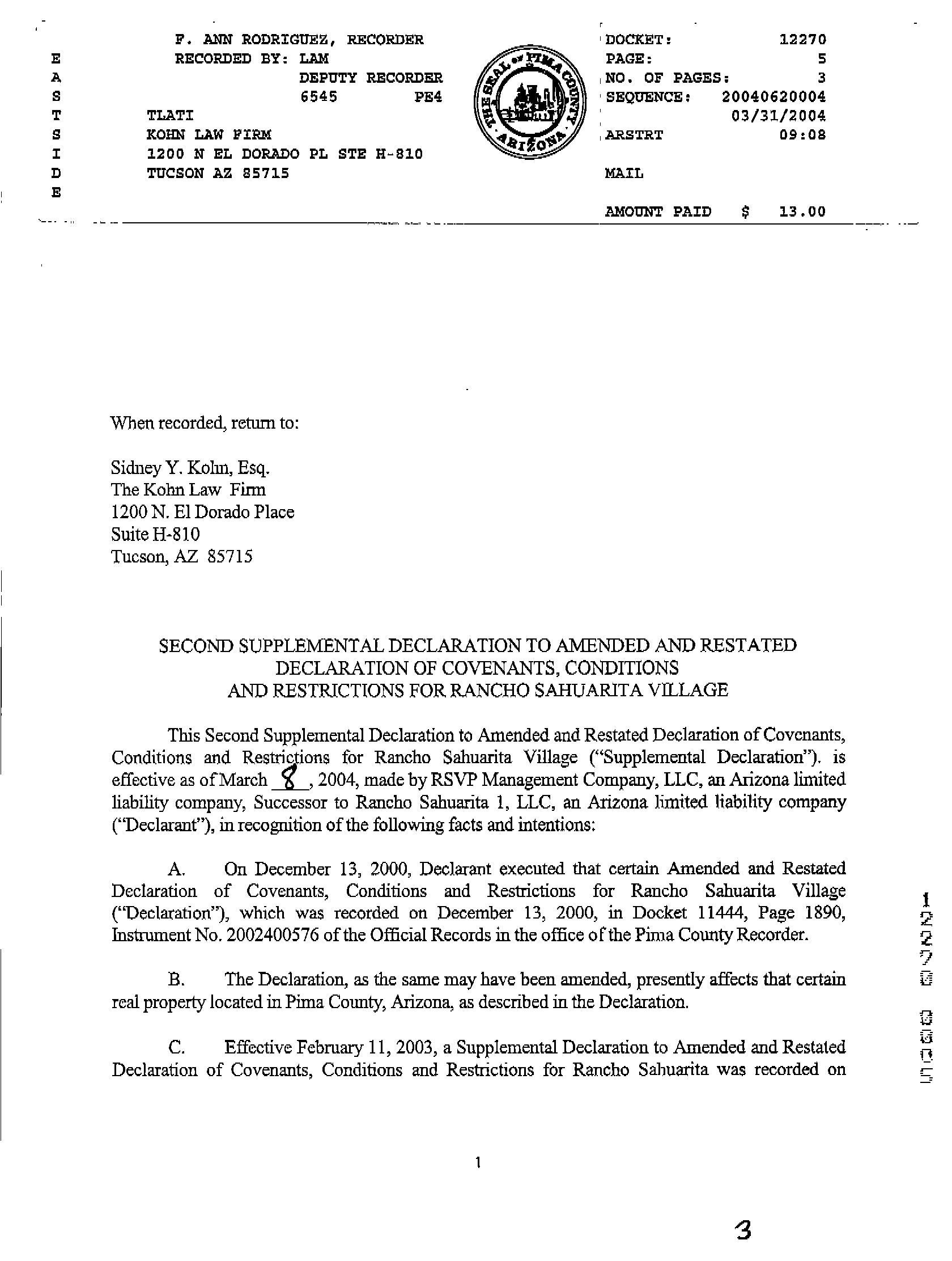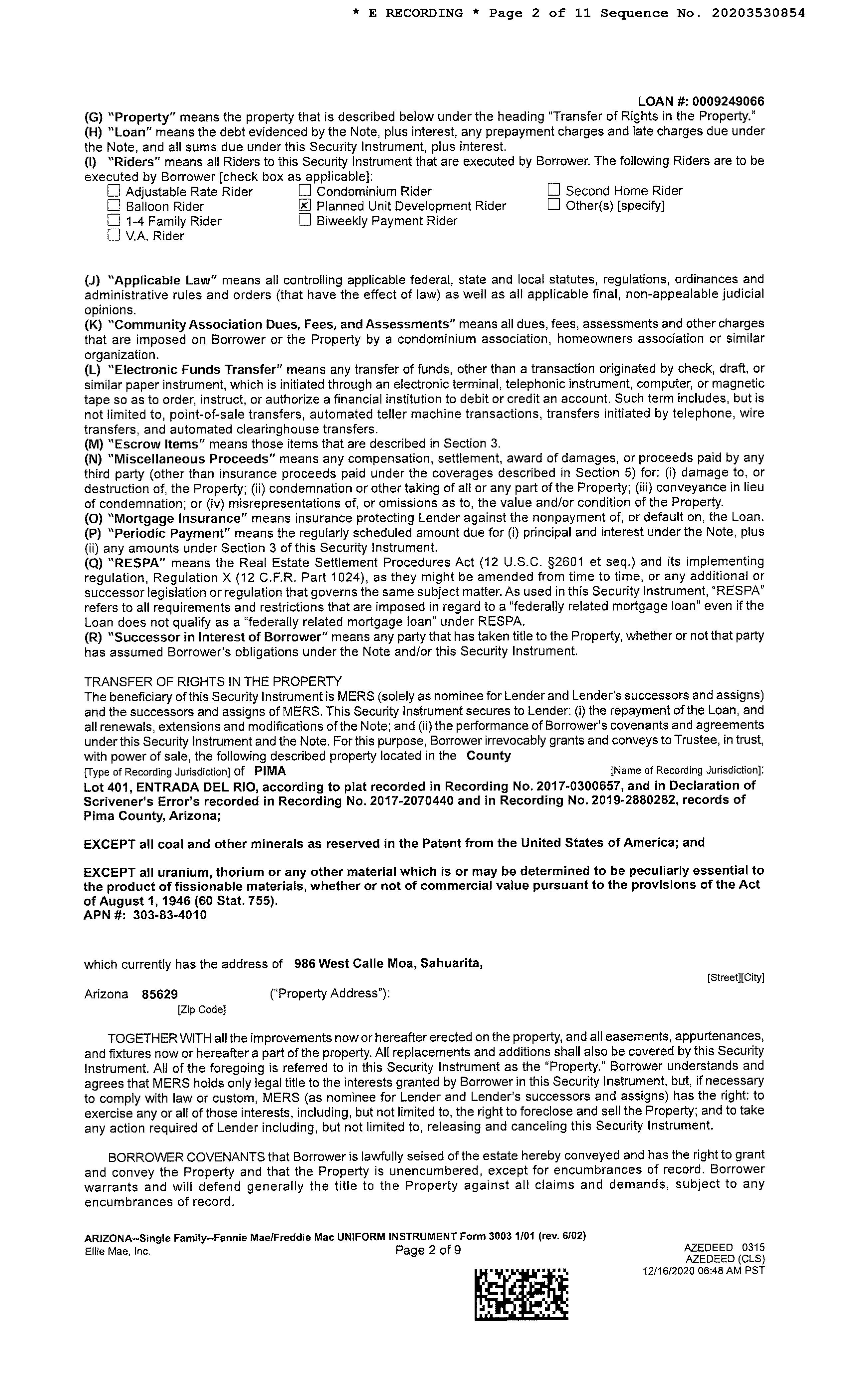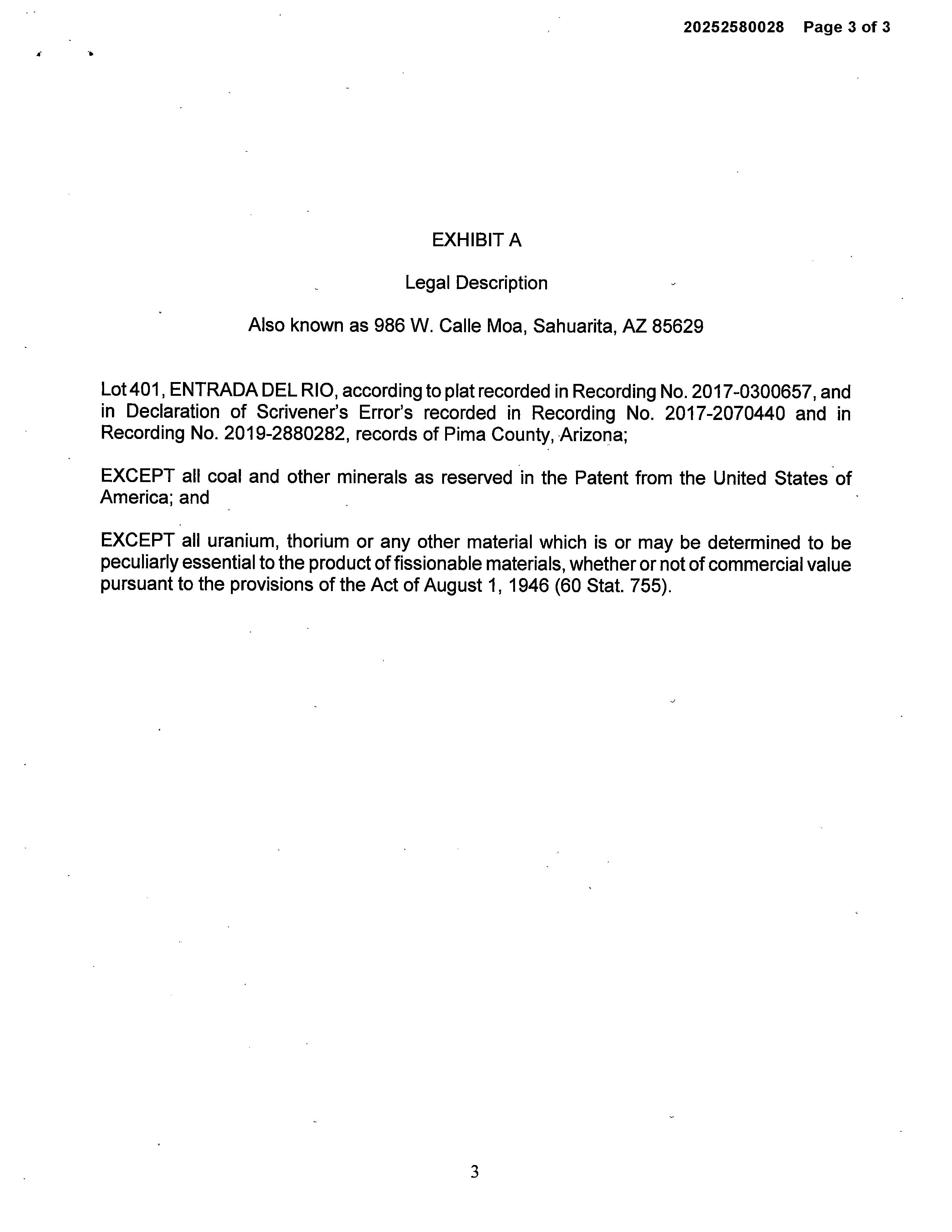 SITUS: 986 W CALLE MOA SAH