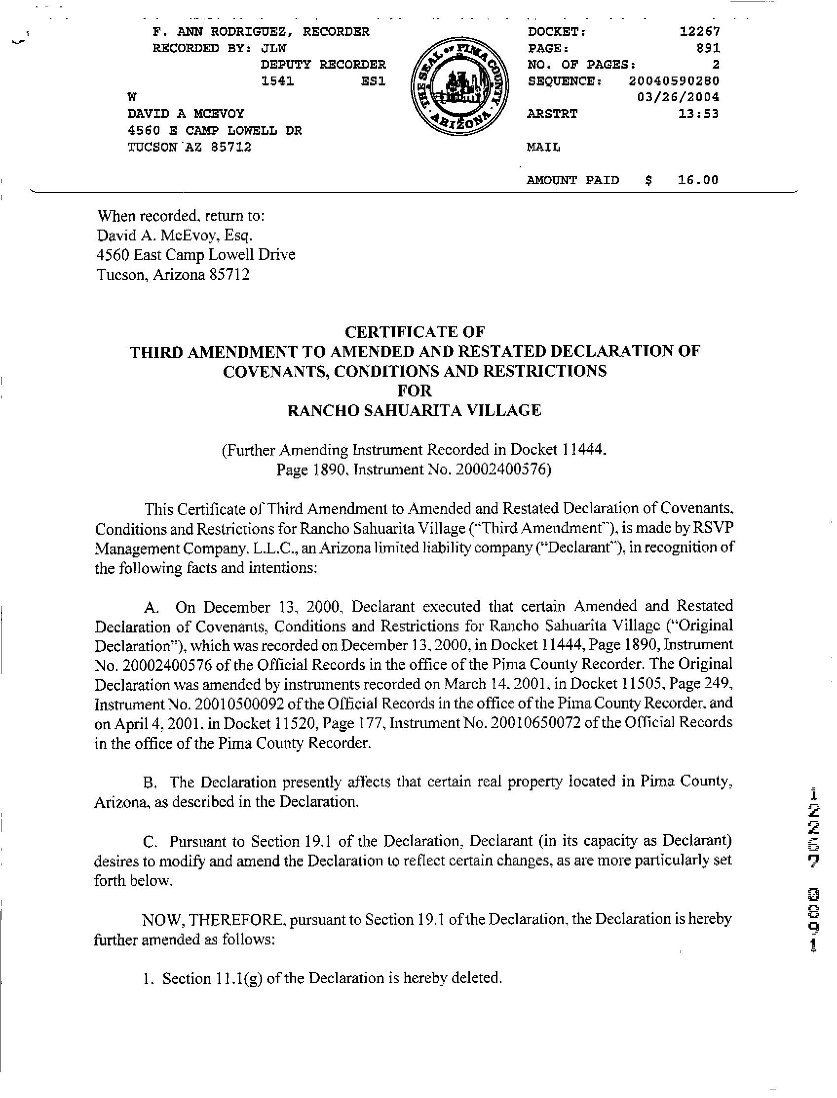 Covenants, Conditions & Restrictions