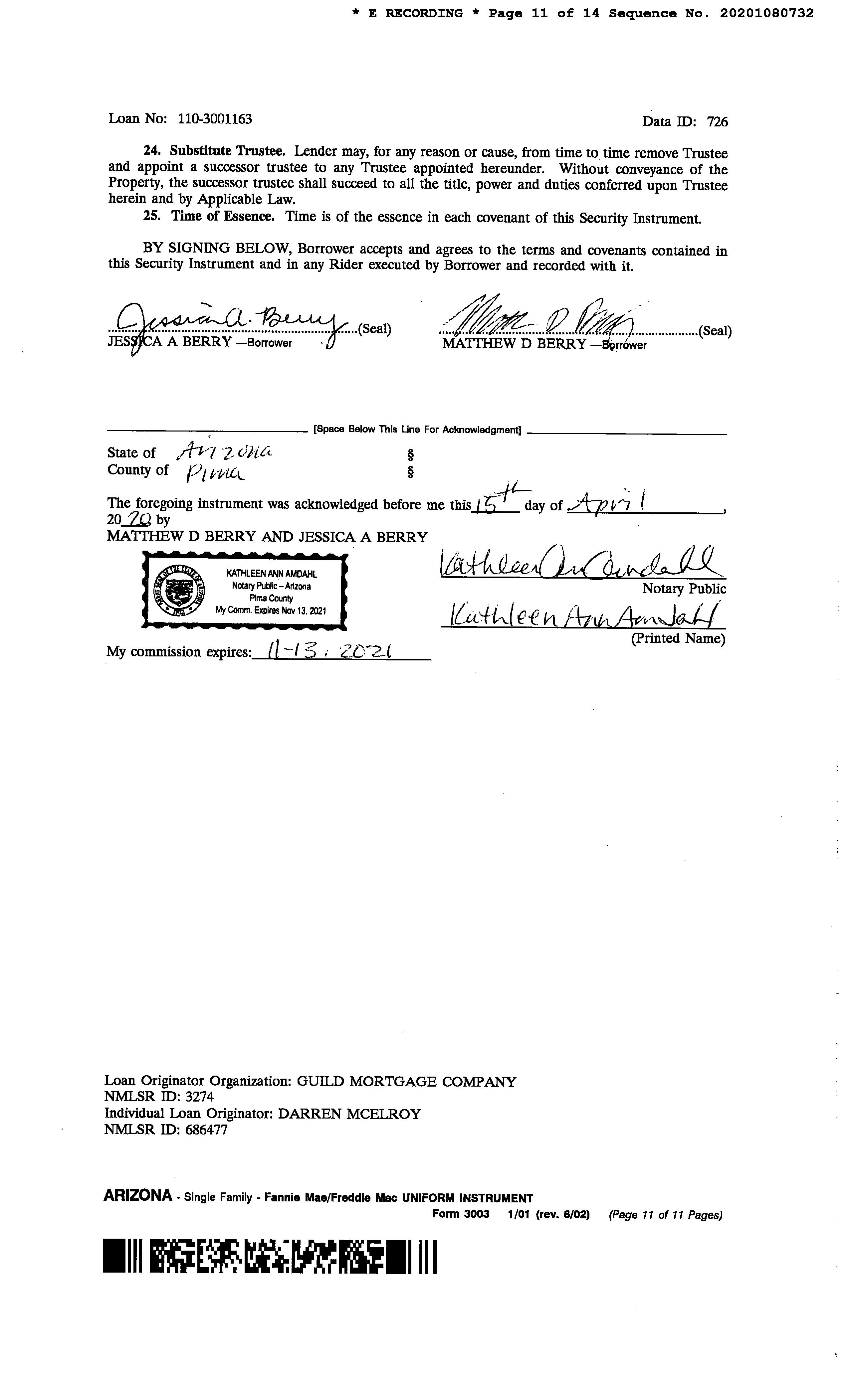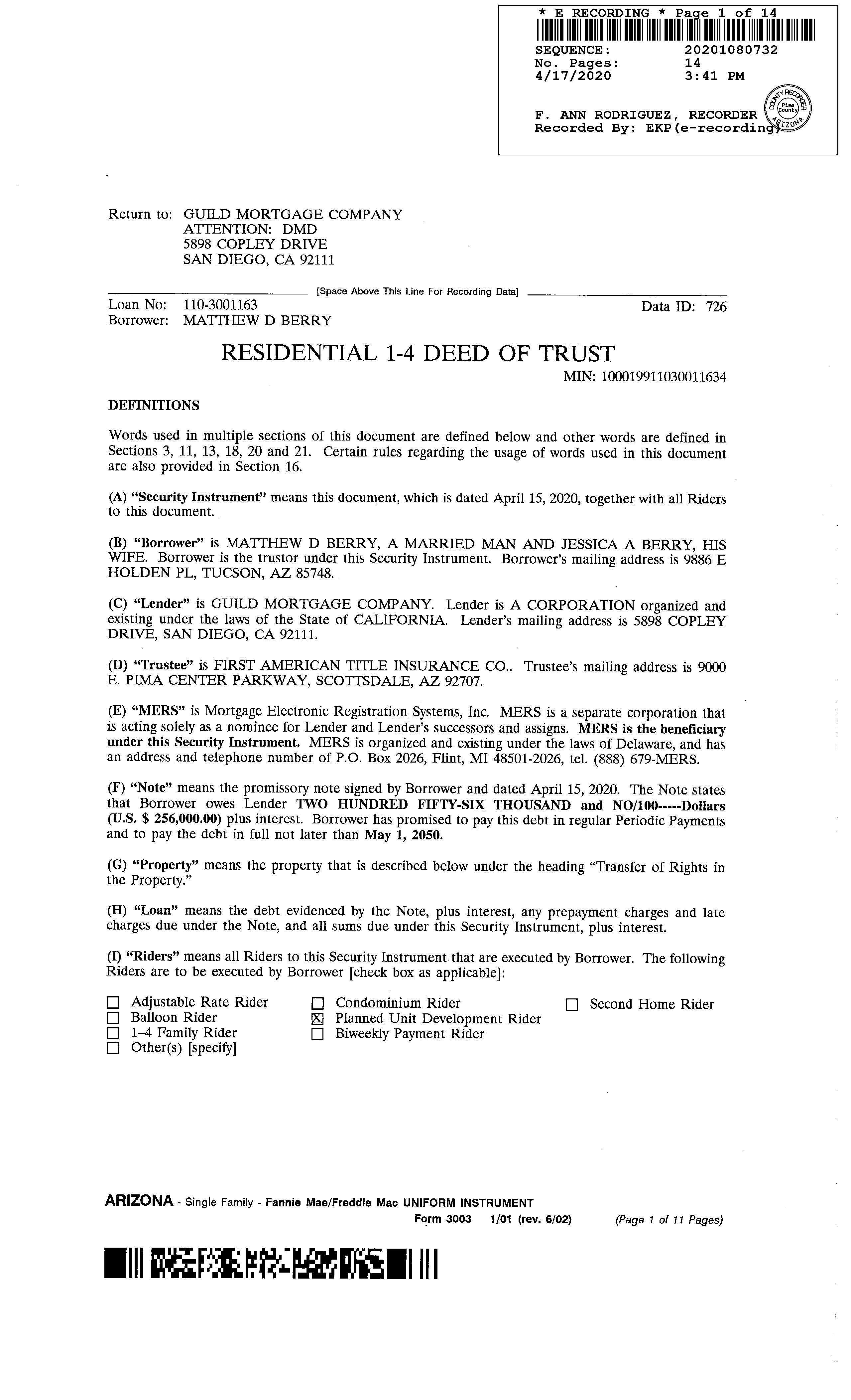 OWNER: BERRY MATTHEW D & JESSICA A AFFIDAVIT 2018 1130504 04/23/2018