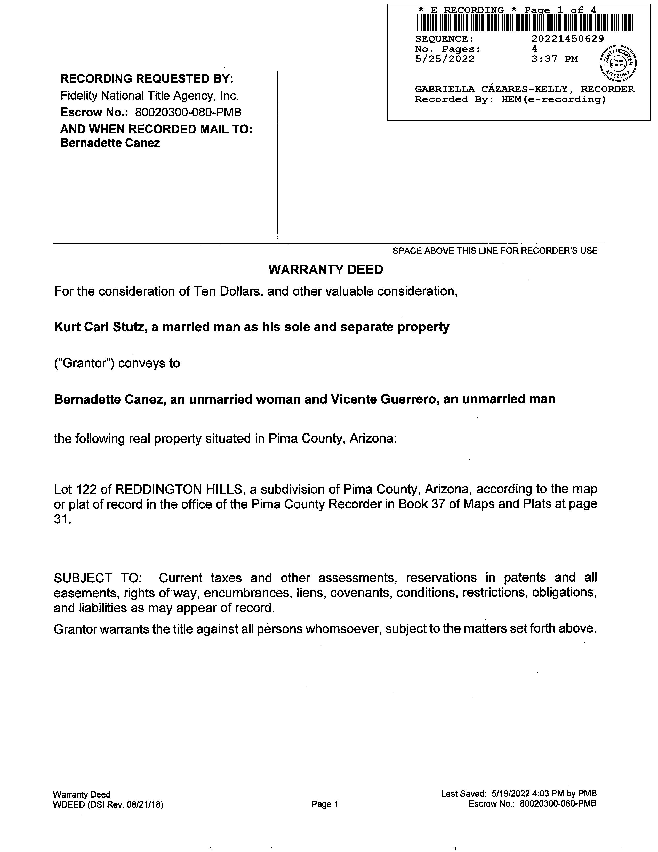 Owner Name: Canez Bernadette /Guerrero Vicente Jt & R