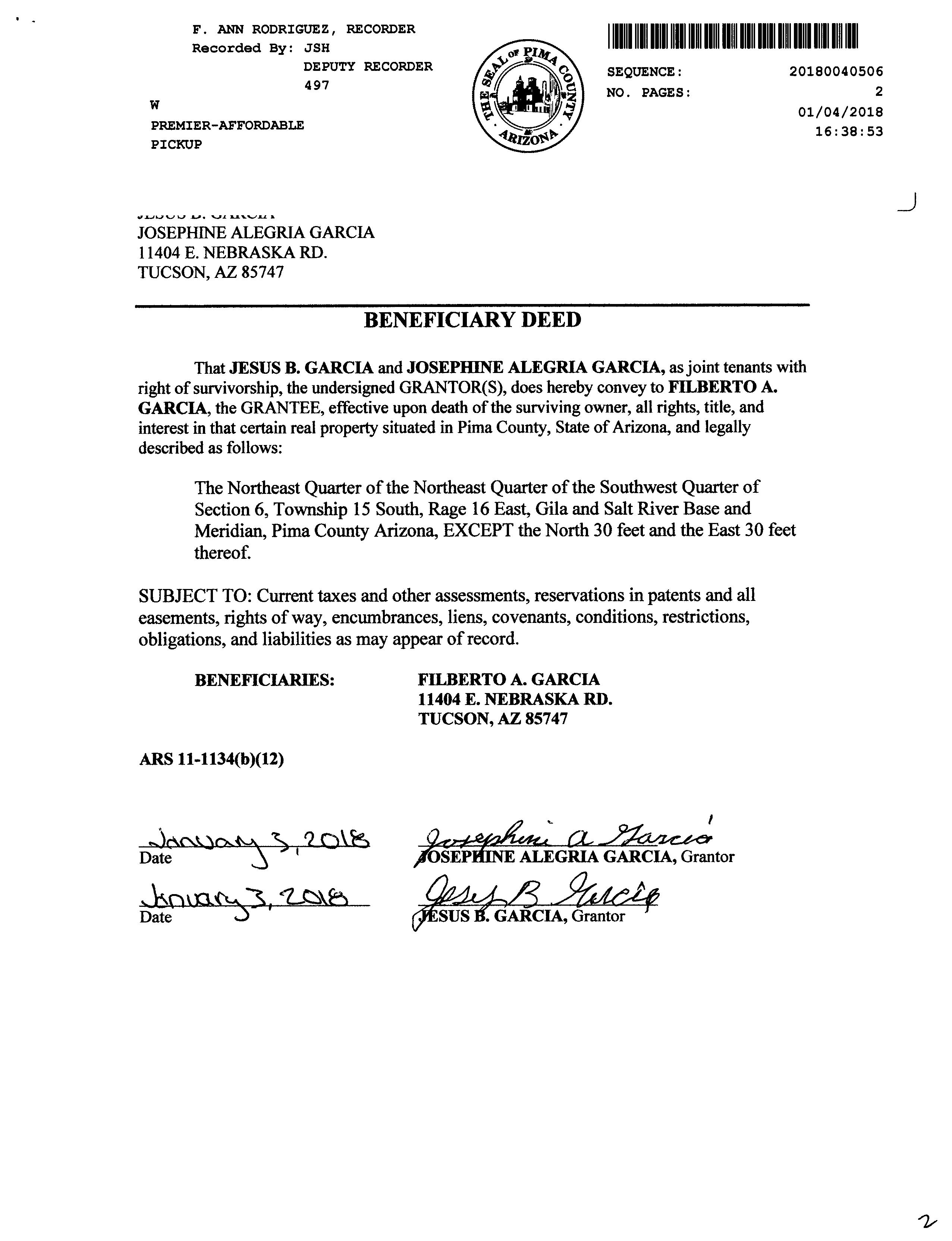 OWNER: GARCIA JOSEPHINE ALEGRIA & JESUS B JT/RS     8222 3149 02/12/1988