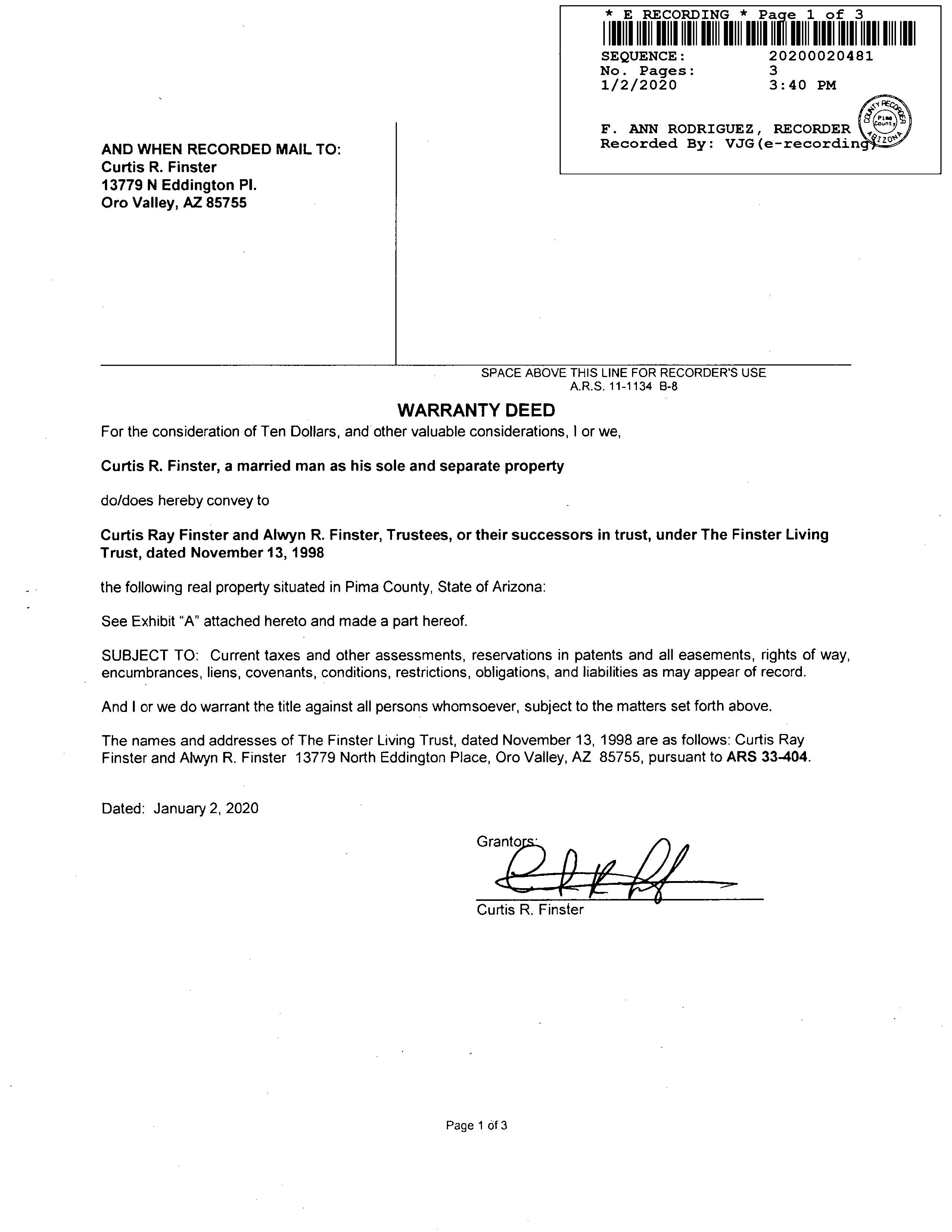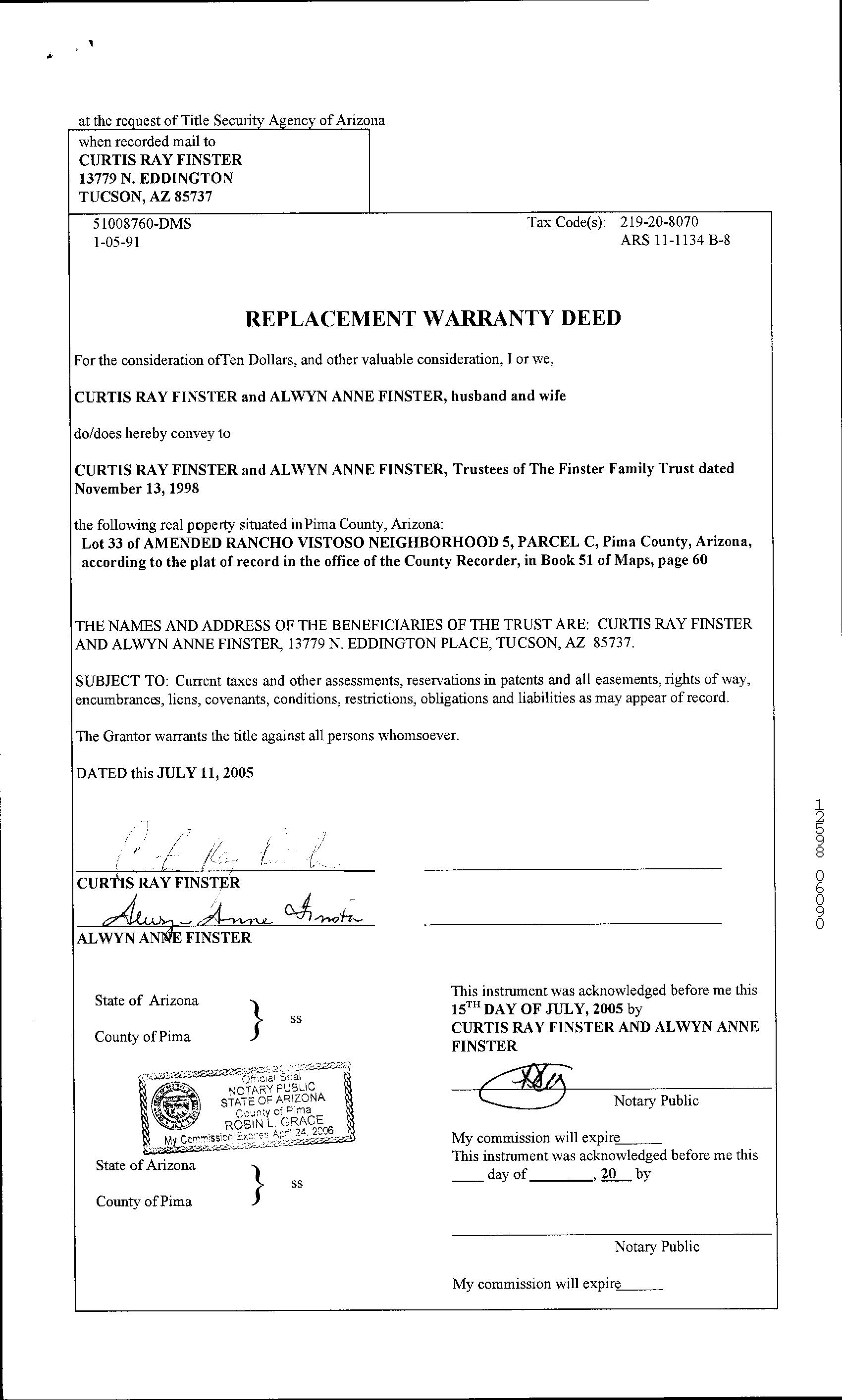 MAIL: ATTN: CURTIS RAY & ALWYN ANNE FINSTER TR  13779 N EDDINGTON PL  TUCSON AZ 85737-5871