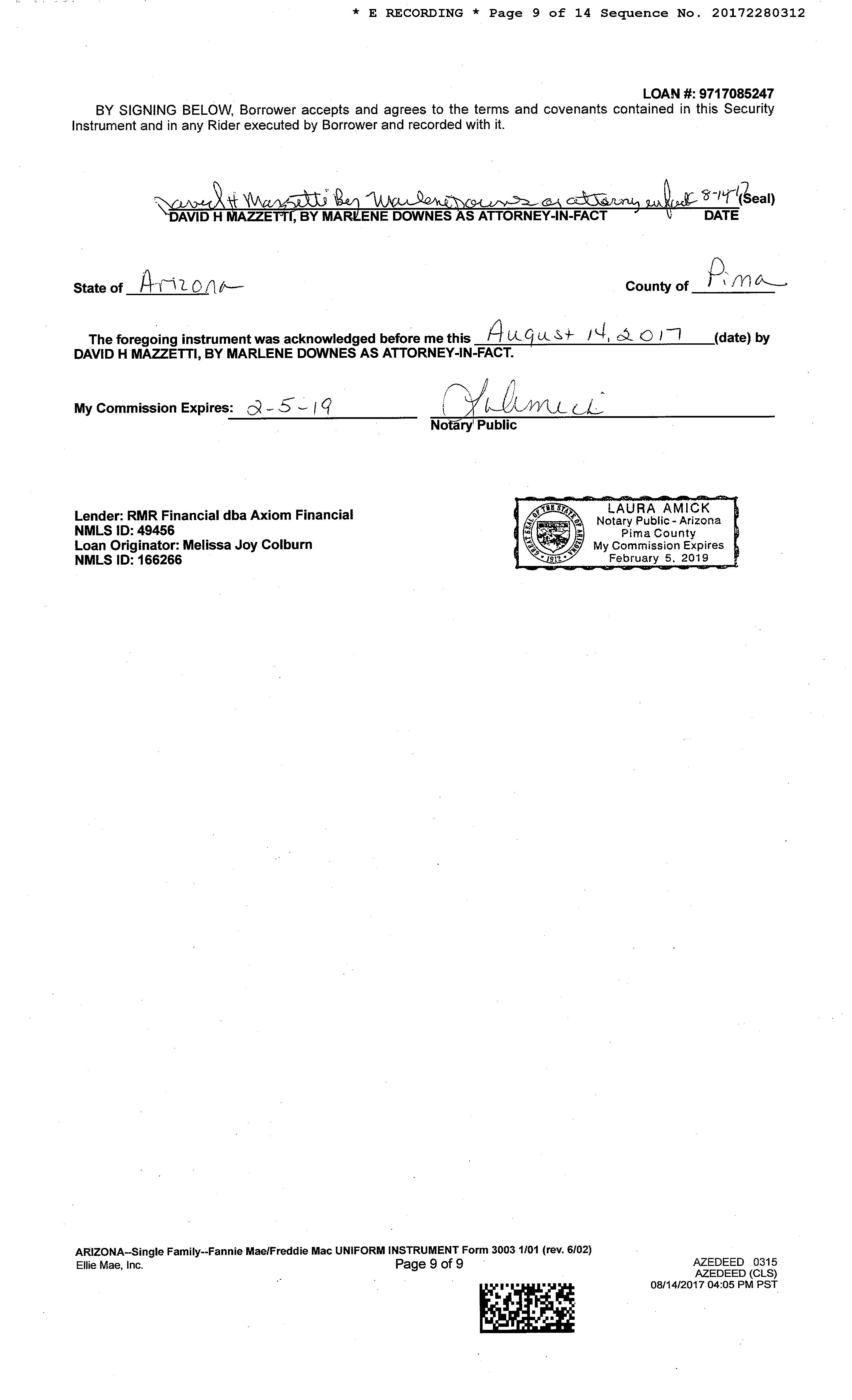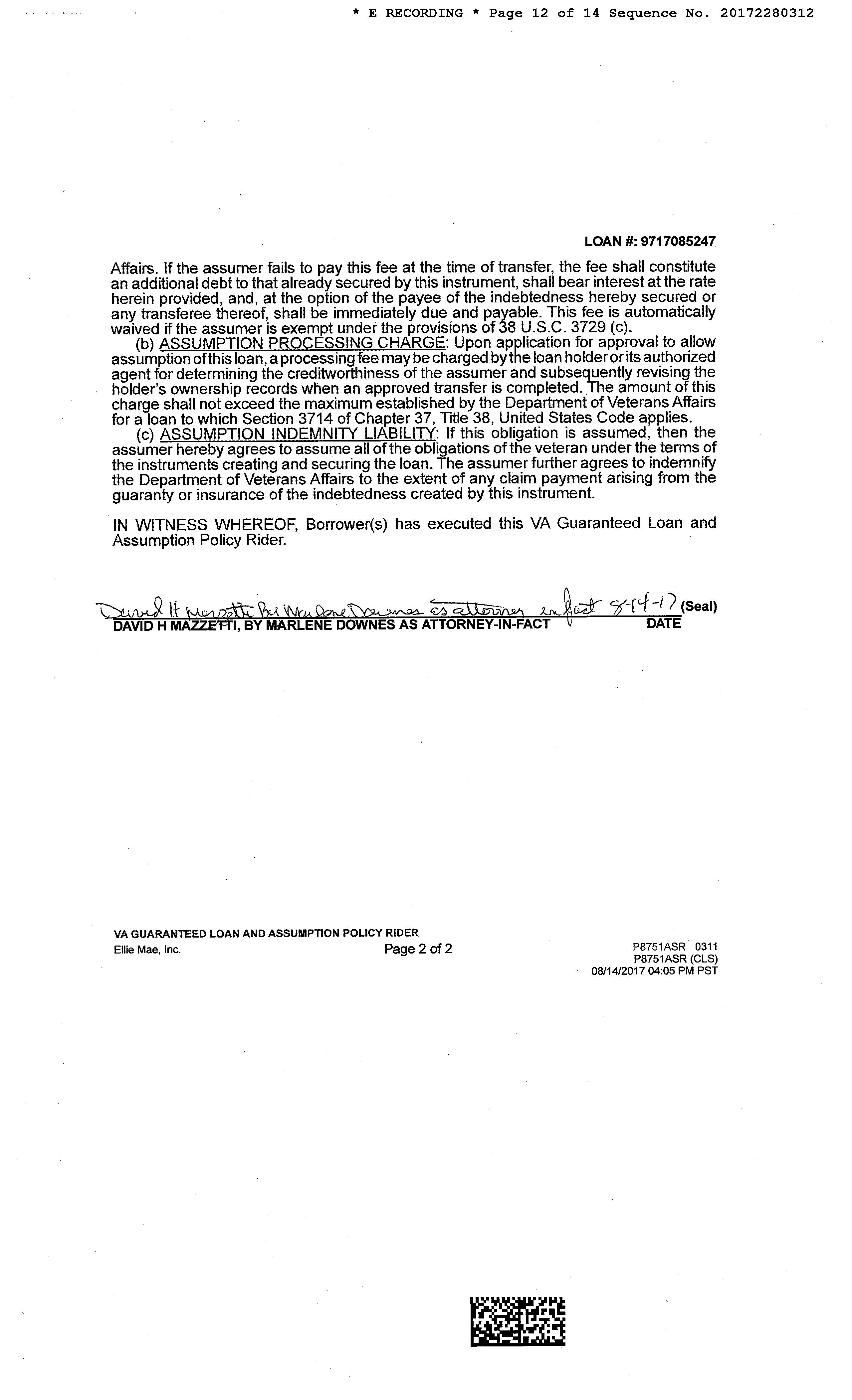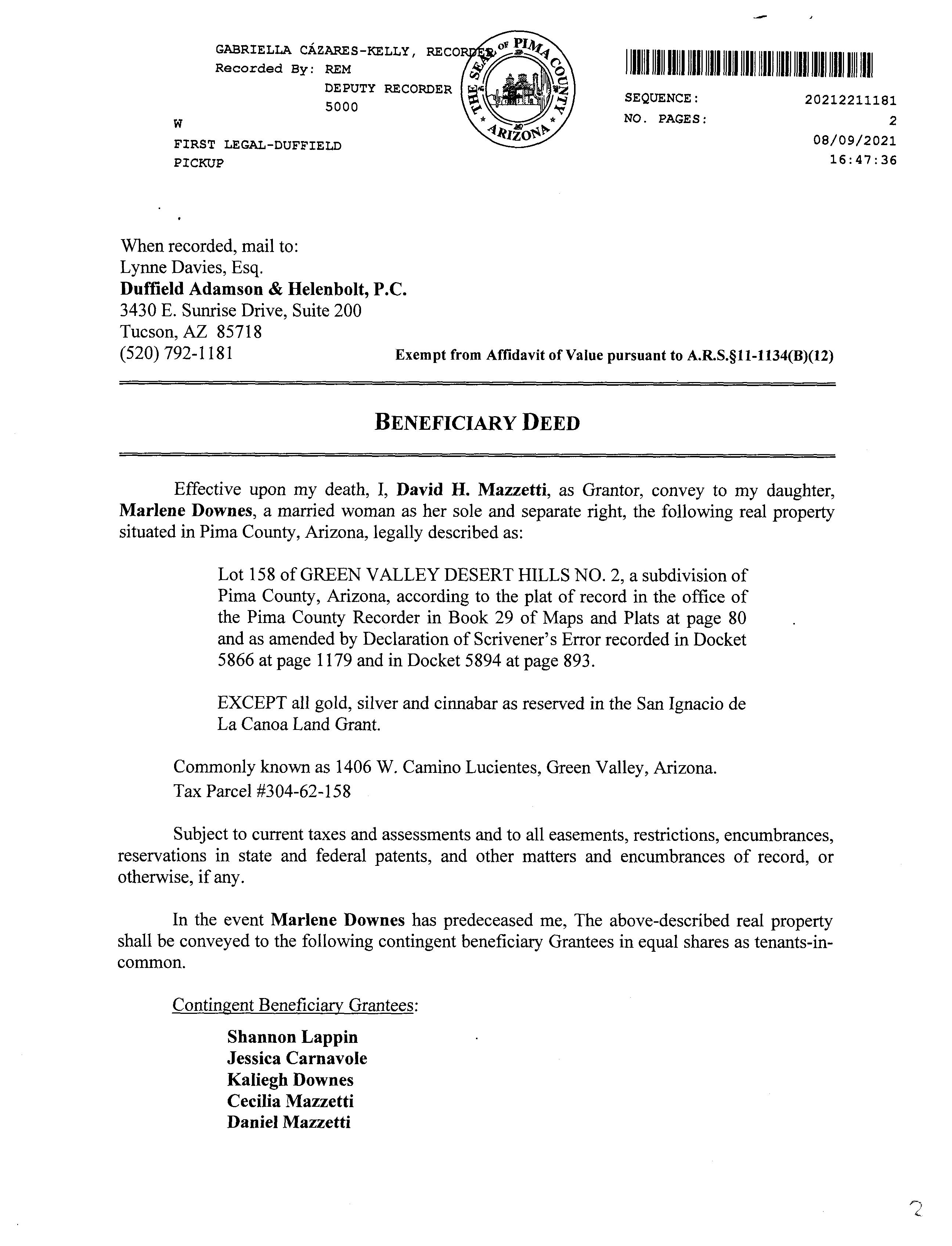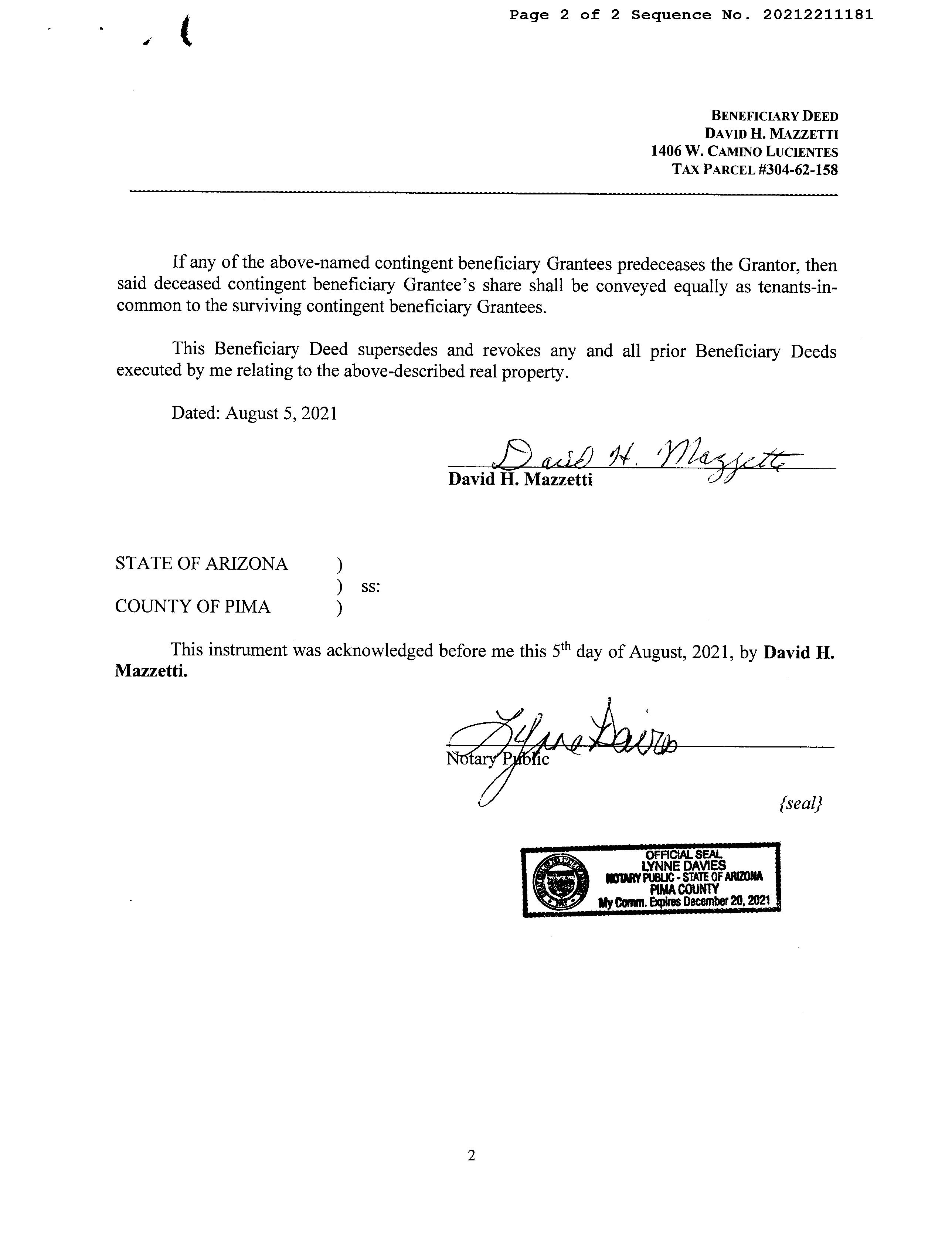 OWNER: MAZZETTI DAVID H AFFIDAVIT 2017 2280311 08/16/2017