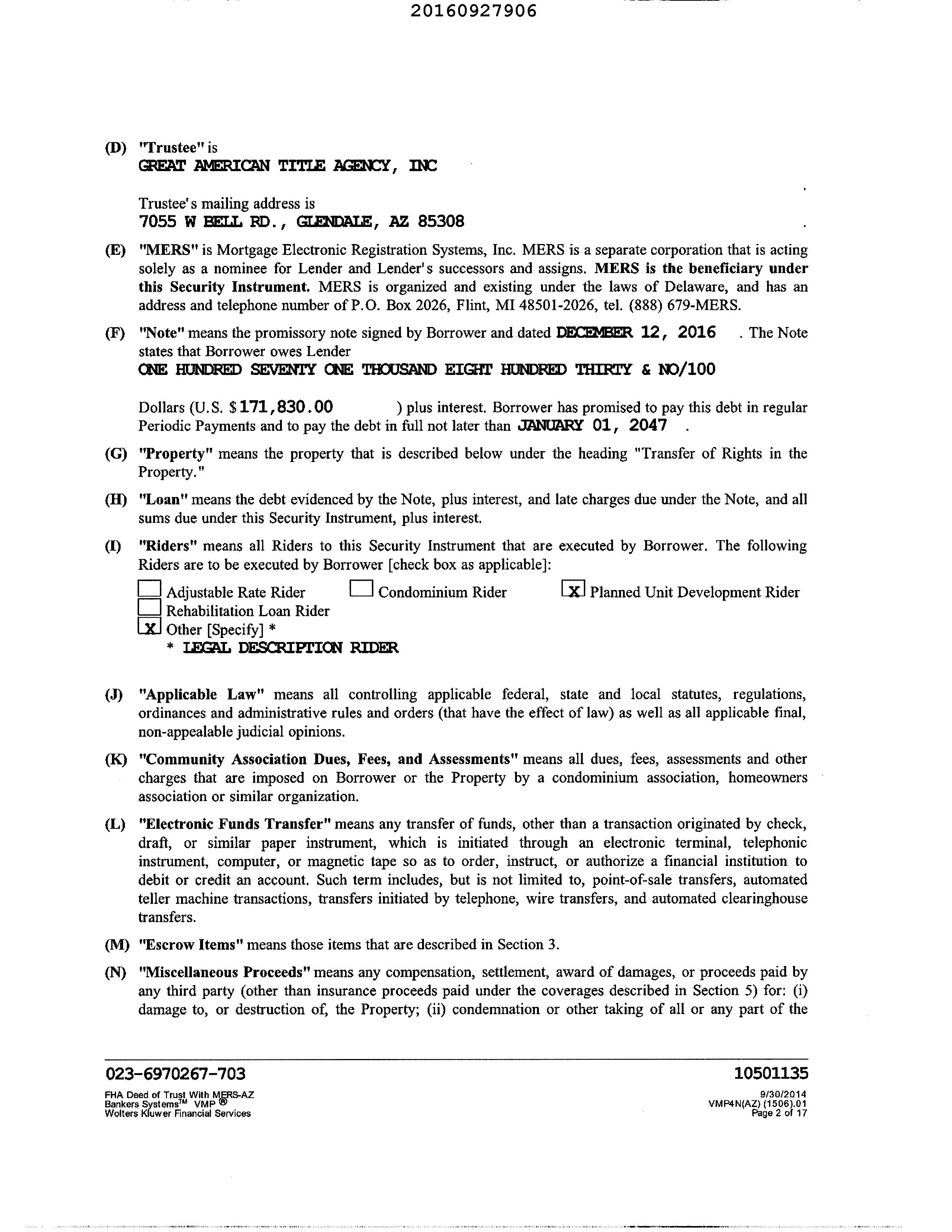 Recording/Sale Date : 12/16/2016 / 12/12/2016 1st Mtg Amount/Type : $171,830 / Fha