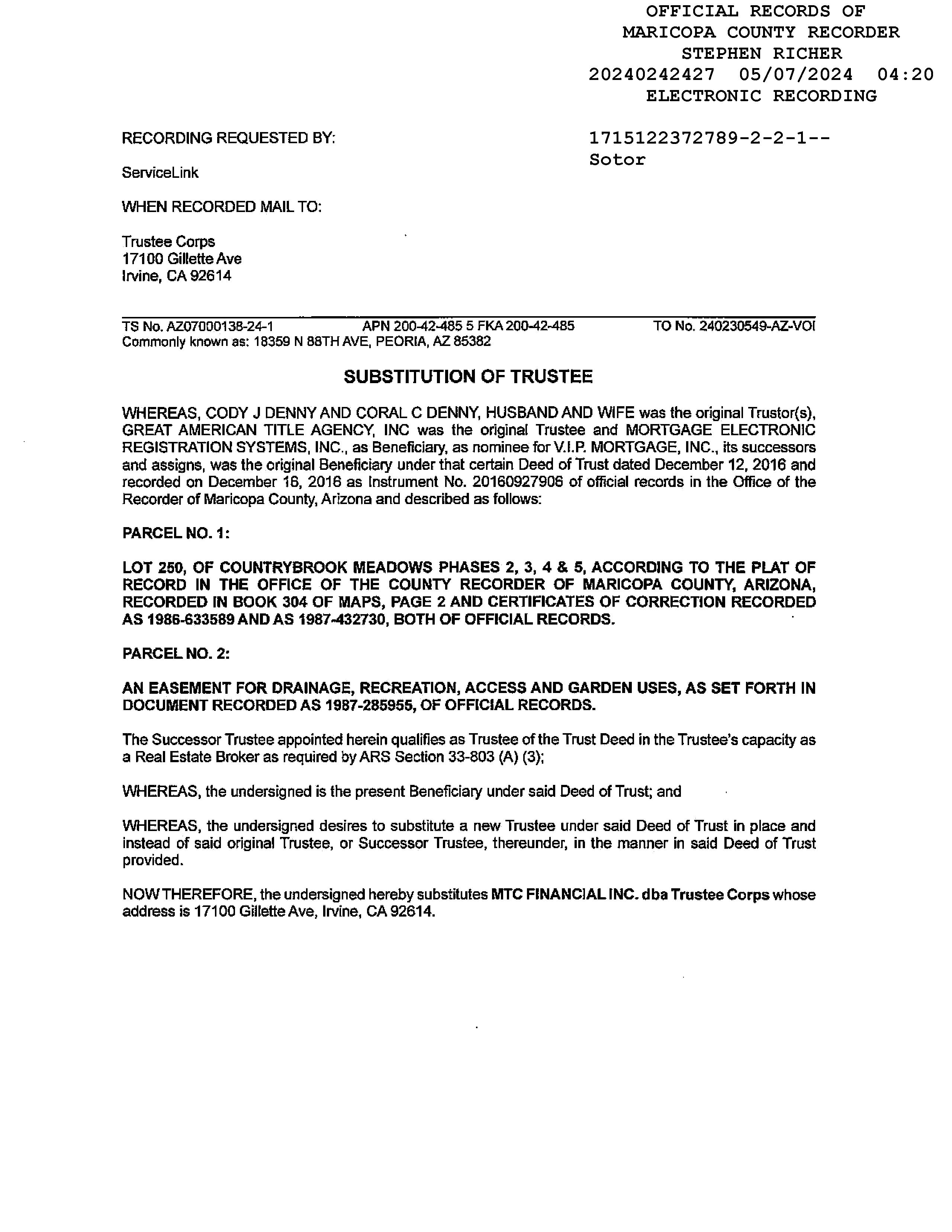 Mailing Address : 18359 N 88th Ave, Peoria AZ 85382-0827 R019
