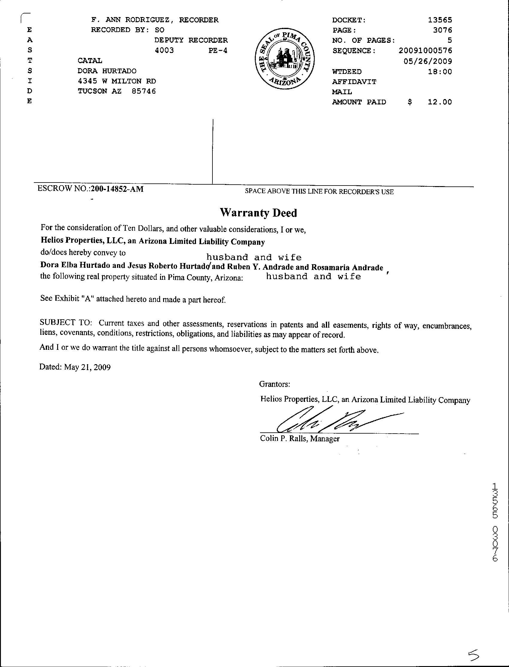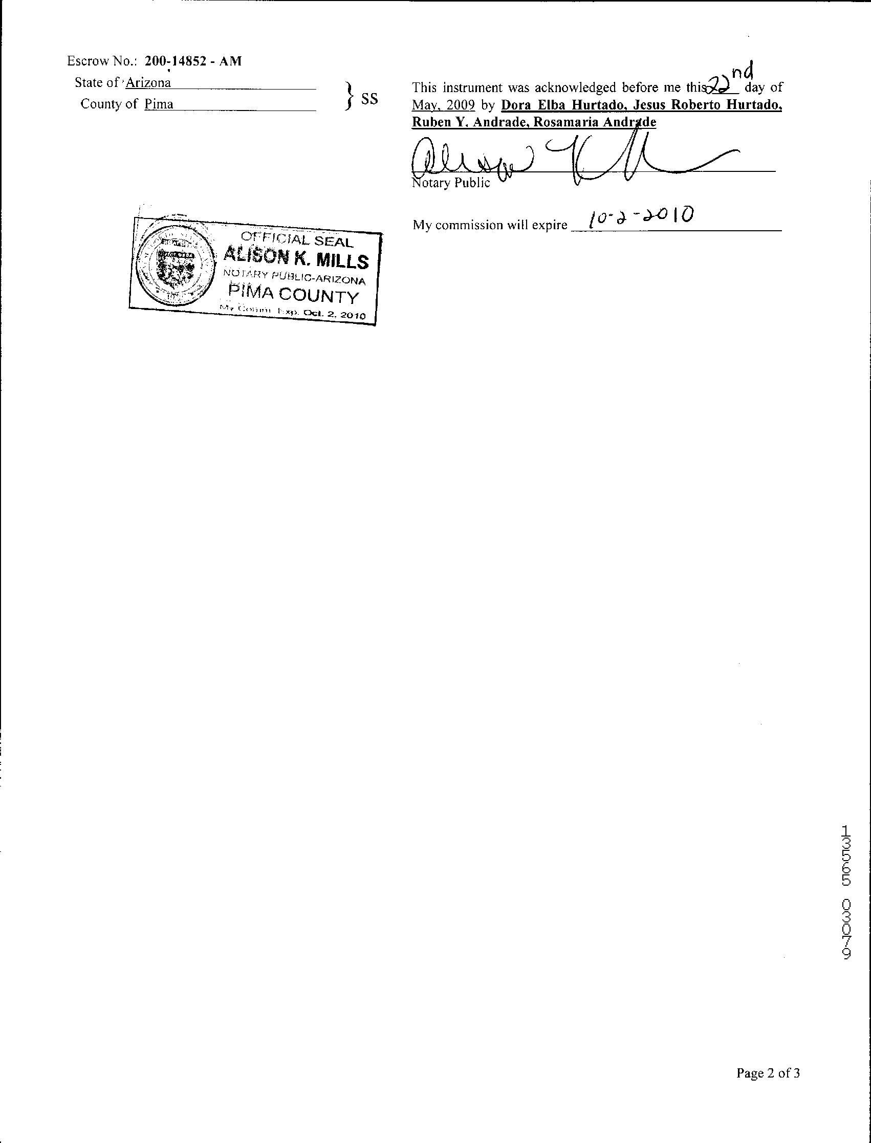 Owner Name: Hurtado Dora Elba /Jesus Roberto Andrade Ruben Y APN / Alternate APN: 137-06-1510 / Deed Type: Deed (reg)