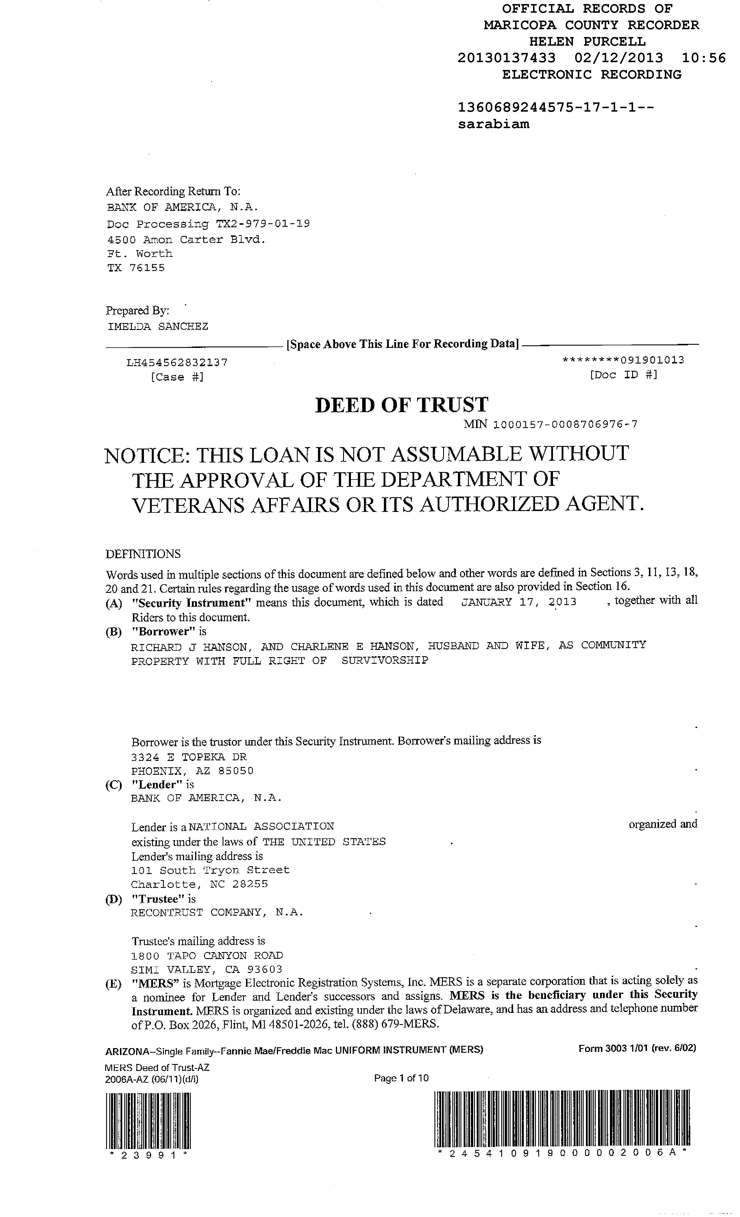 Mailing Address : 3324 E Topeka Dr, Phoenix AZ 85050-2682 C017