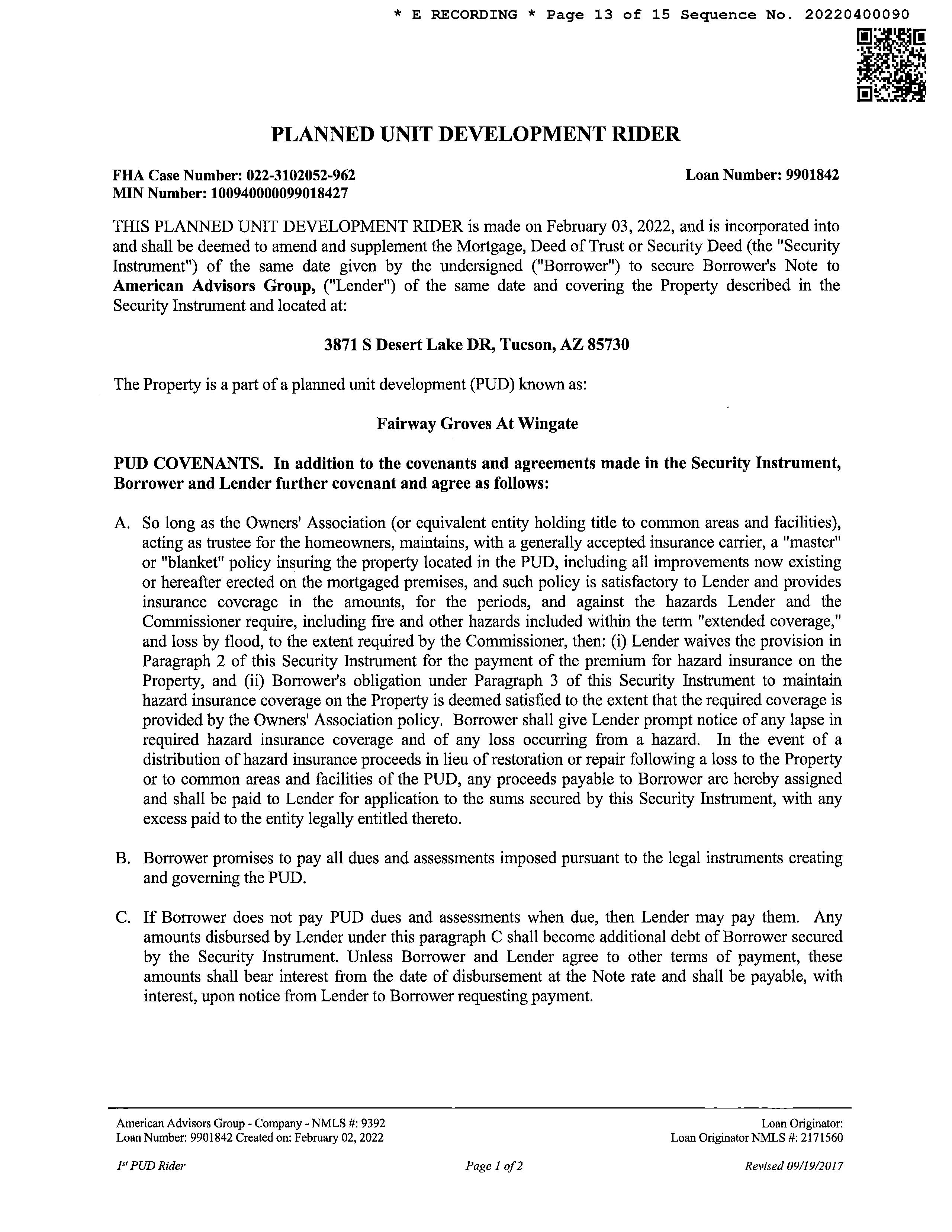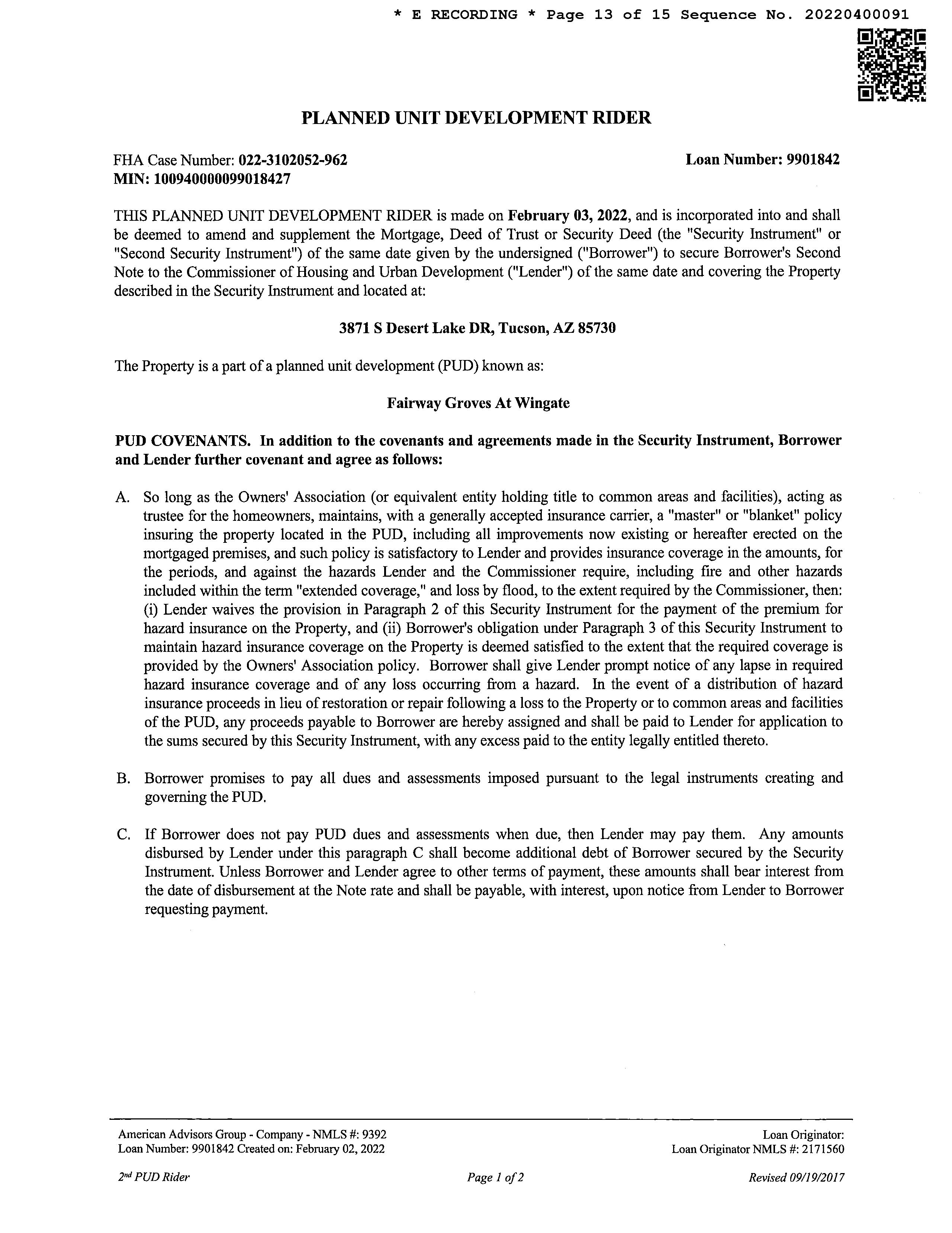Subject Property : 3871 S Desert Lake Dr Tucson AZ 85730
