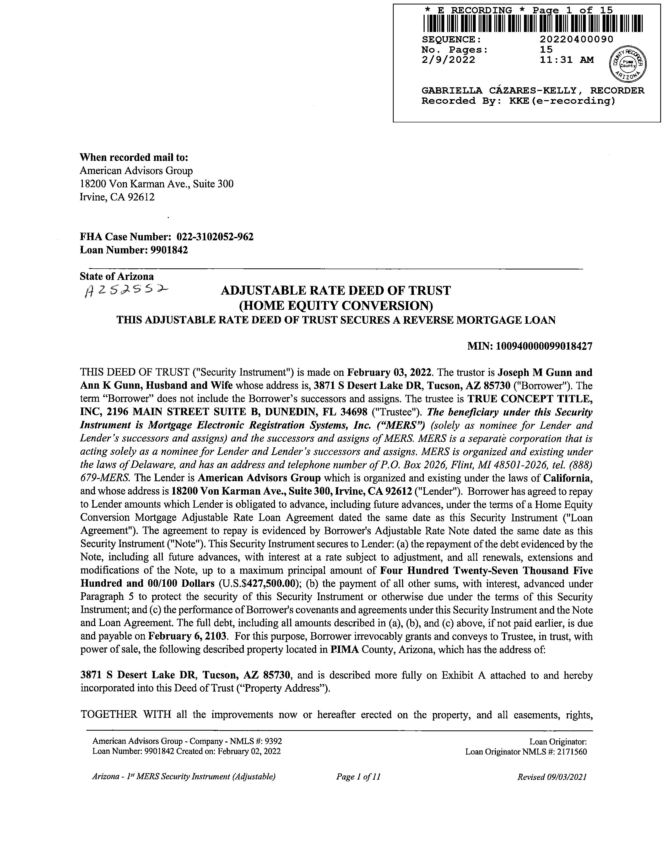 Owner Name : Gunn Joseph M / Gunn Ann K