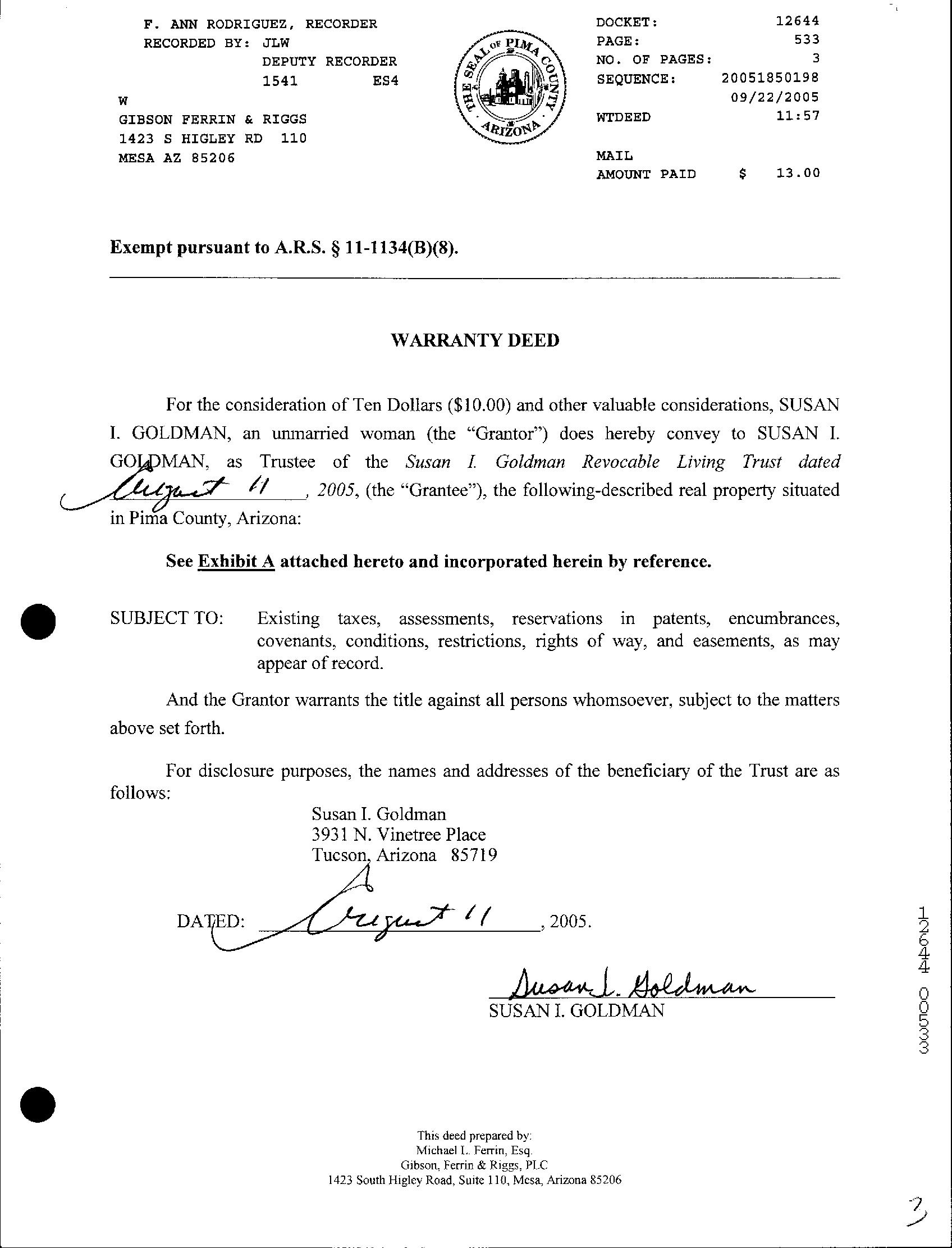 This report is not an insured product or service or a representation of the condition of title to real property. It is not an abstract, legal opinion, opinion of title, title insurance commitment or preliminary report, or any form of Title Insurance or Guaranty. This report is issued exclusively for the benefit of the Applicant therefor and may not be used or relied upon by any other person. This report may not be reproduced in any manner without First Americans prior written consent. First American does not represent or warrant that the information herein is complete or free from error, and the information herein is provided without any warranties of any kind, as-is, and with all faults. As a material part of the consideration given in exchange for the issuance of this report, recipient agrees that First Americans sole liability for any loss or damage caused by an error or omission due to inaccurate information or negligence in preparing this report shall be limited to the fee charged for the report. Recipient accepts this report with this limitation and agrees that First American would not have issued this report but for the limitation of liability described above. First American makes no representation or warranty as to the legality or propriety of recipient's use of the information herein.