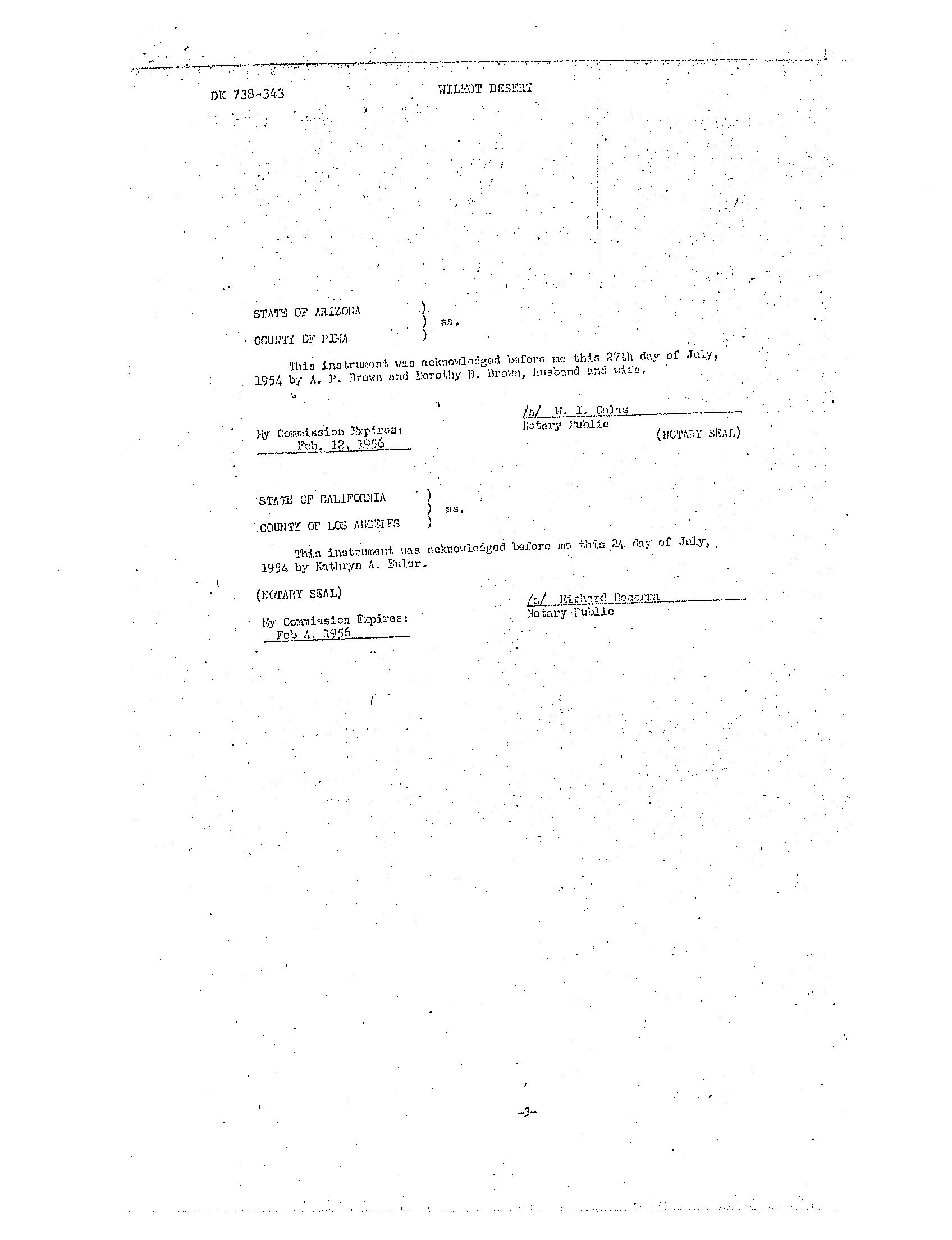 Subdivision : Wilmot Desert Estates