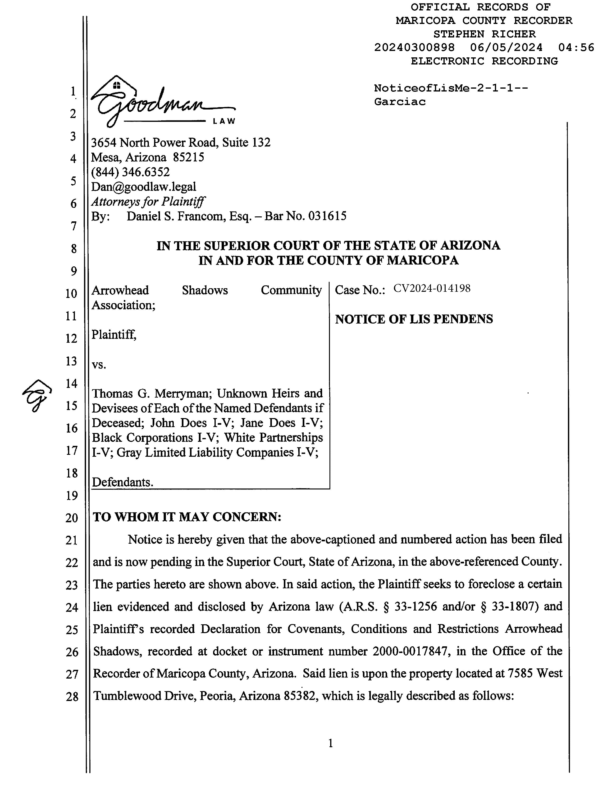 SITUS: 7585 W TUMBLEWOOD DR PEORIA