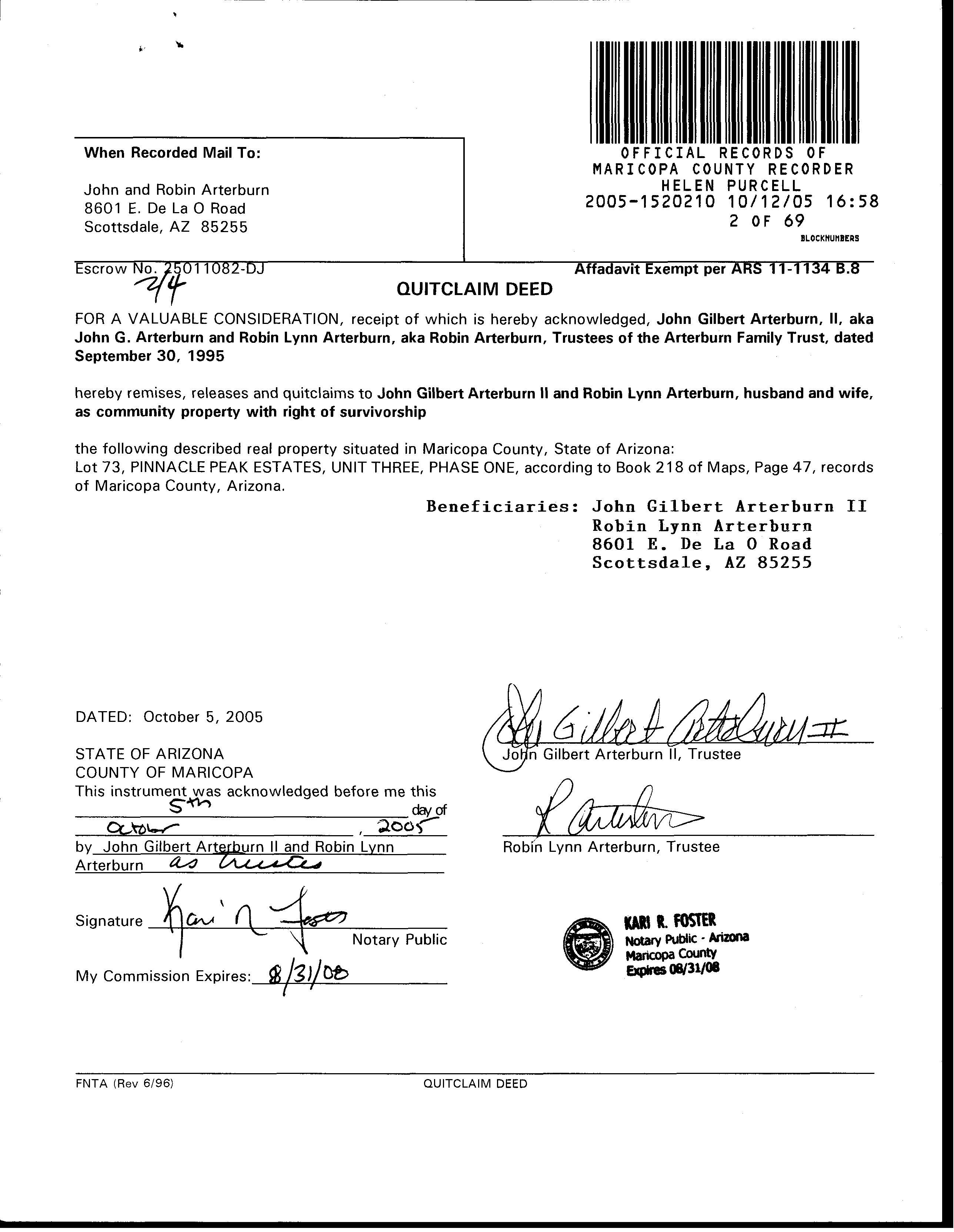 Legal Description : Lot 73 Pinnacle Peak Estates Unit 3 Phase 1 & Phase 2 Mc R 218-47