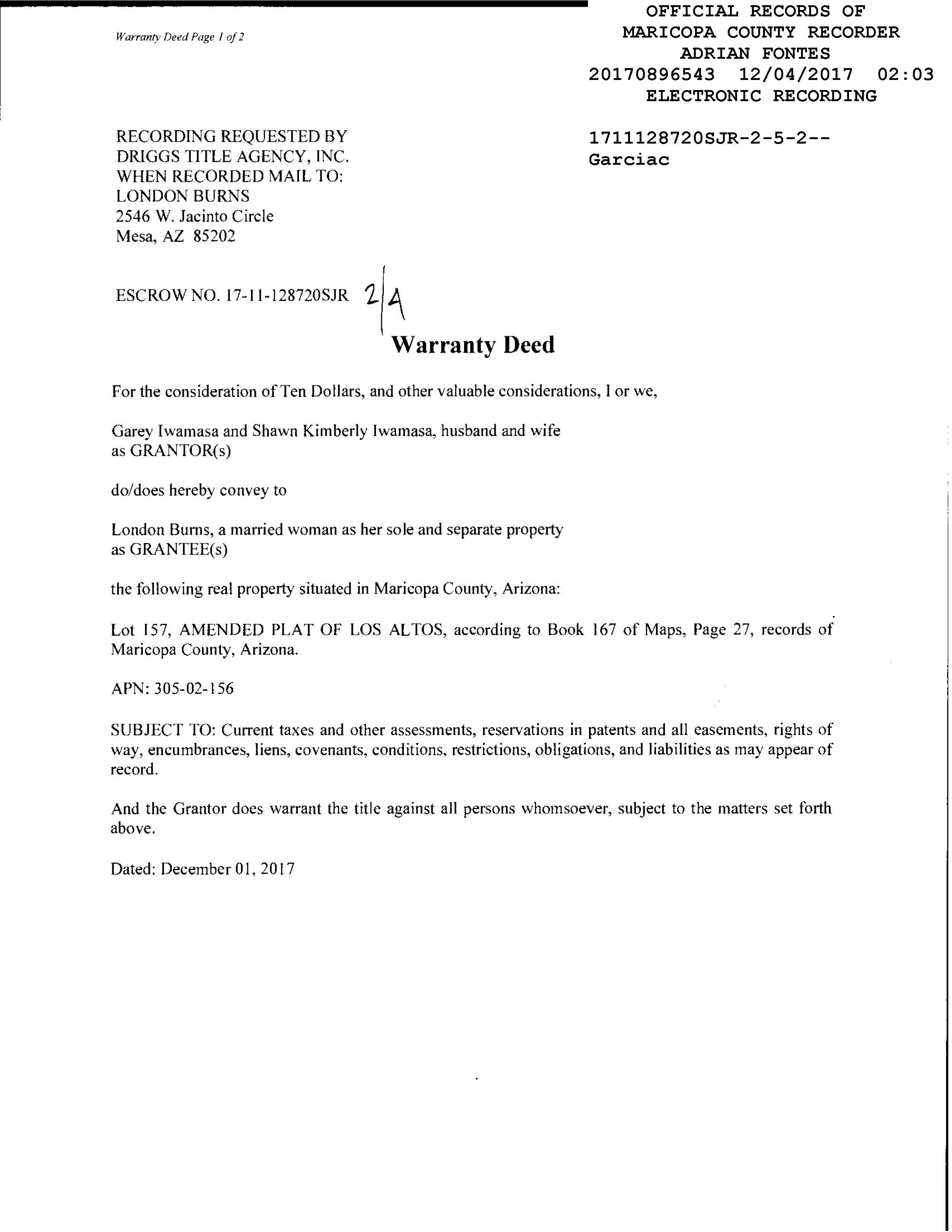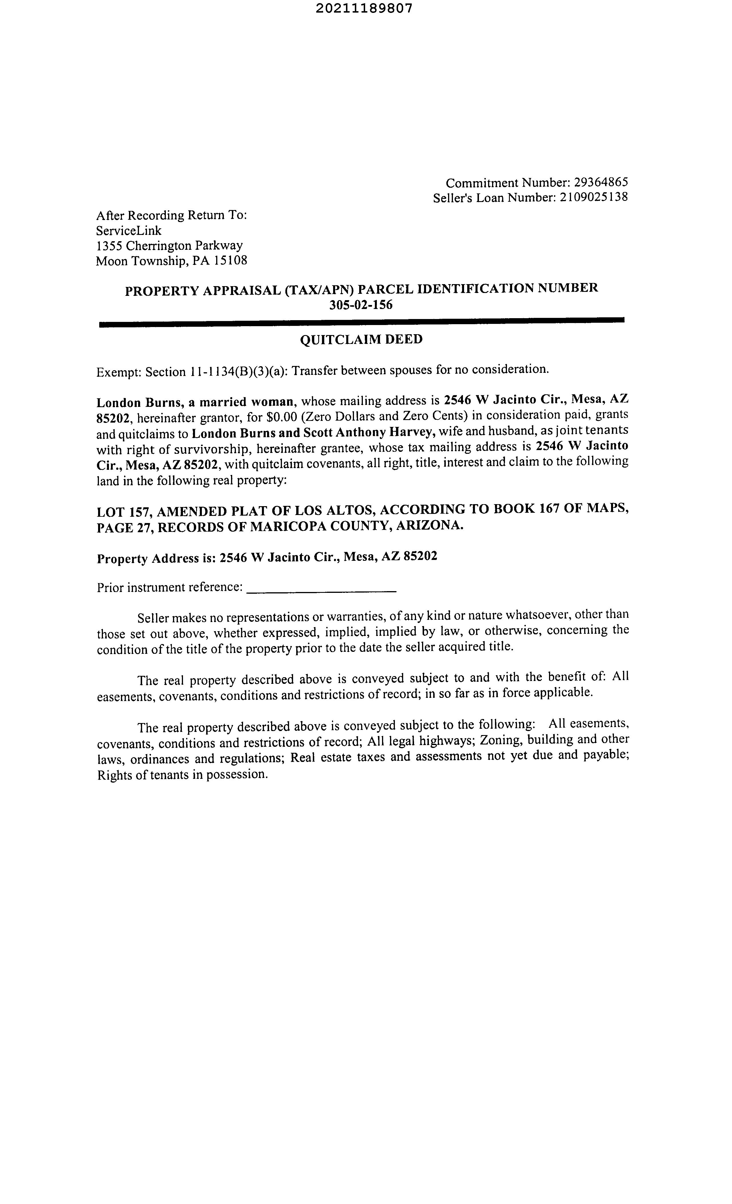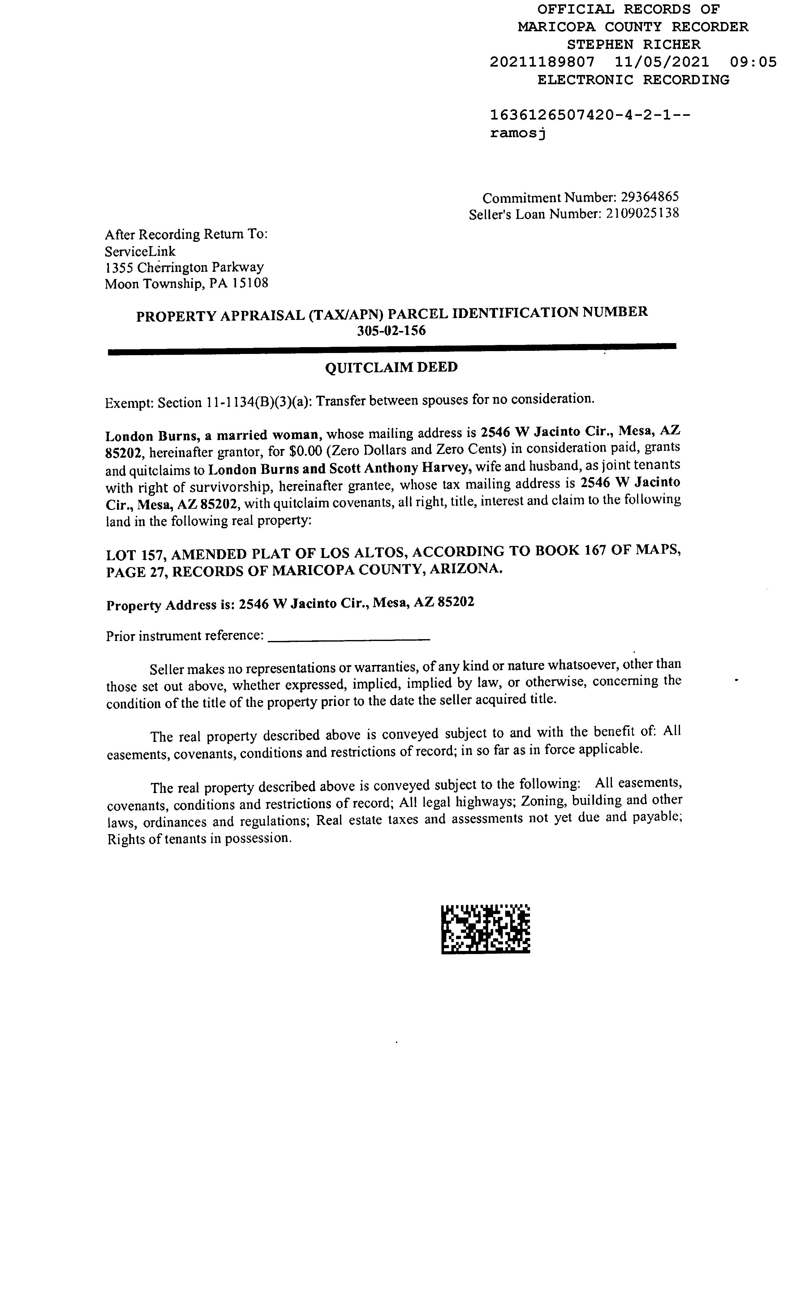 Owner Name: Burns London /Harvey Scott Anthony APN / Alternate APN: 305-02-156 / Deed Type: Warranty Deed