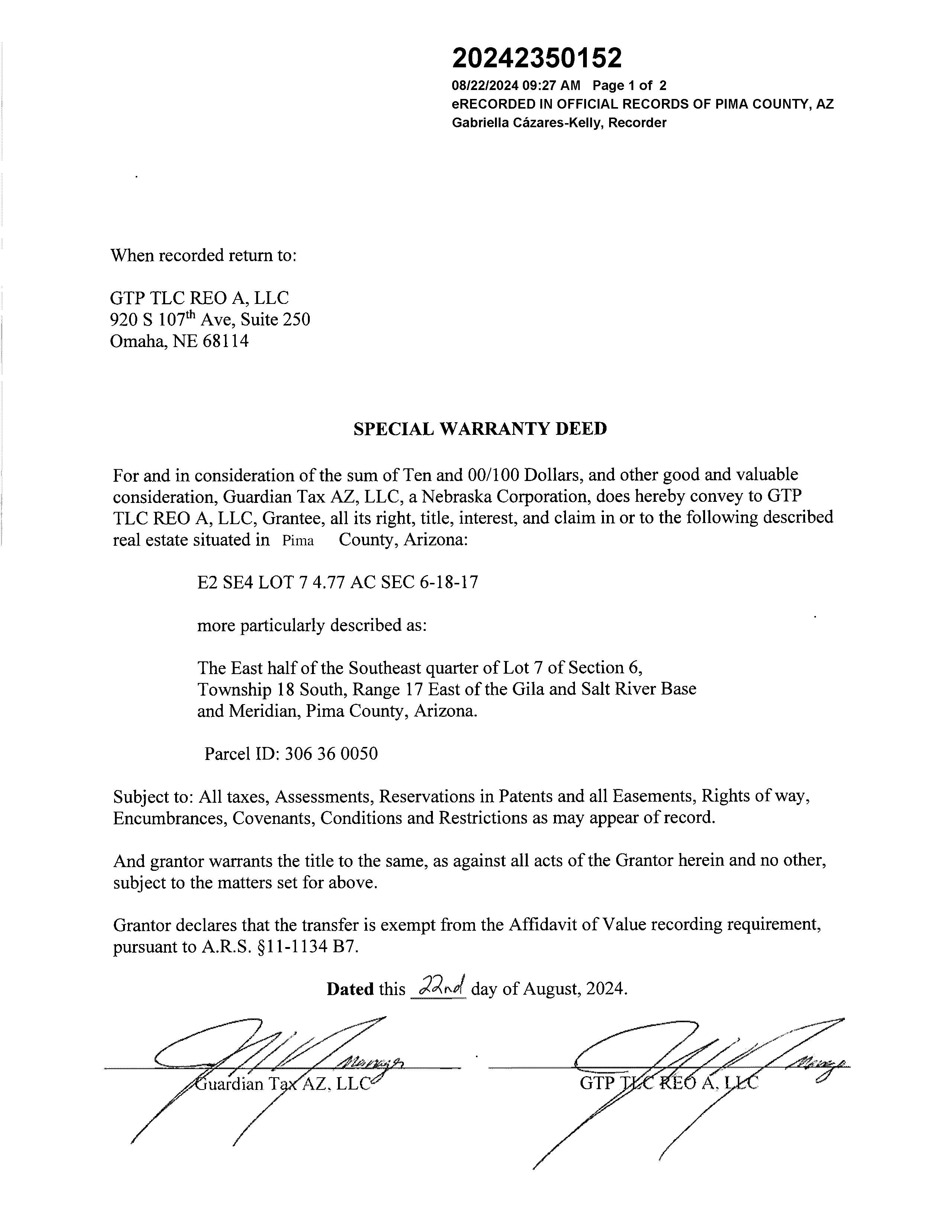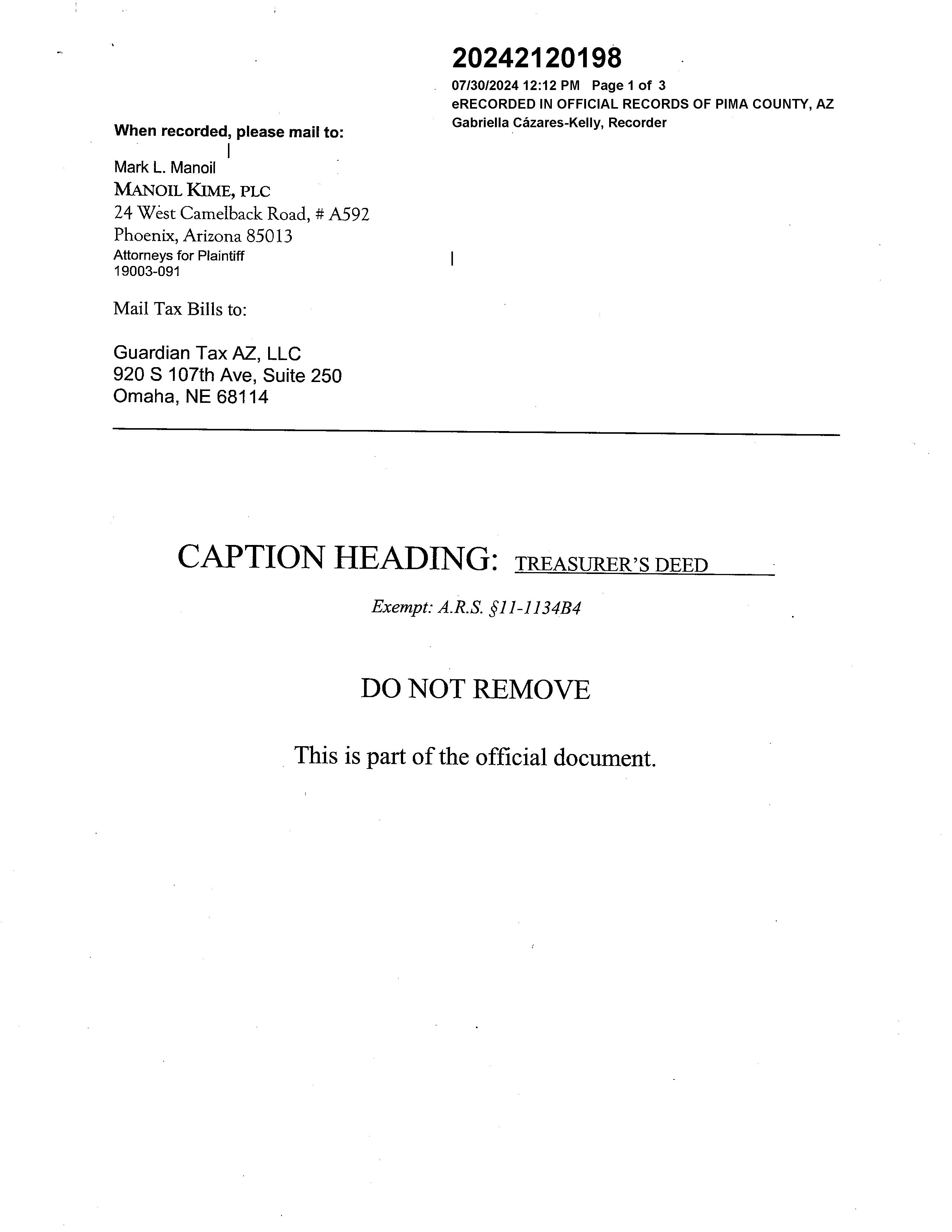 OWNER: GUARDIAN TAX AZ LLC 2024 2120198 07/30/2024