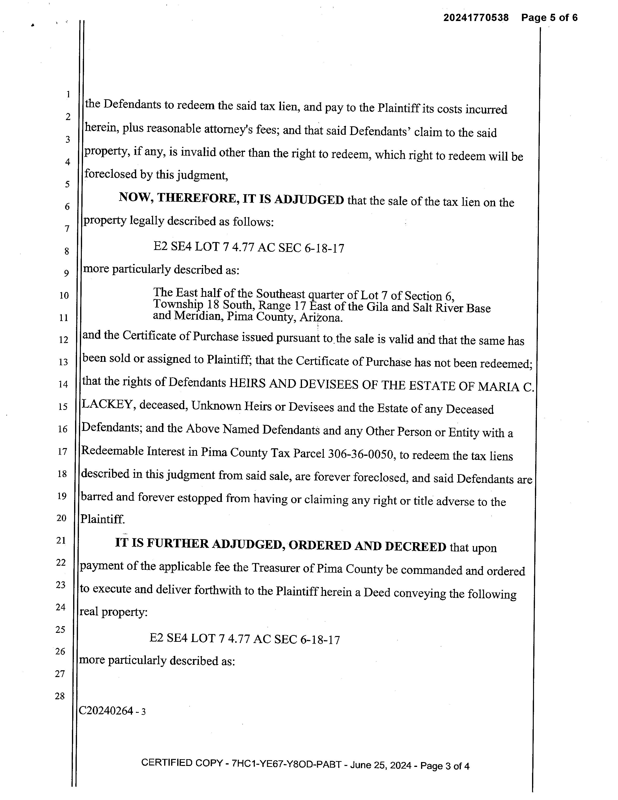 Legal Description : E2 Se4 Lot 7 4.77 Ac Sec 6-18-17