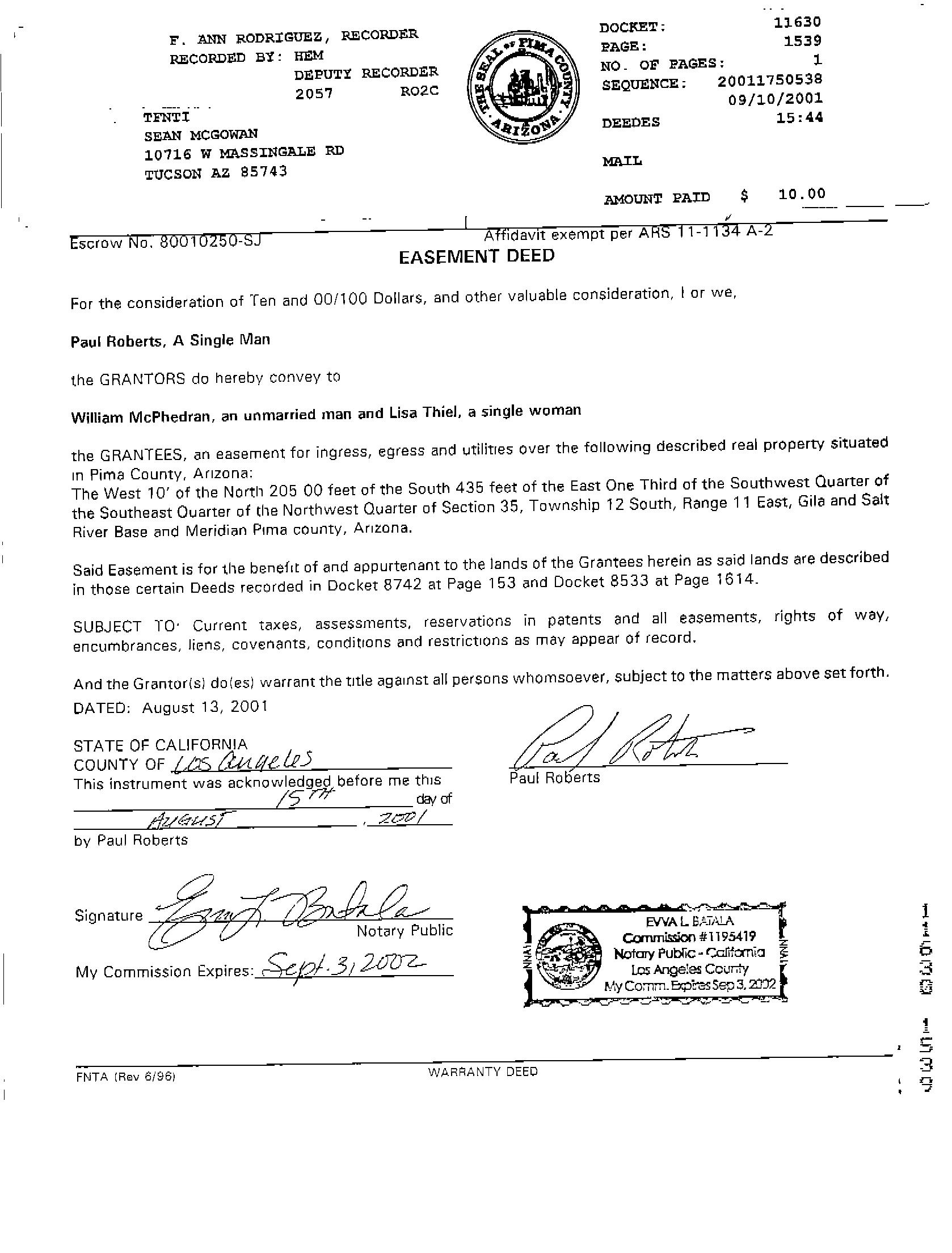 Mailing Address : 1451 N San Joaquin Rd, Tucson AZ 85743-9151 R009