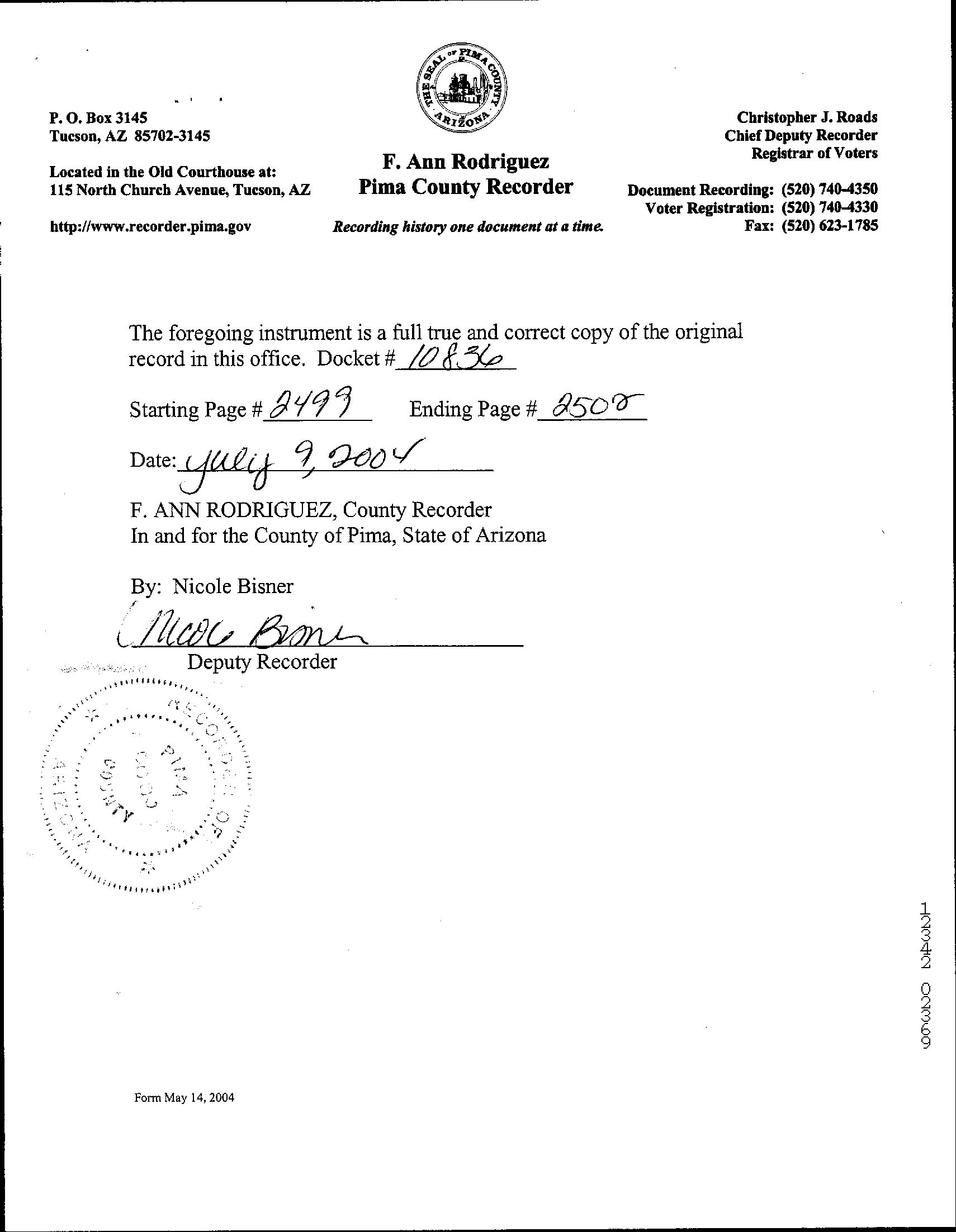 Mailing Address : 1620 W Chimayo Pl, Tucson AZ 85704-2181 C010