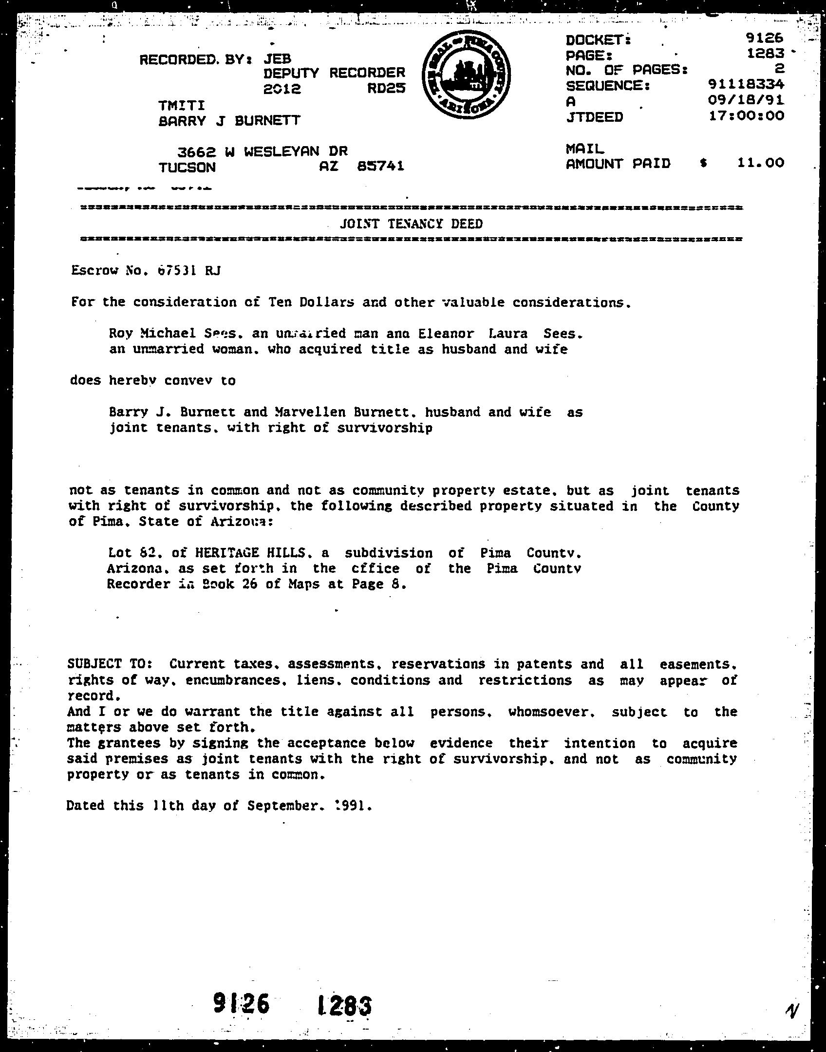 OWNER: BURNETT BARRY J & MARYELLEN JT/RS