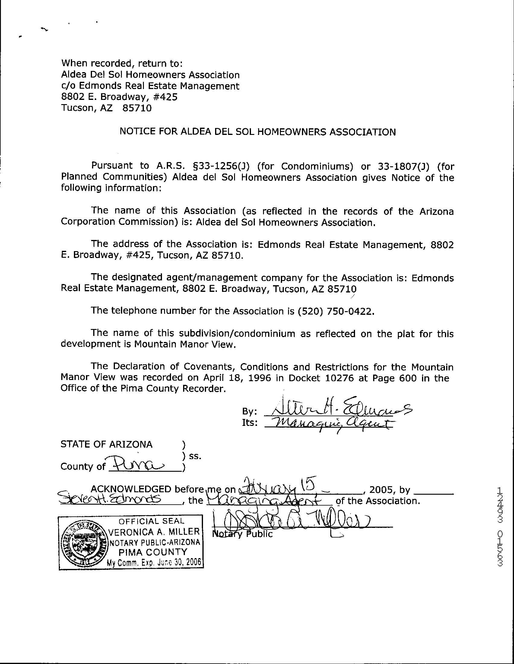 Subdivision : Mountain Manor View