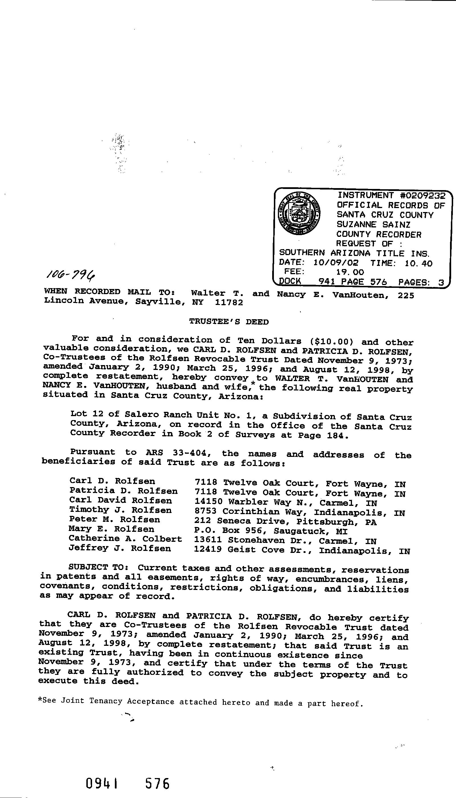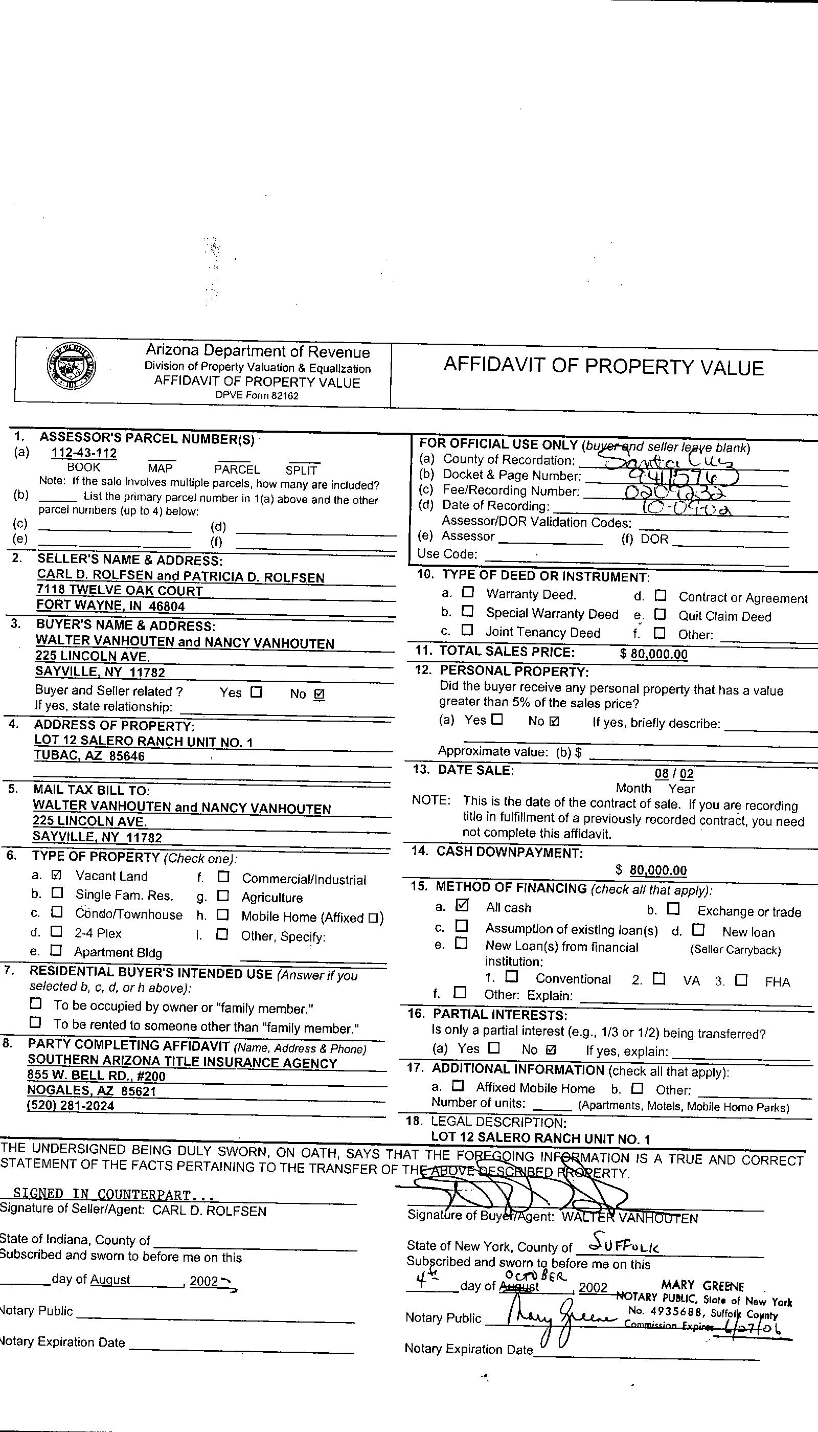 Owner Name : Vanhouten Walter / Vanhouten Nancy