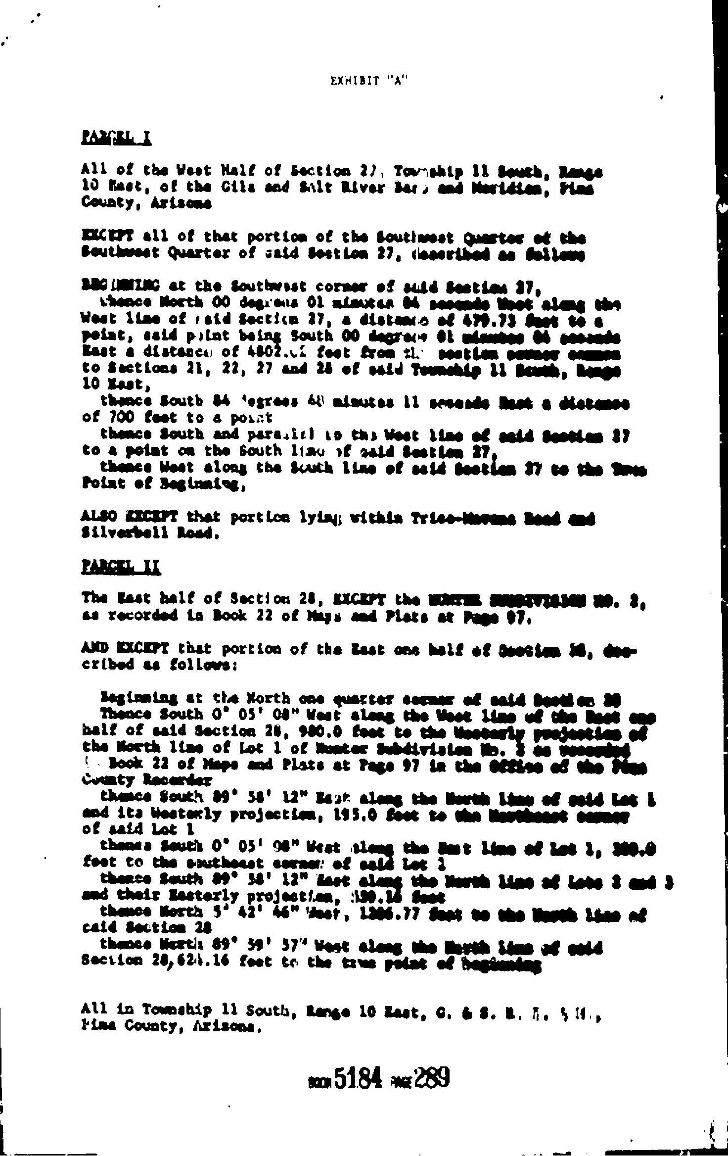 County, Arizona: the property fros the United States of America, recorded in Book 175 of Deeds at pass 168.