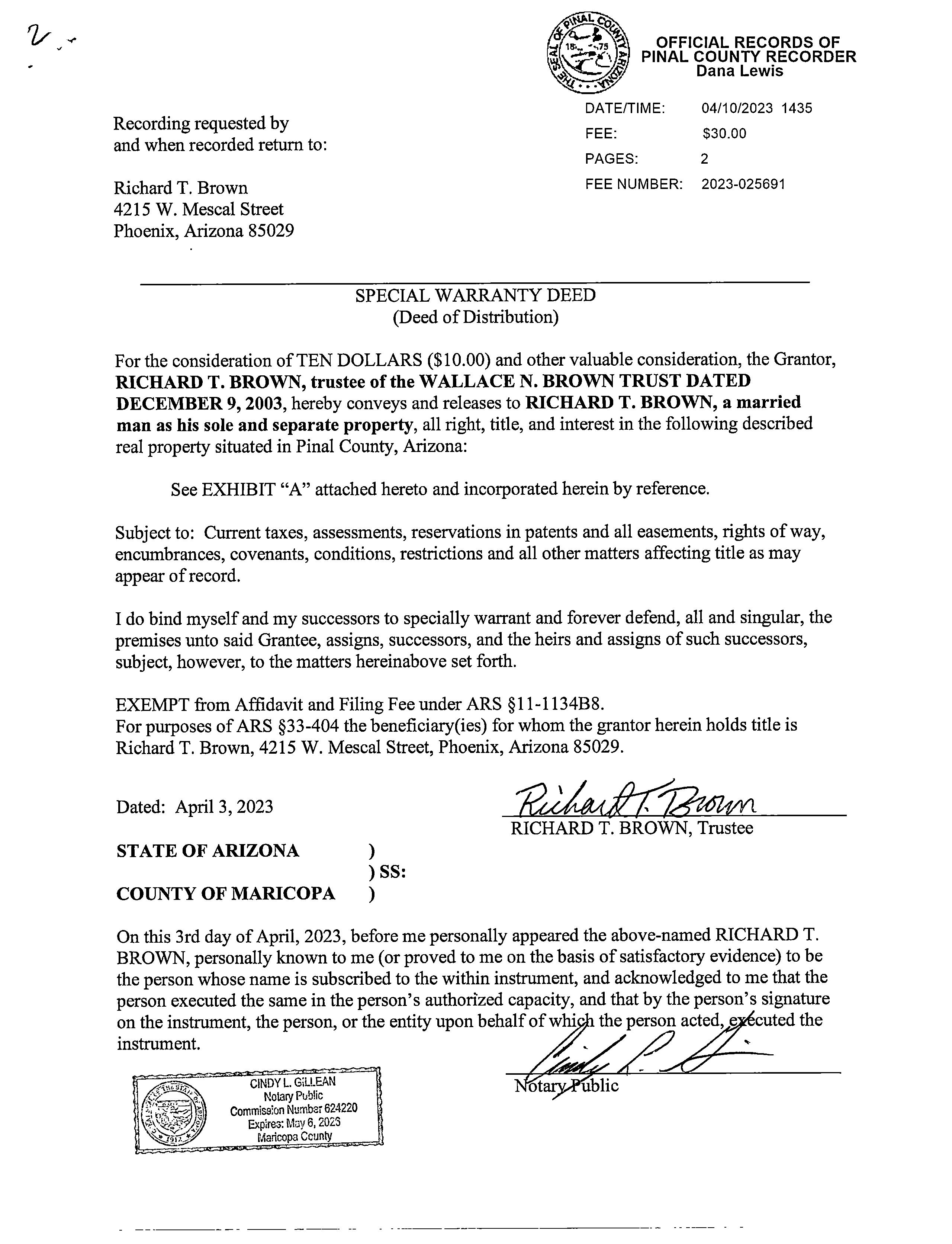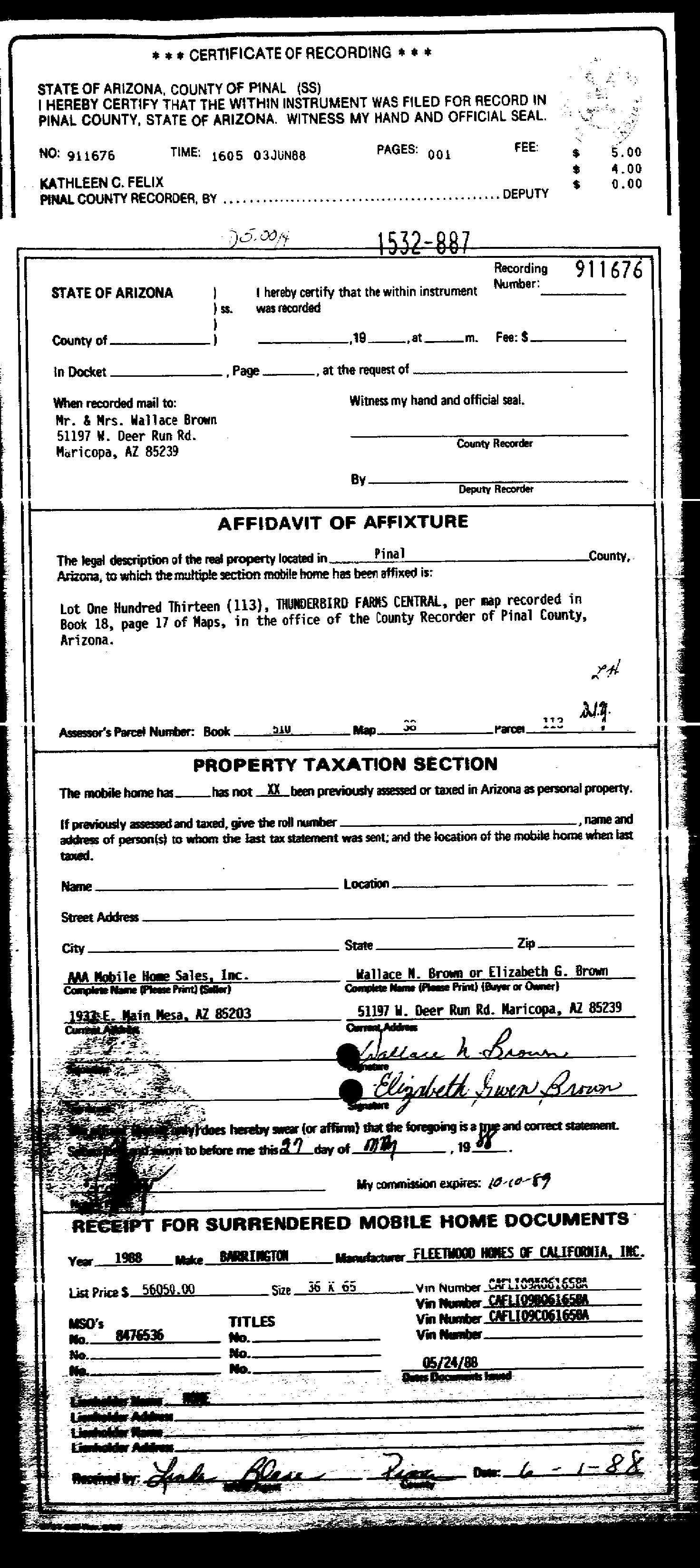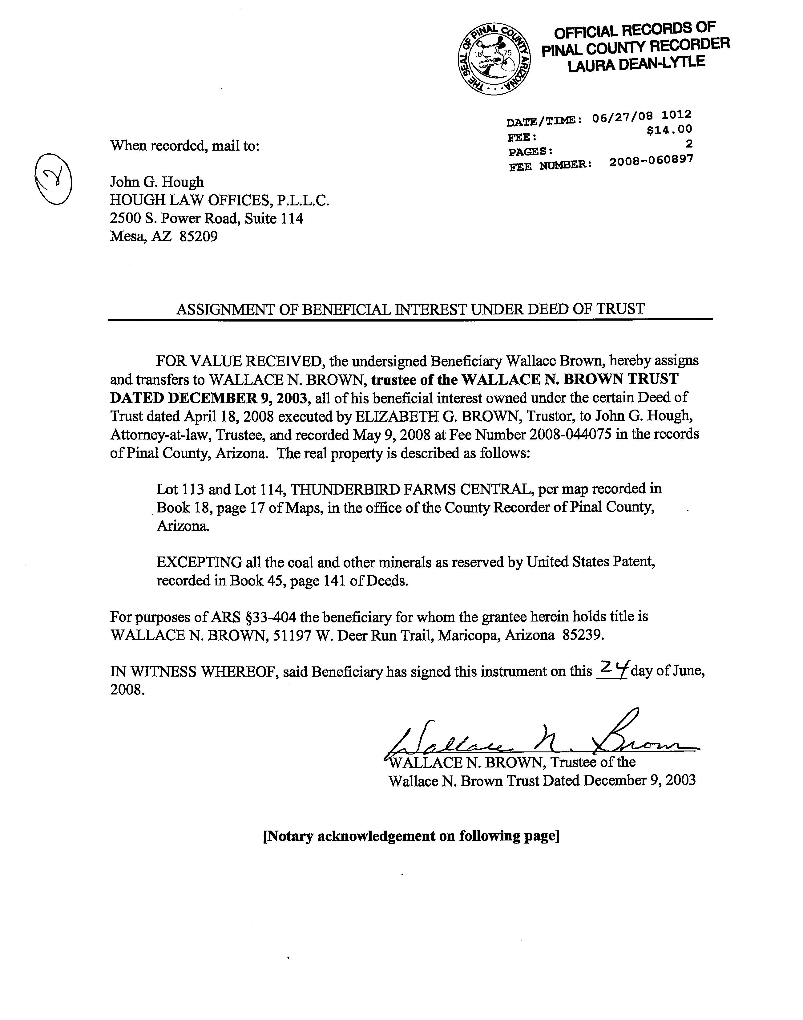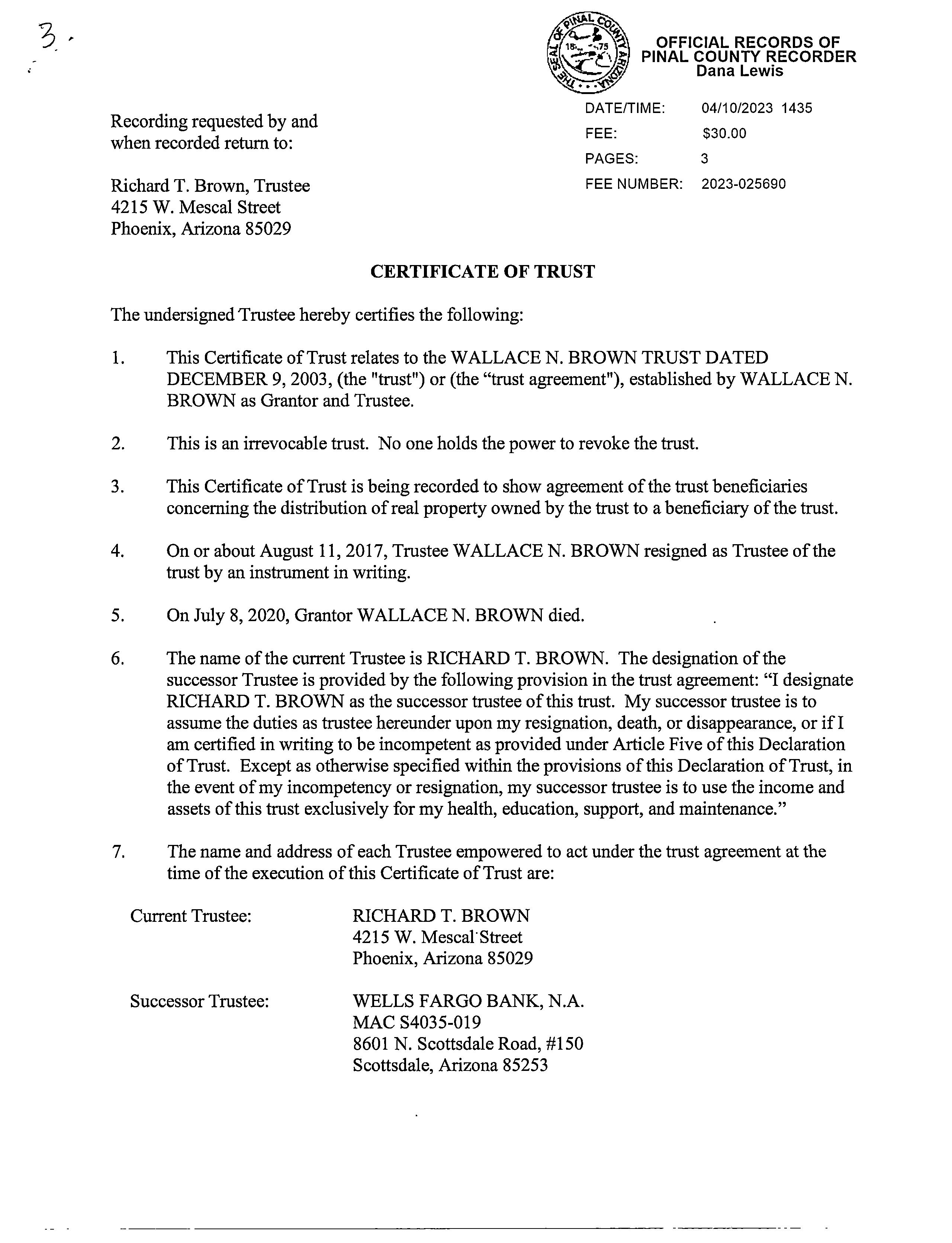 Owner Name : Brown Terry & Rhonda Trust Recording Date : 12/16/1997