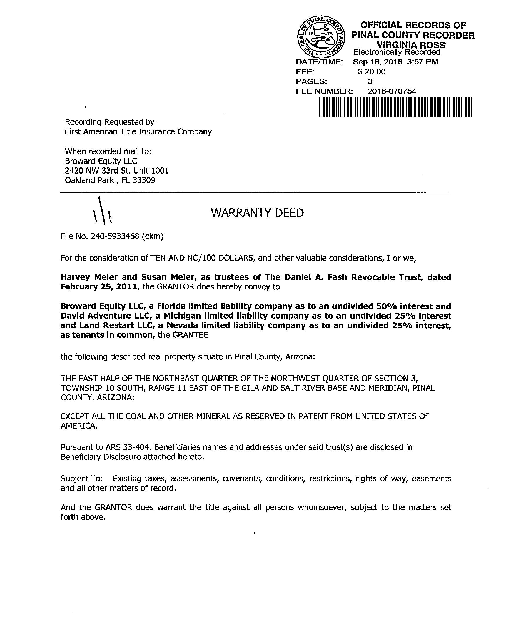 This report is not an insured product or service or a representation of the condition of title to real property. It is not an abstract, legal opinion, opinion of title, title insurance commitment or preliminary report, or any form of Title Insurance or Guaranty. This report is issued exclusively for the benefit of the Applicant therefor and may not be used or relied upon by any other person. This report may not be reproduced in any manner without First Americans prior written consent. First American does not represent or warrant that the information herein is complete or free from error, and the information herein is provided without any warranties of any kind, as-is, and with all faults. As a material part of the consideration given in exchange for the issuance of this report, recipient agrees that First Americans sole liability for any loss or damage caused by an error or omission due to inaccurate information or negligence in preparing this report shall be limited to the fee charged for the report. Recipient accepts this report with this limitation and agrees that First American would not have issued this report but for the limitation of liability described above. First American makes no representation or warranty as to the legality or propriety of recipient's use of the information herein.