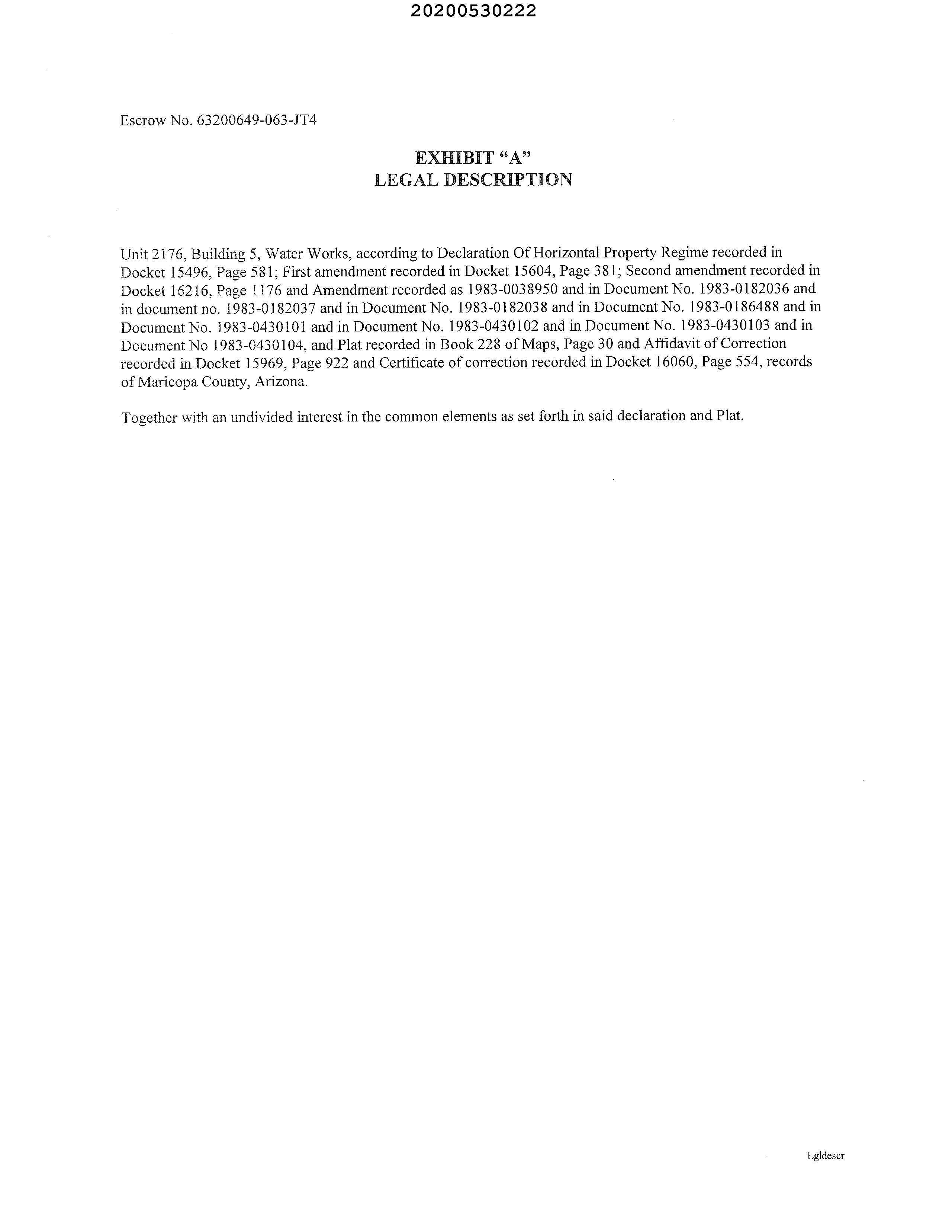 Legal Description : Lot 2176 Water Works Mcr 228-30 Unit 2176 Tog W/an Undiv . 004775% Int In The Common Elements