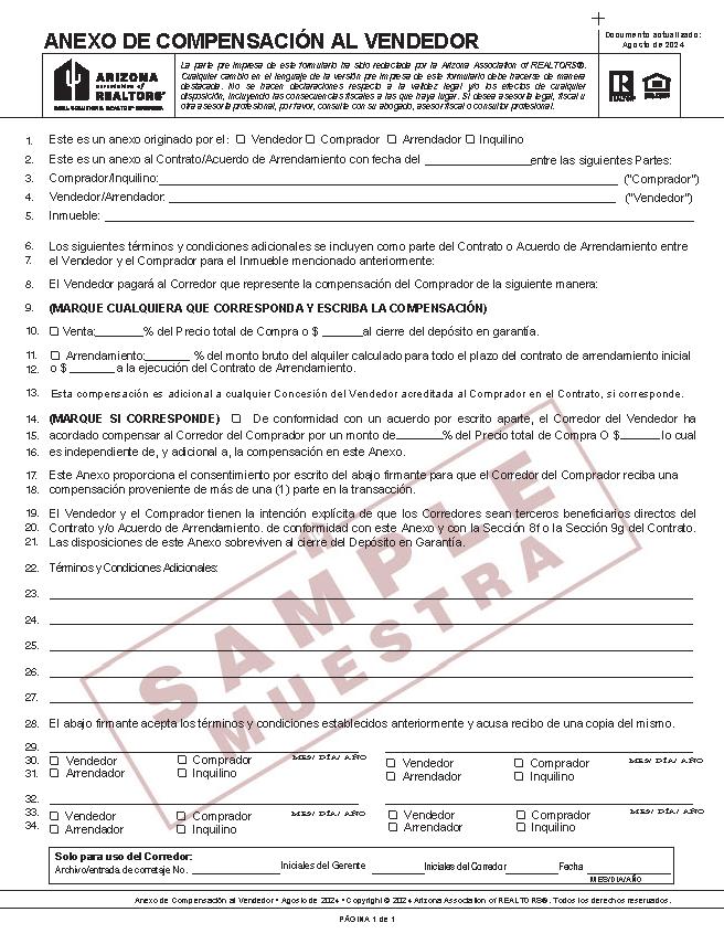 La partepre-impresa deestaforma fue redactada porlaAsociaci6ndeArizona deREALTORS® .