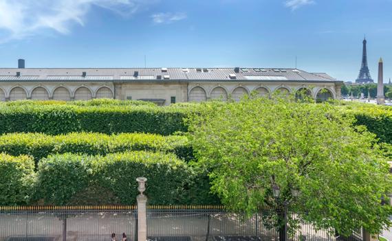 Dans un immeuble Directoire de 1810, au 3e étage avec asceneur, un superbe appartement de réception d’une surface de 201 m2 loi Carrez - 208 m2 au sol bénéficiant d’une vue imprenable sur le jardin des Tuileries et jouissant de magnifiques volumes grâce à une hauteur-sous-plafond de 3,40m.
