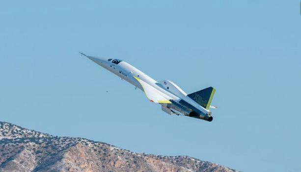 under the fl ight path of the XB-1 test plane on Jan. 28 confirmed that sonic booms did not reach the ground during the plane’s repeated periods of flights above Mach 1. That’s where a plane typically sets off a loud rumble as it flies faster than sound waves.