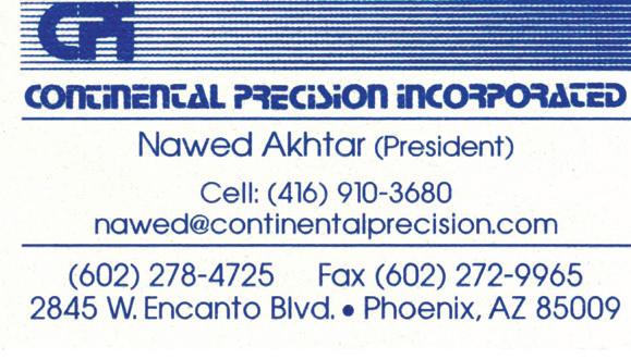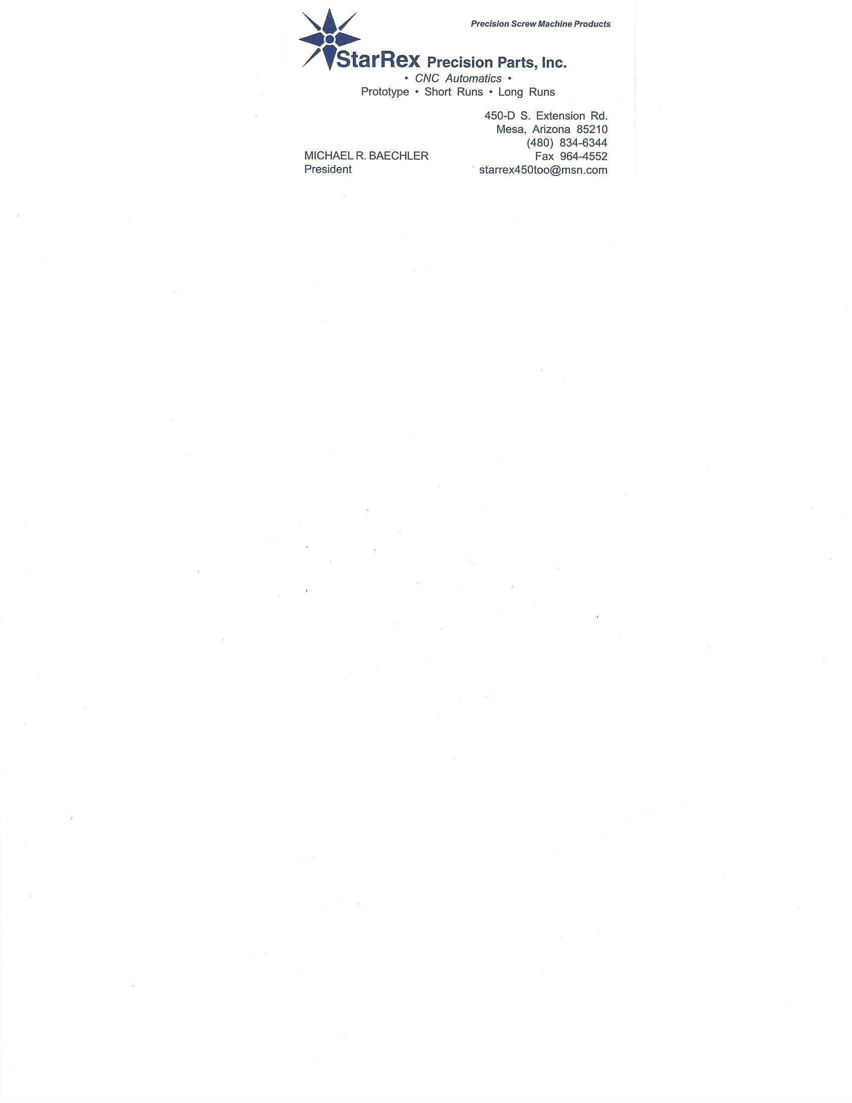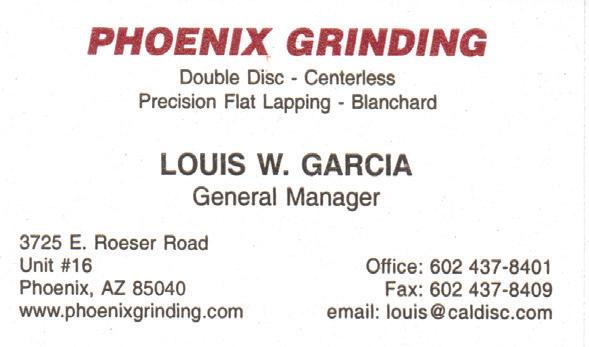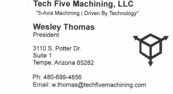 Paragon Machining & Design 480-635-9163 Pro-Tek 928-759-9494 Western Sintering ______ 509-375-3096