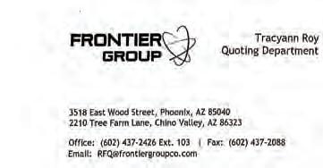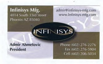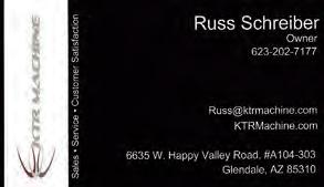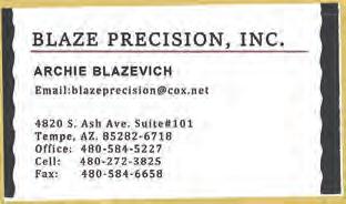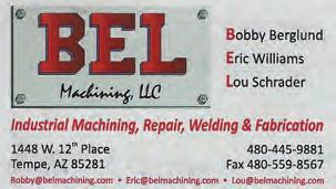 Wire Springs ● Flat Springs ● Wire Products www.springworksutah.com sales@springworksutah.com (801) 298-0113 2261 S. 1560 W. ● Woods Cross ● UT 84087 INFO@ATECENGAZ.COM ( 480 ) 569 - 3337 JOHN CORNELL SURPRISE, AZ MACHINING | WELDING | FABRICATION | ISO 9001 35+ years of quality & service! 1138 W Watkins St, Phoenix, AZ 85007 623-582-6544 - sales@rmgmachining.com www.rmgmachining.com