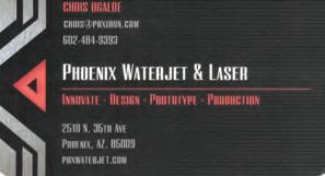 Cutting Capability Up” to 6’x12’ The Ugalde Family PHOENIX WATERJET & LASER 602-484-9393 WWW.PHXWATERJET.COM 2518 North 35th Ave, Phoenix, AZ 85009 I N N O V A T E D E S I G N P R OTOTY P E • P R O DUCTI O N P H O E N i X E S T 2 0 0 7