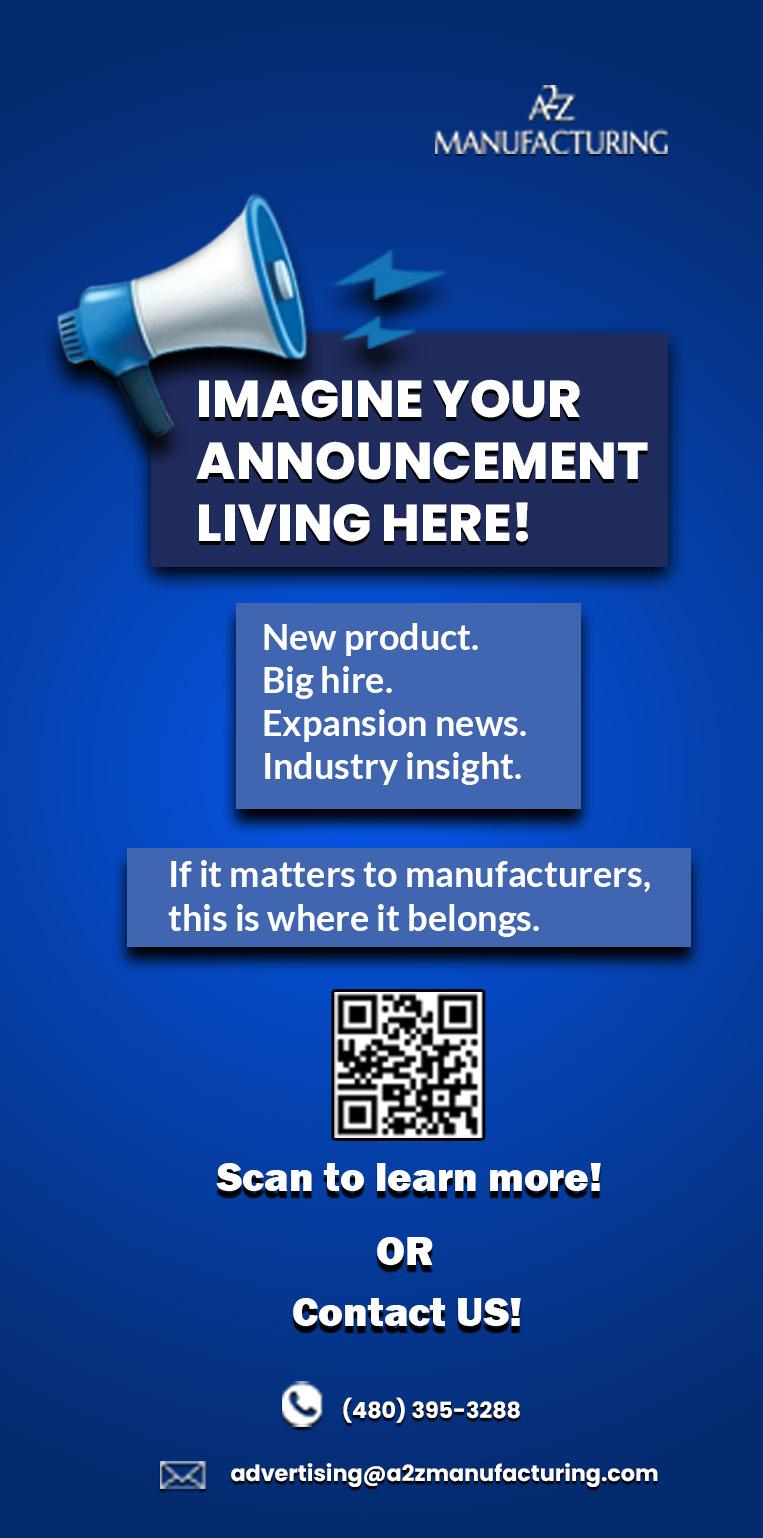 Advertising Rates, deadlines and mechanical requirements furnished upon request or you can go to A2ZMANUFACTURING.com.