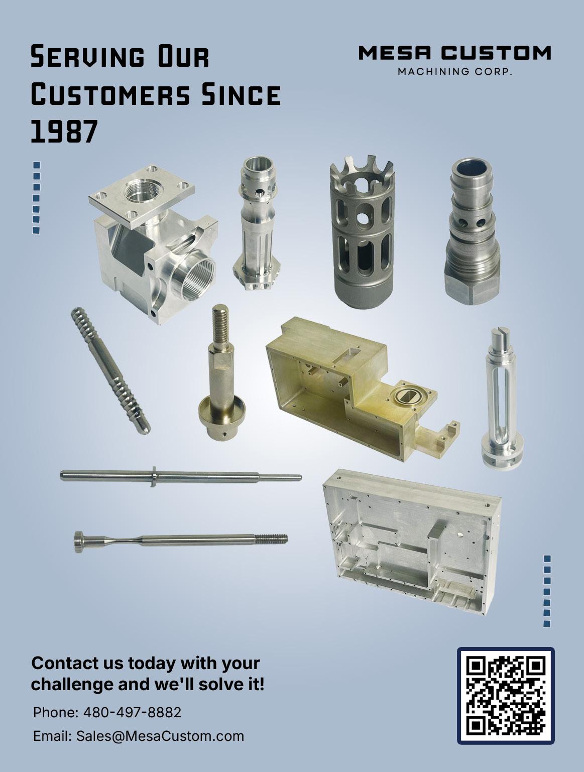 Mesa Custom Machining Corp. is located in Gilbert, Arizona. We have been proud to produce quality precision machined parts since 1987, and welcome the opportunity to solve your machining challenges.