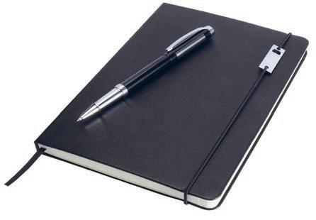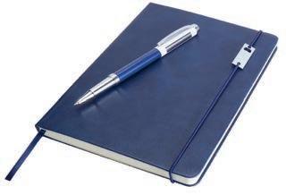 Legato Elegance sett med A5 notatbok og rollerpenn | Lekkert sett med en A5 notatbok med hardt omslag samt rollerpenn. Notatbok: 80 linjerte kremfargede 80 g/m2 ark. Penn: Skrivelengde 400 meter, spiss 0,7 mm, blått blekk (ekstra refill i svart følger med).