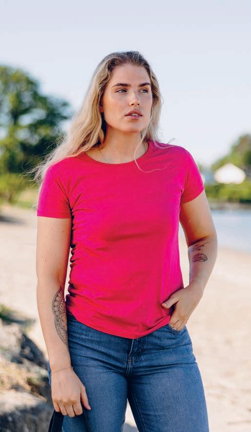 Organic T-shirt GOTS (D) | T-skjorte til dame i økologisk bomull. Kommer i de mest solgte fargene, og er en fin match til vår unisex t-skjorte. Single jerseystrikket. Forsterket nakkebånd, 3- lags halsrib og skuldertape. Doble sømmer rundt hals og ermer. Forhåndskrympet for stabilitet. Vekt: 160 g/m2. Kvalitet: 100% økologisk bomull. GOTS-sertifisert CU 1298291. Str.: XS-XXL.