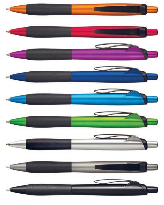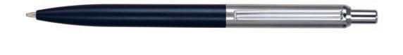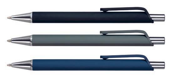 Trident | Trident er laget av aluminium og er tilgjengelig i tre dempede og sobre farger. Den fleksible klipsen er laget av ABS og har samme gummierte overflate og farge som pennens kropp. Graveringen på denne pennen vil være høyglanset krom. 230-011 grå (ca pms 446c), 230-009 blå (ca pms 533c), 230-001 sort.